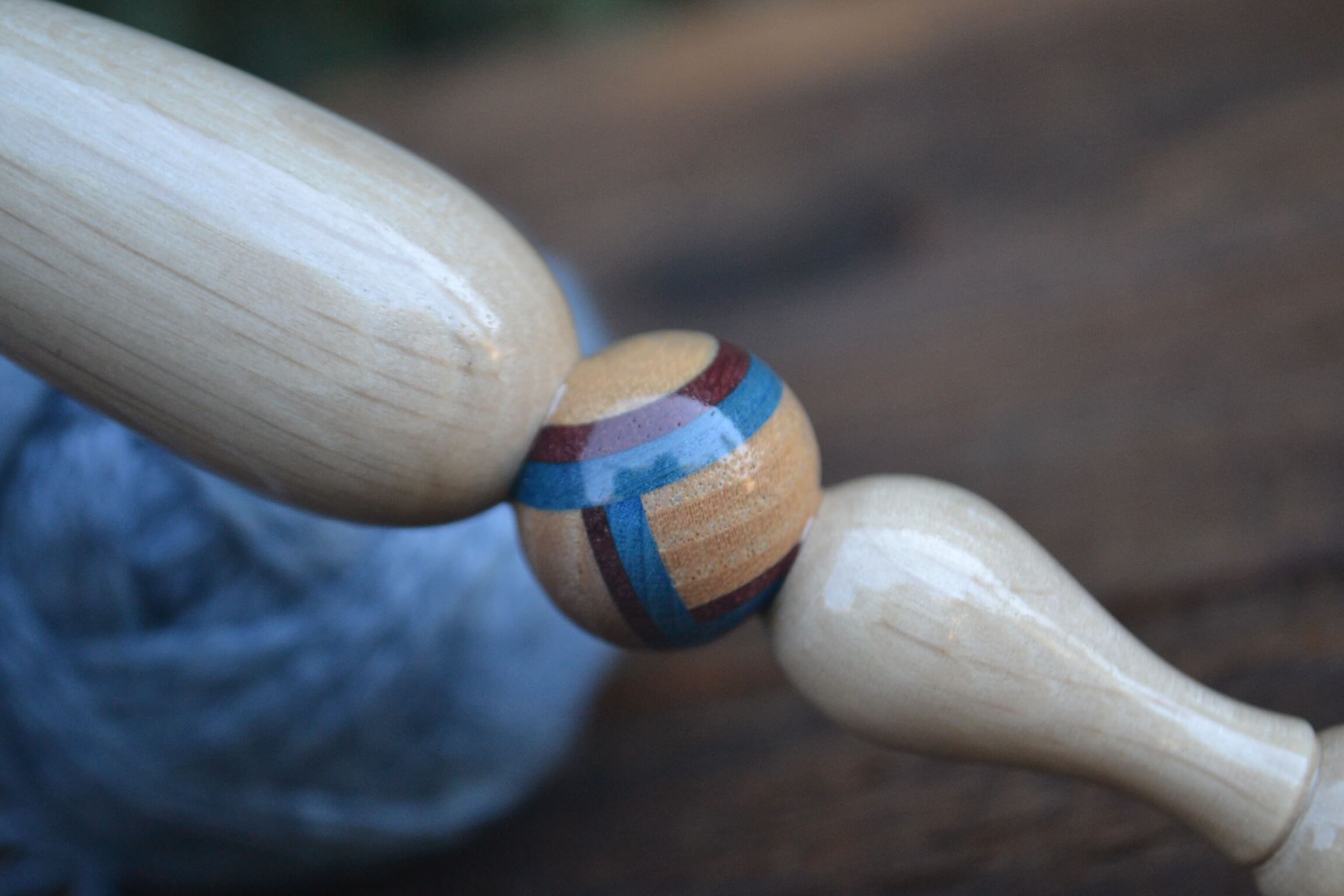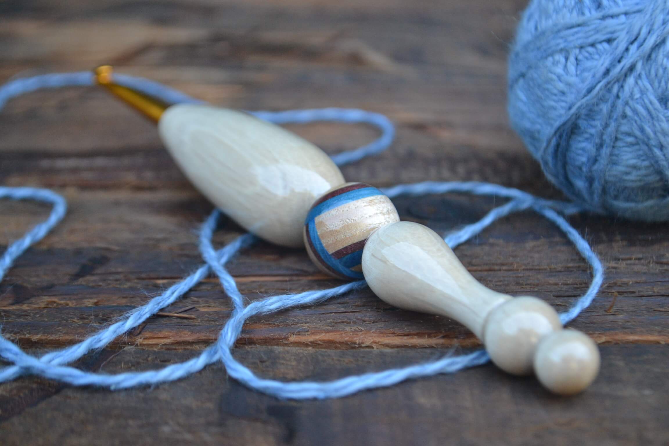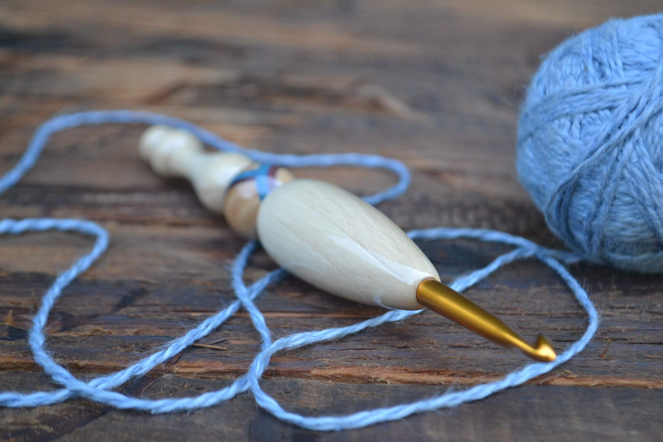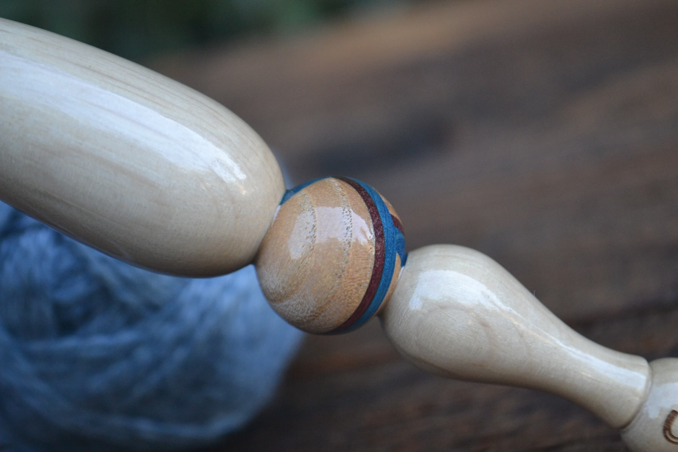 5 mm H Tulip Gold, Blue and White Hornbeam, Ash, Purpleheart wood mosaic Ergonomic Crochet Hook 23 mm 17 cm #1376-5066