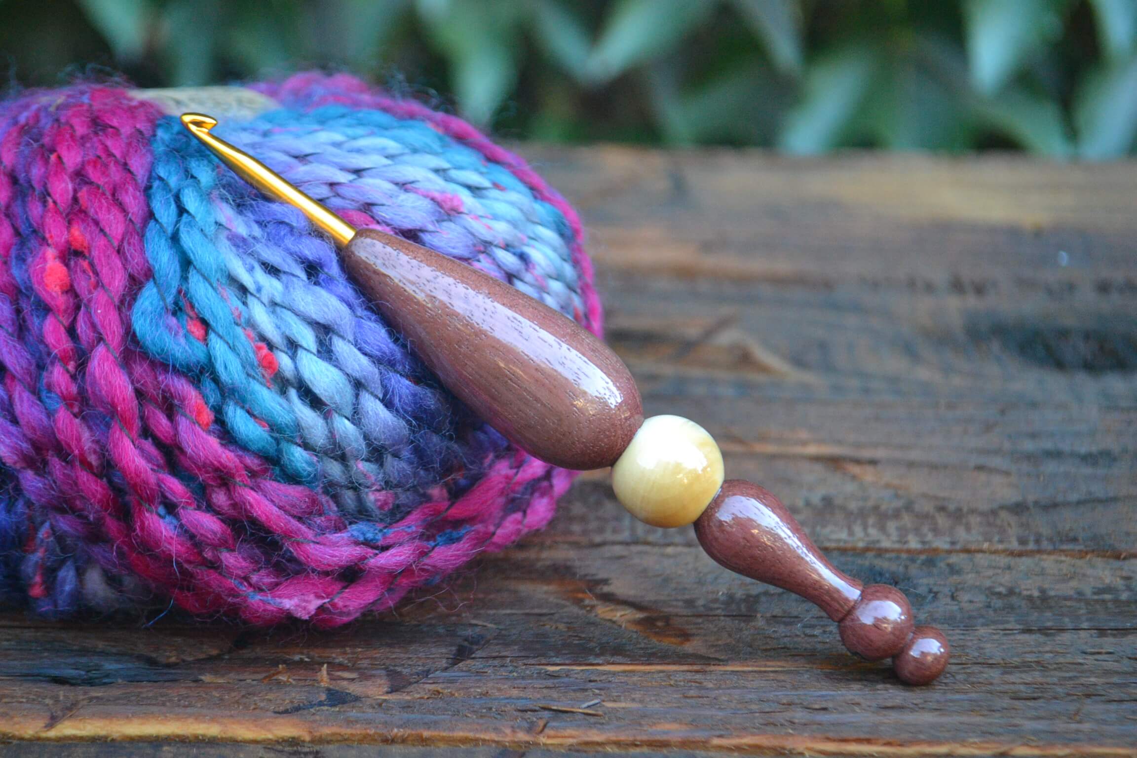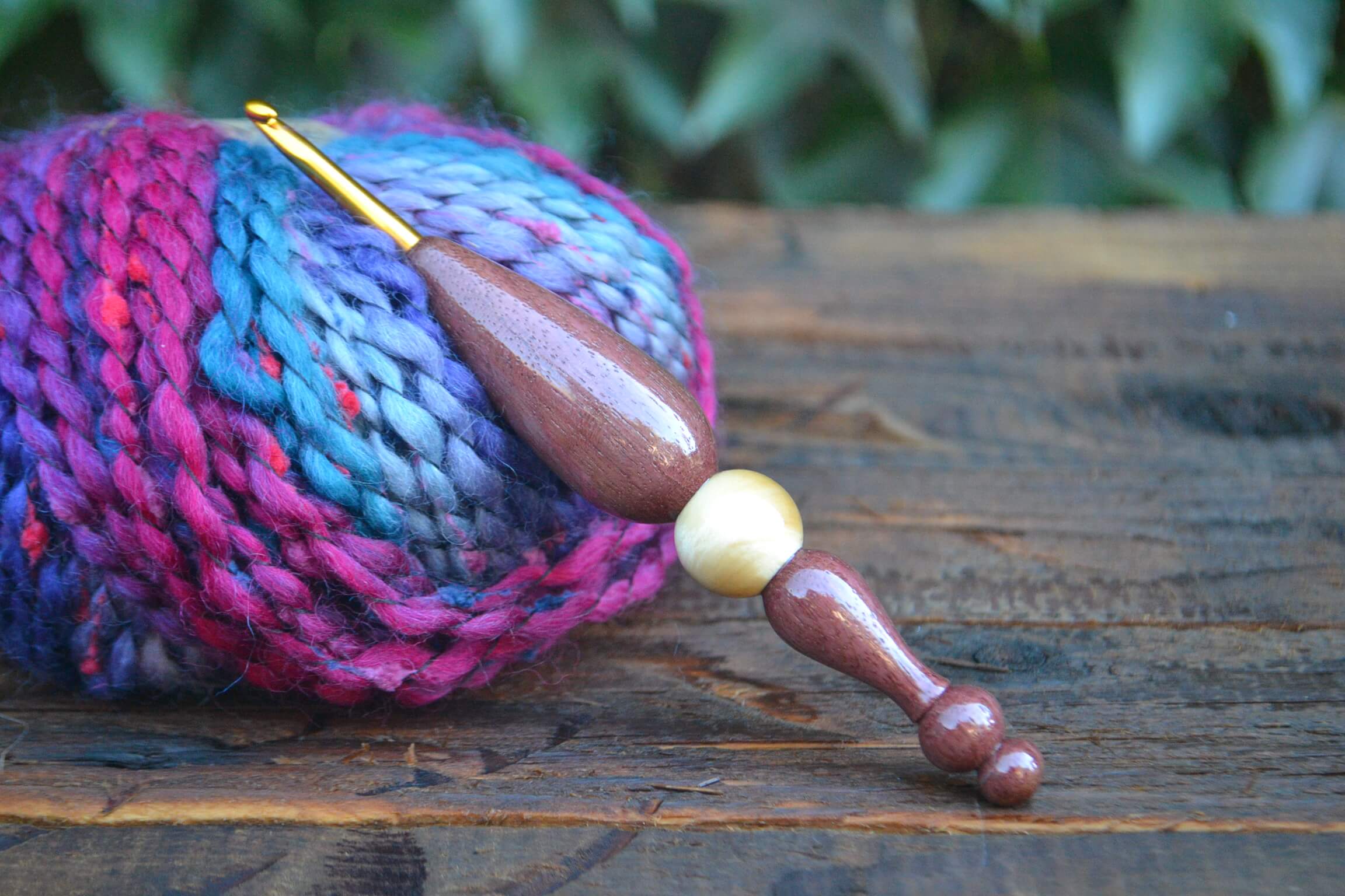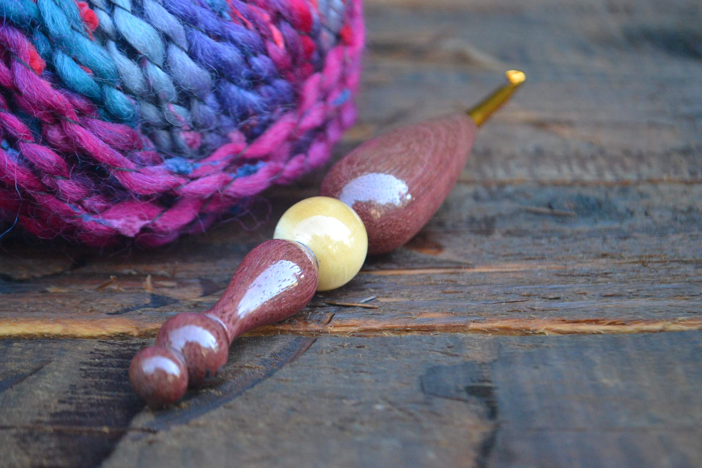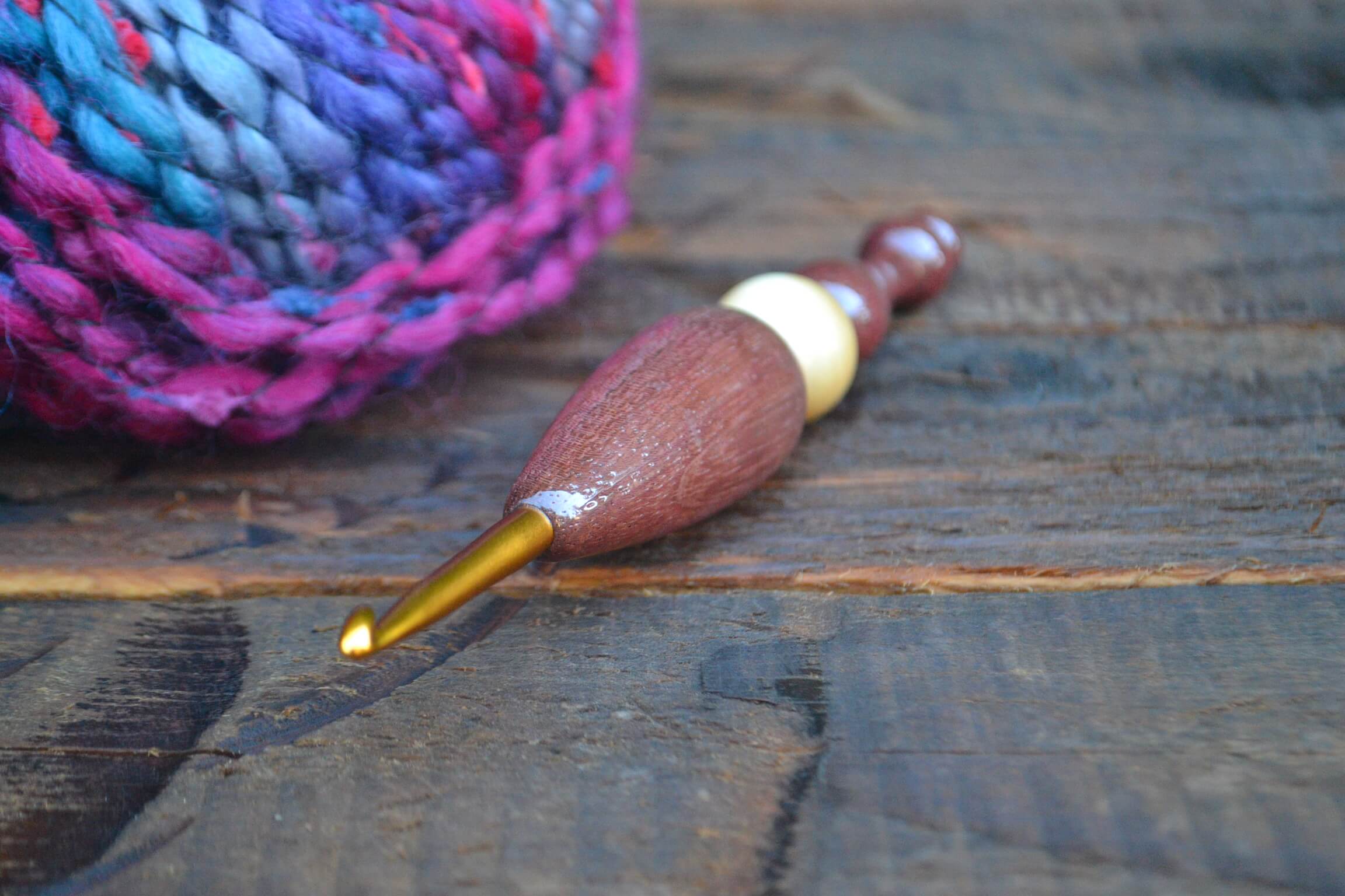 4.5 mm = size 7 Tulip Gold, Purpleheart and Stab. Burl wood  Ergonomic Crochet Hook 23 mm 16.5 cm #1381-5071