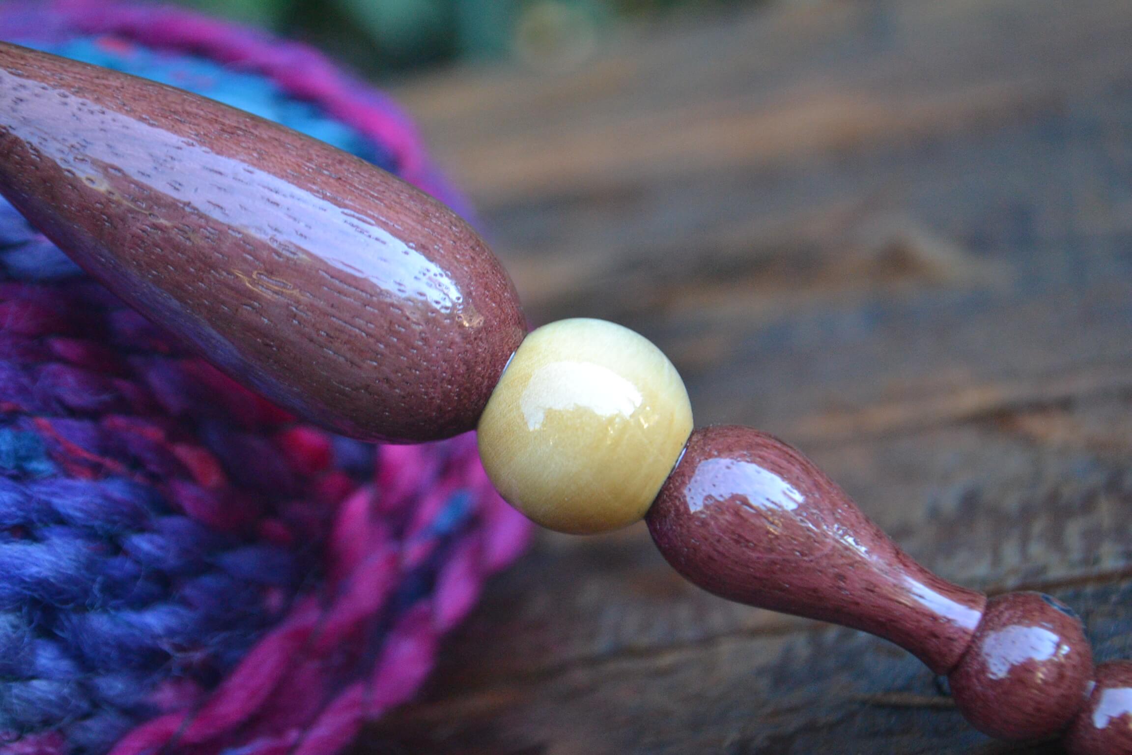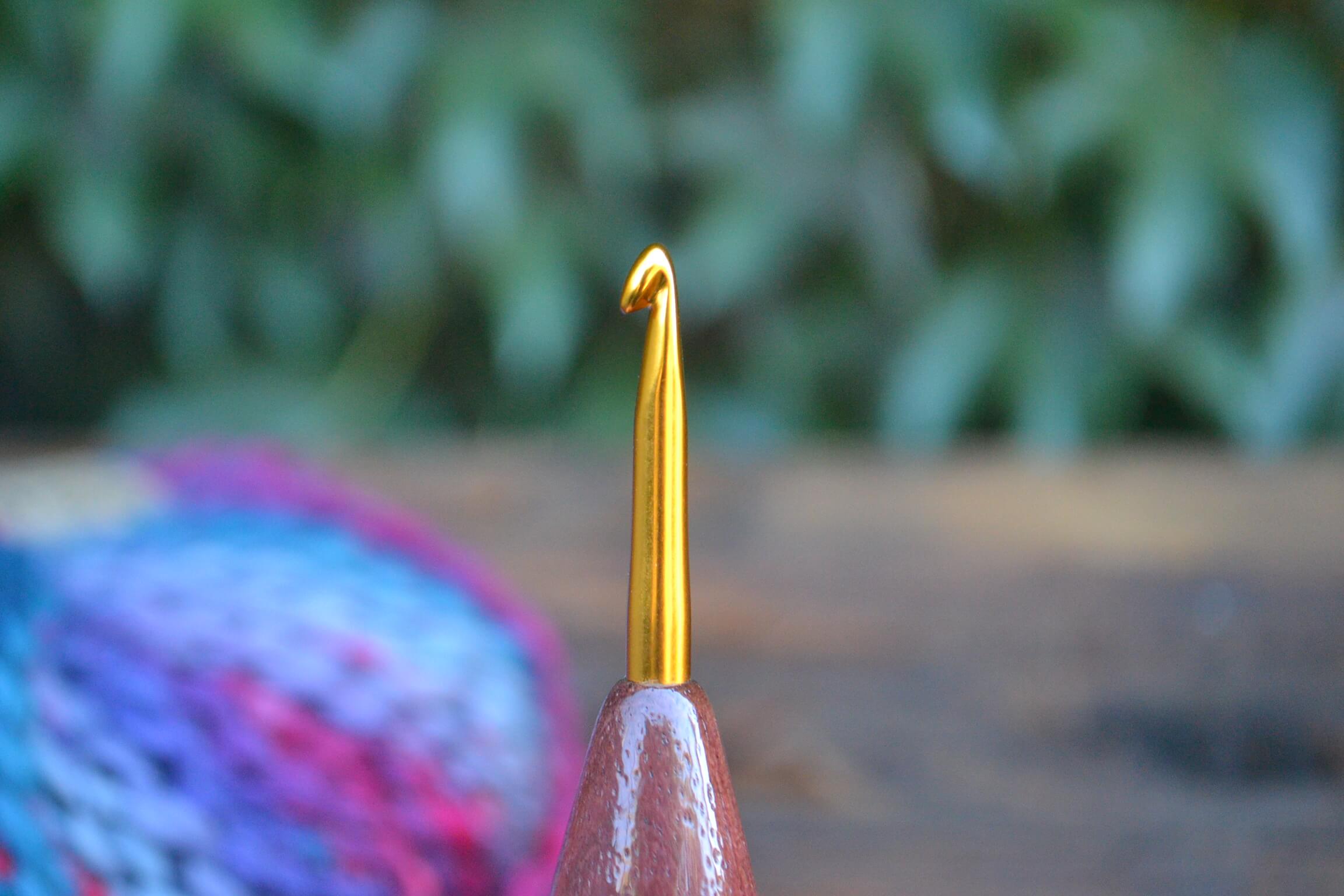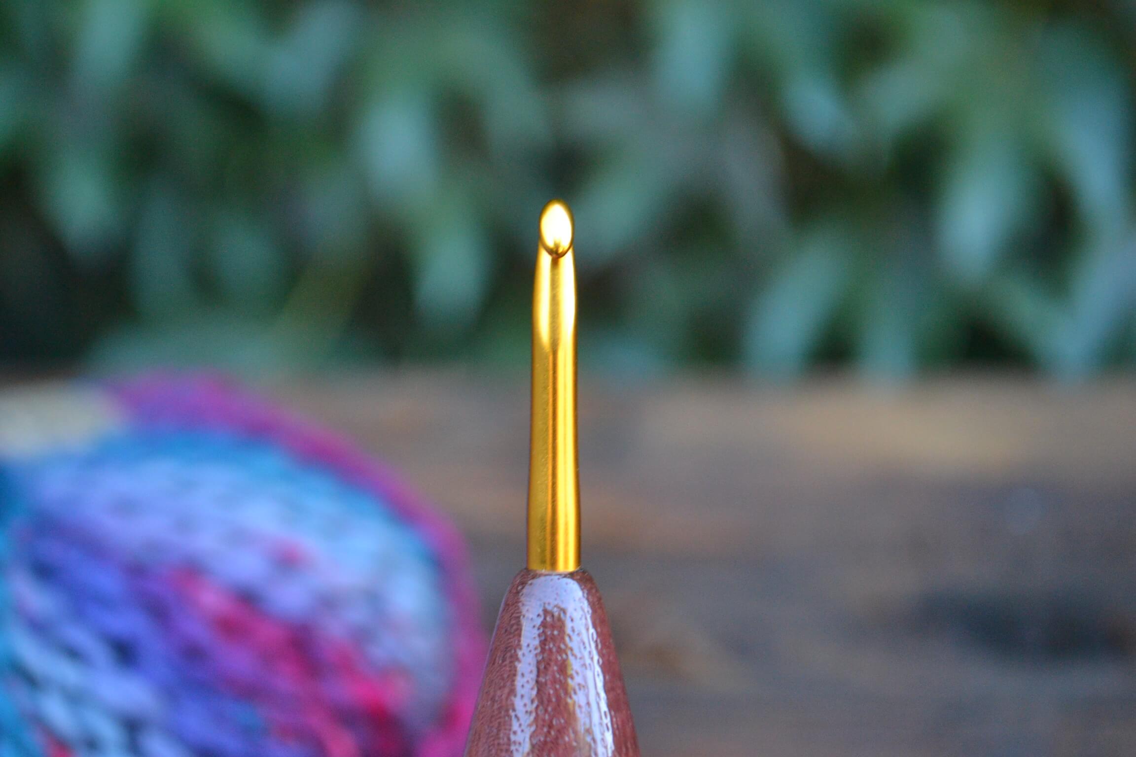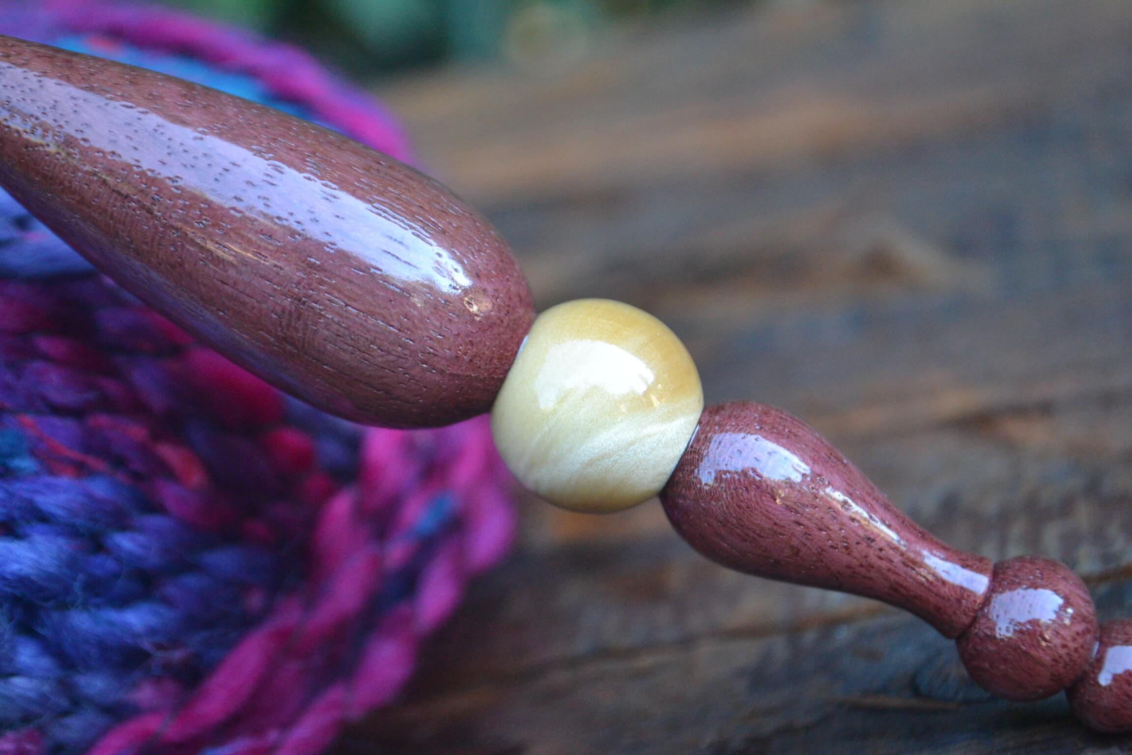 4.5 mm = size 7 Tulip Gold, Purpleheart and Stab. Burl wood  Ergonomic Crochet Hook 23 mm 16.5 cm #1381-5071