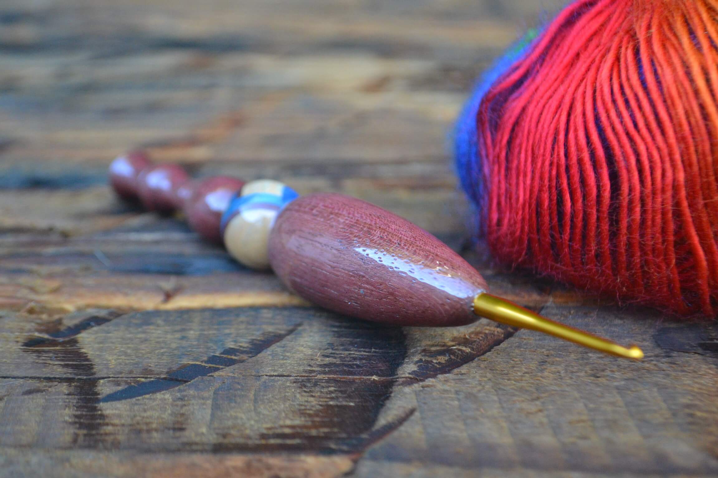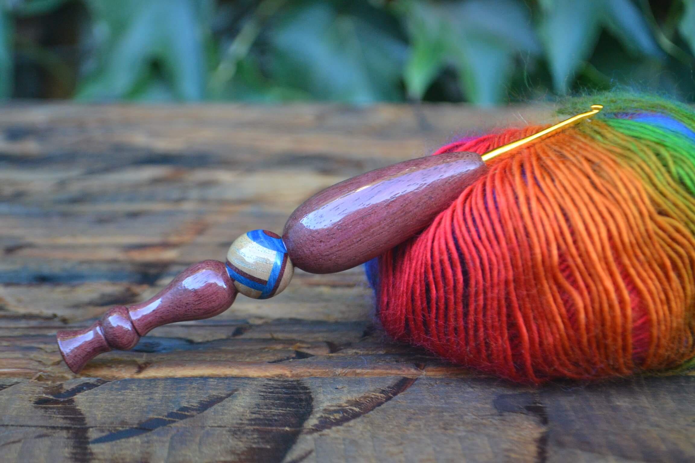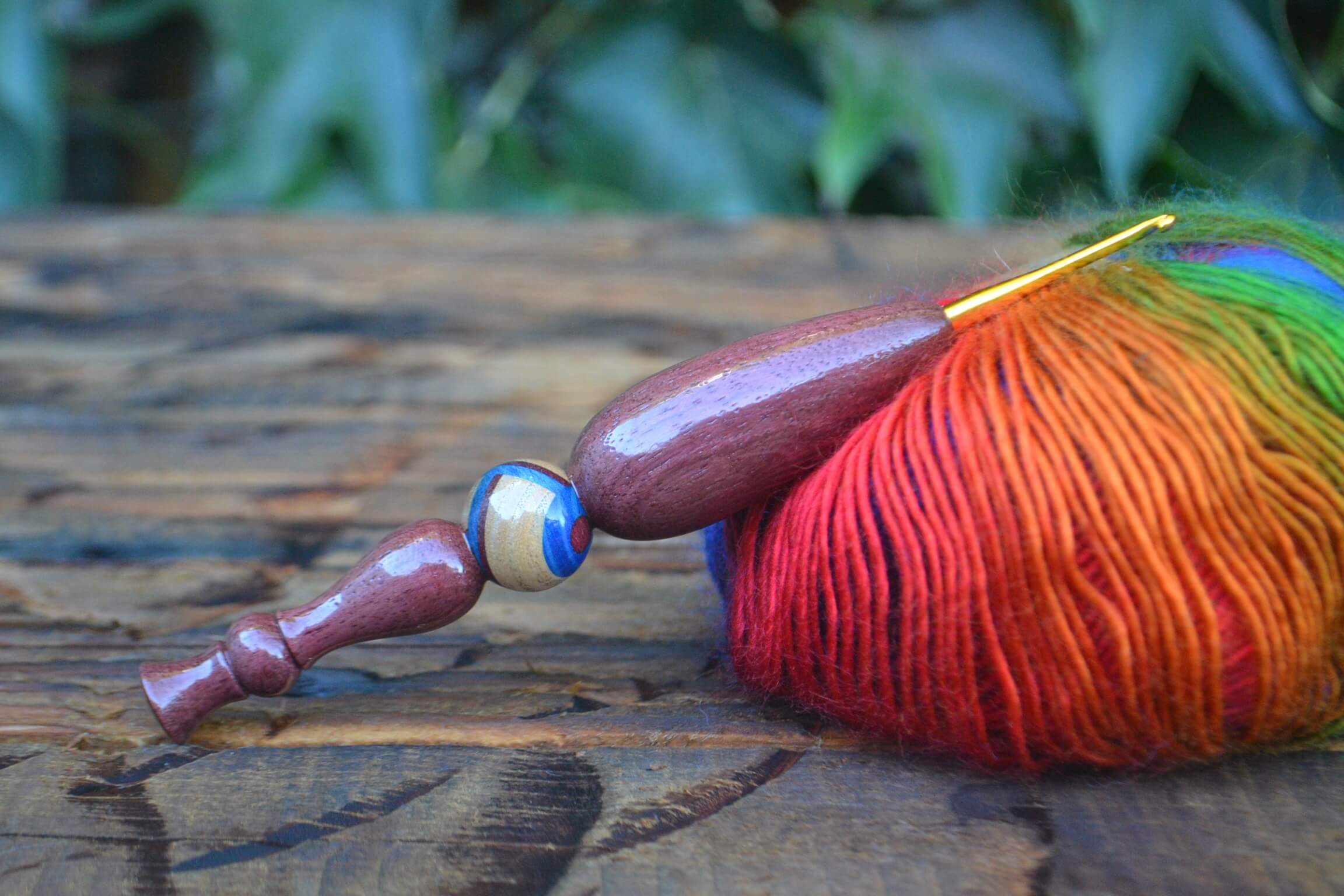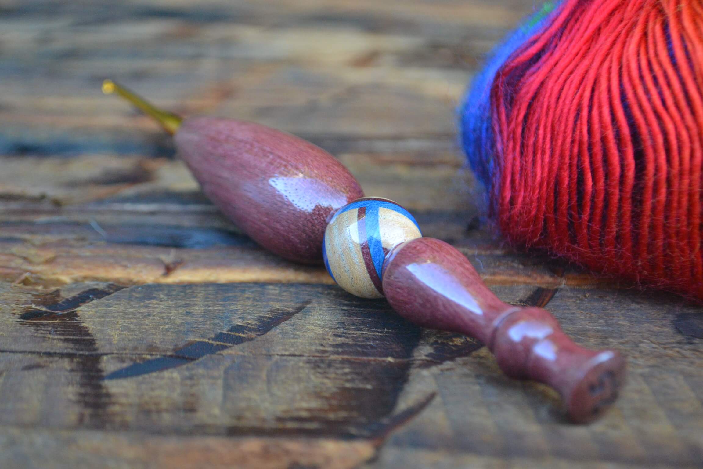 2.5 mm Tulip Gold, Purpleheart, Blue and White Hornbeam, Ash wood mosaic Ergonomic Crochet Hook 23 mm 17 cm #1384-5074