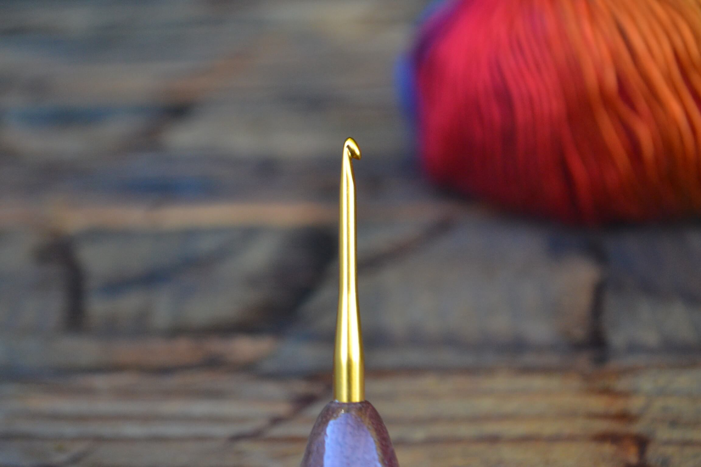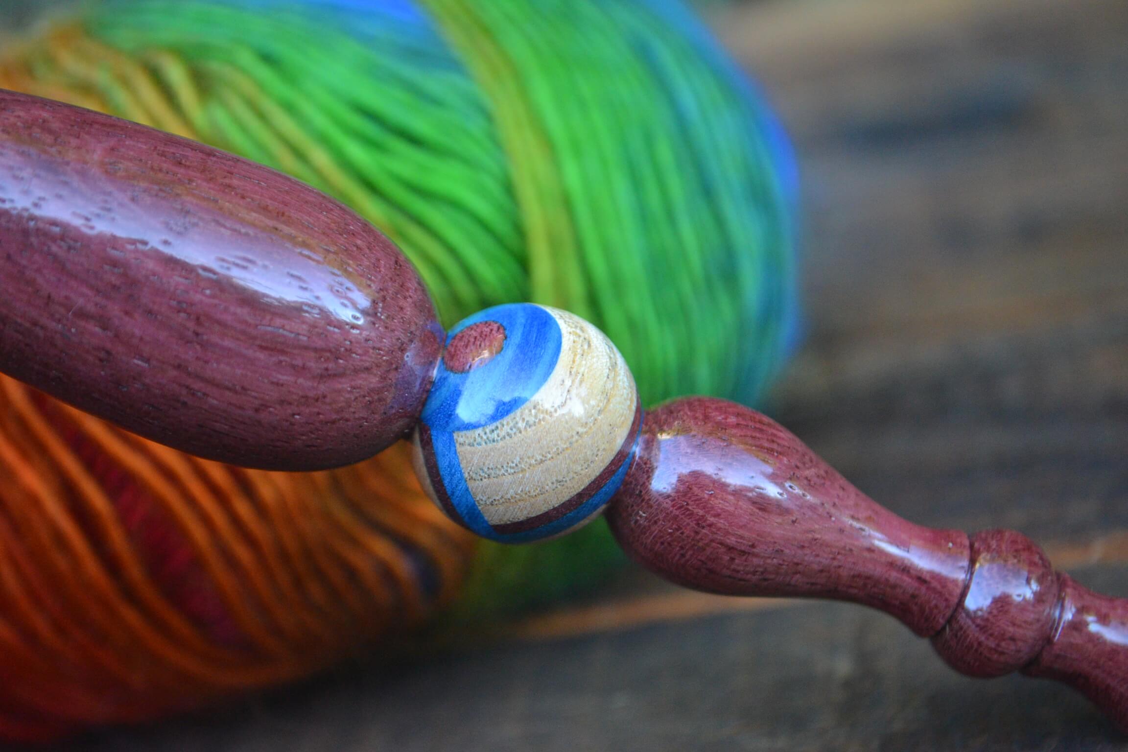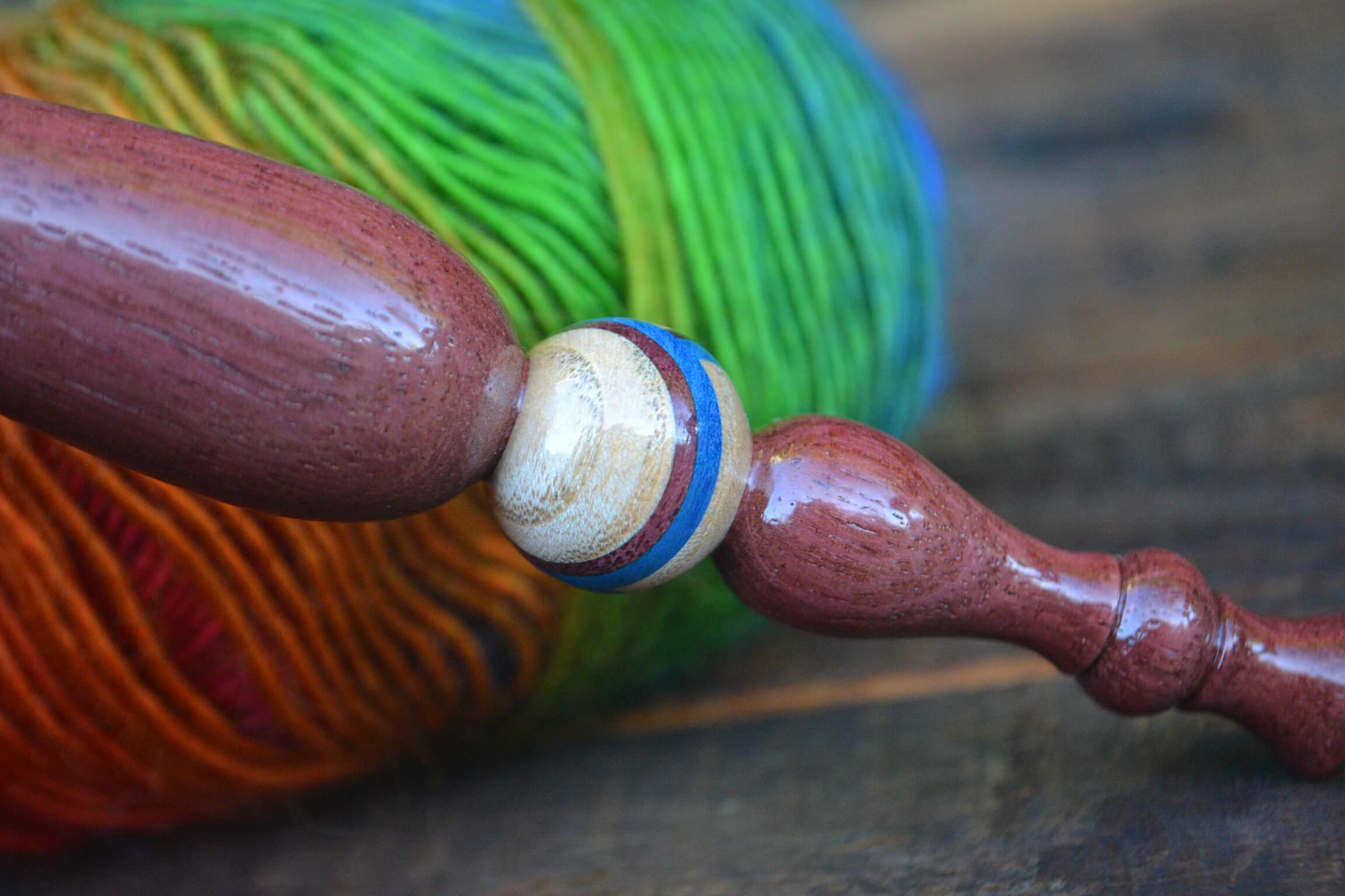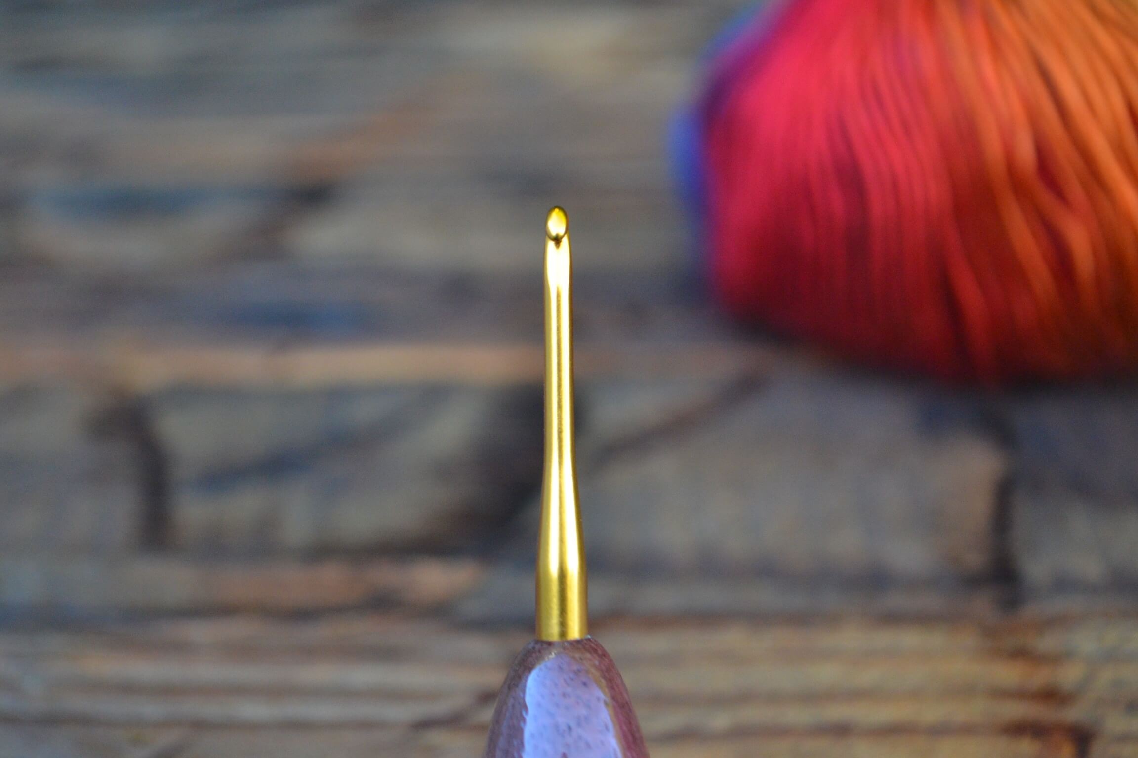 2.5 mm Tulip Gold, Purpleheart, Blue and White Hornbeam, Ash wood mosaic Ergonomic Crochet Hook 23 mm 17 cm #1384-5074