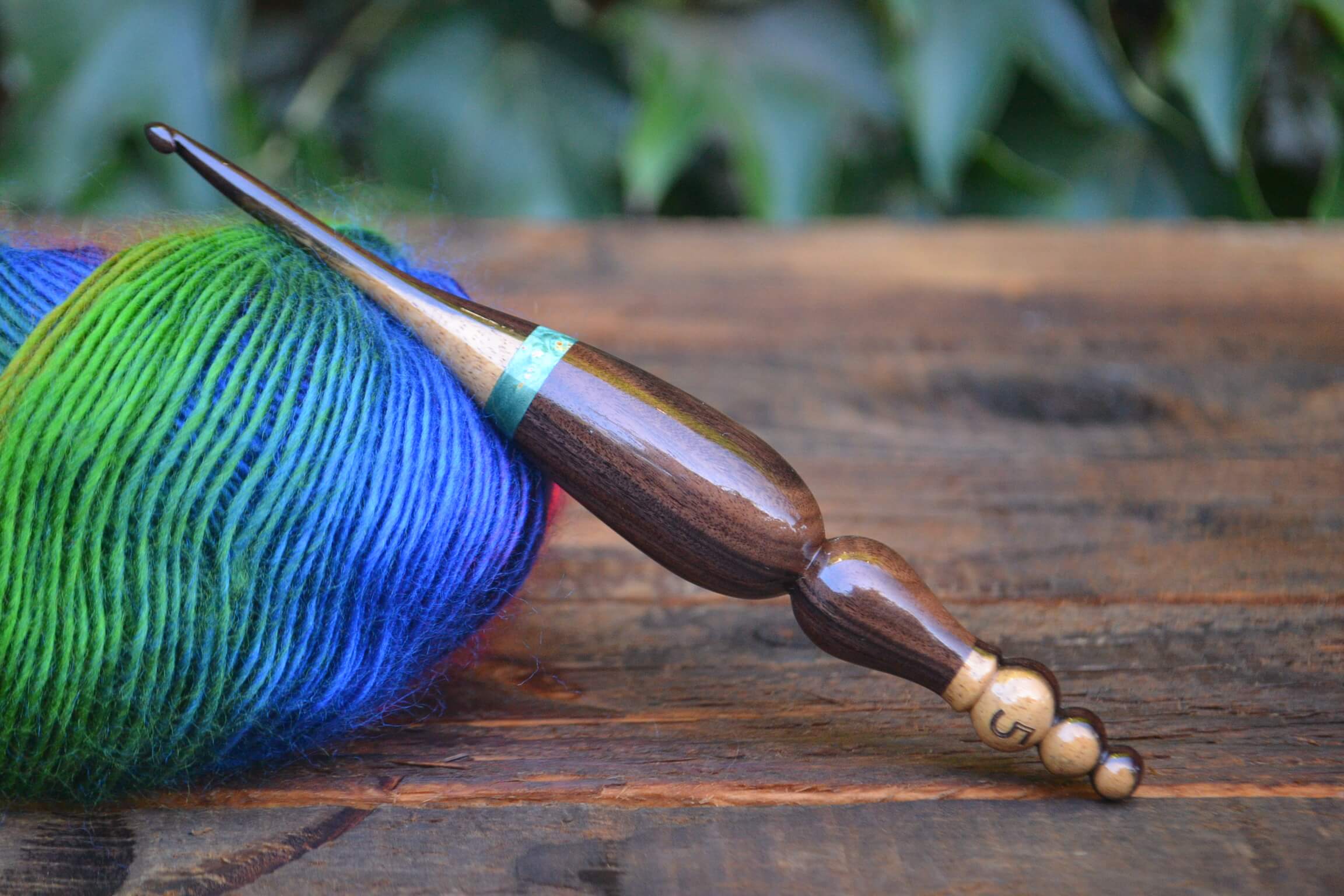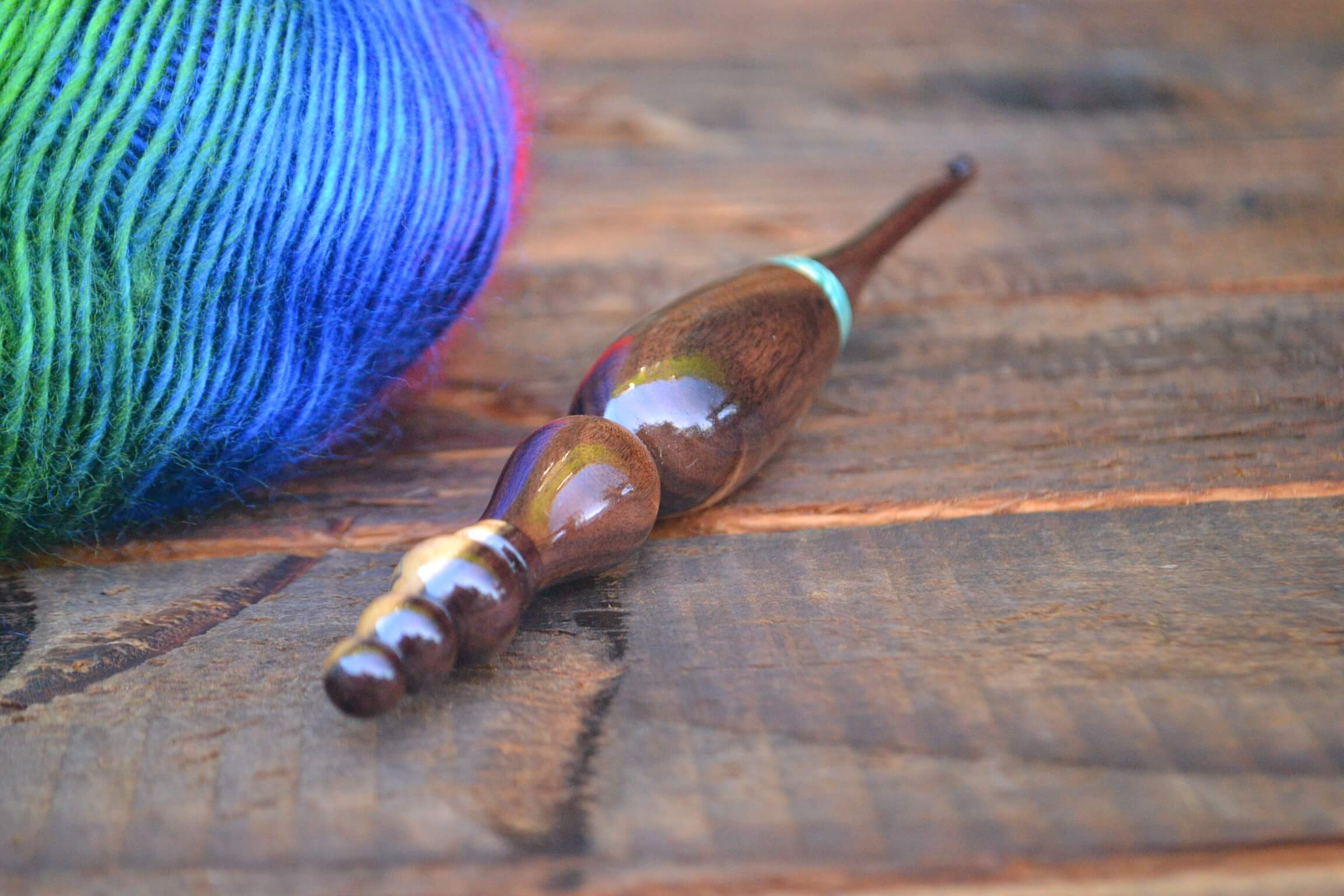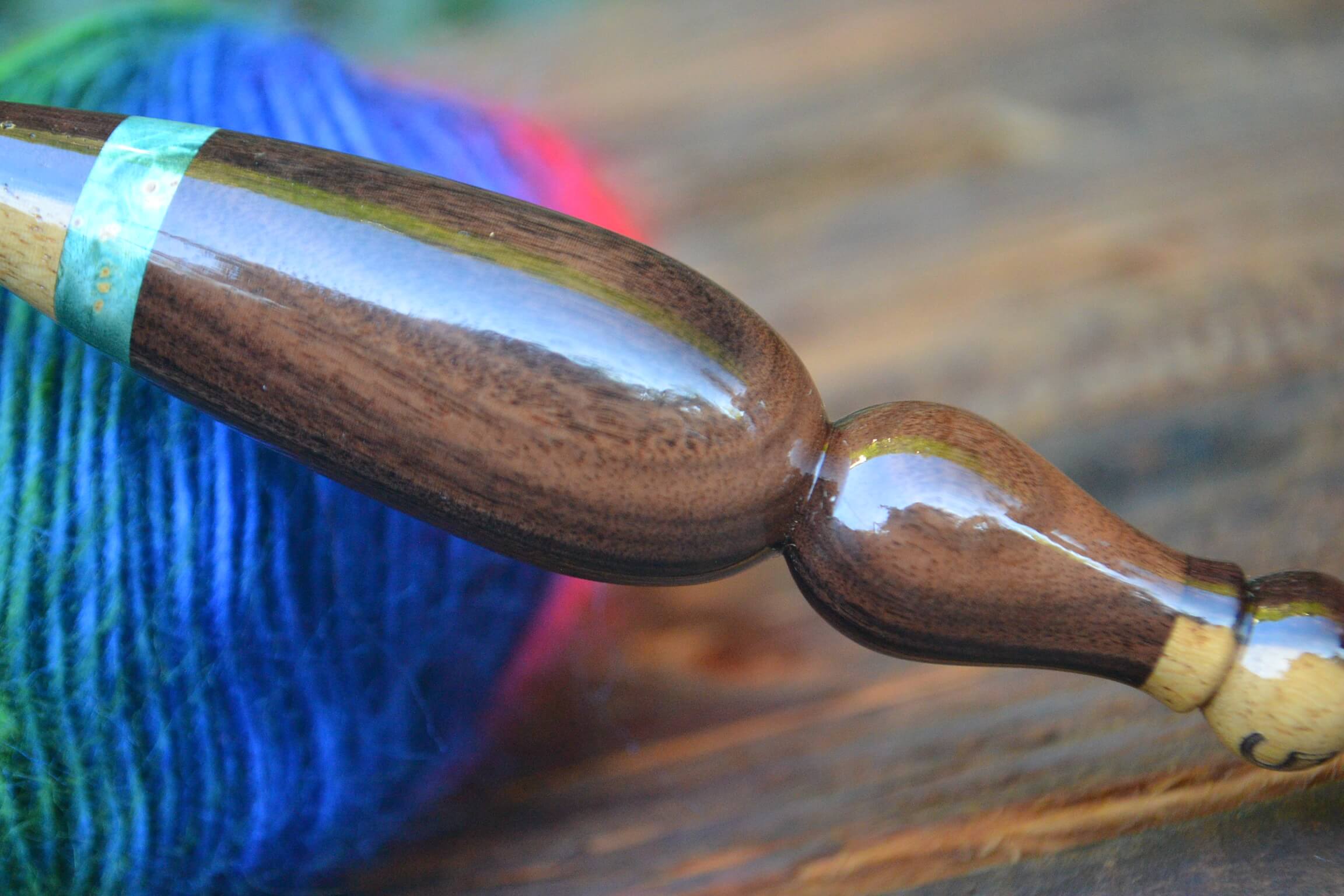 4.5 mm = size 7 Purpleheart/ Box Elder Stabilized Curly/ Burl wood, Mulberry Curly and Burl wood Ergonomic Crochet Hook 24 mm 16,5 cm #839-4529