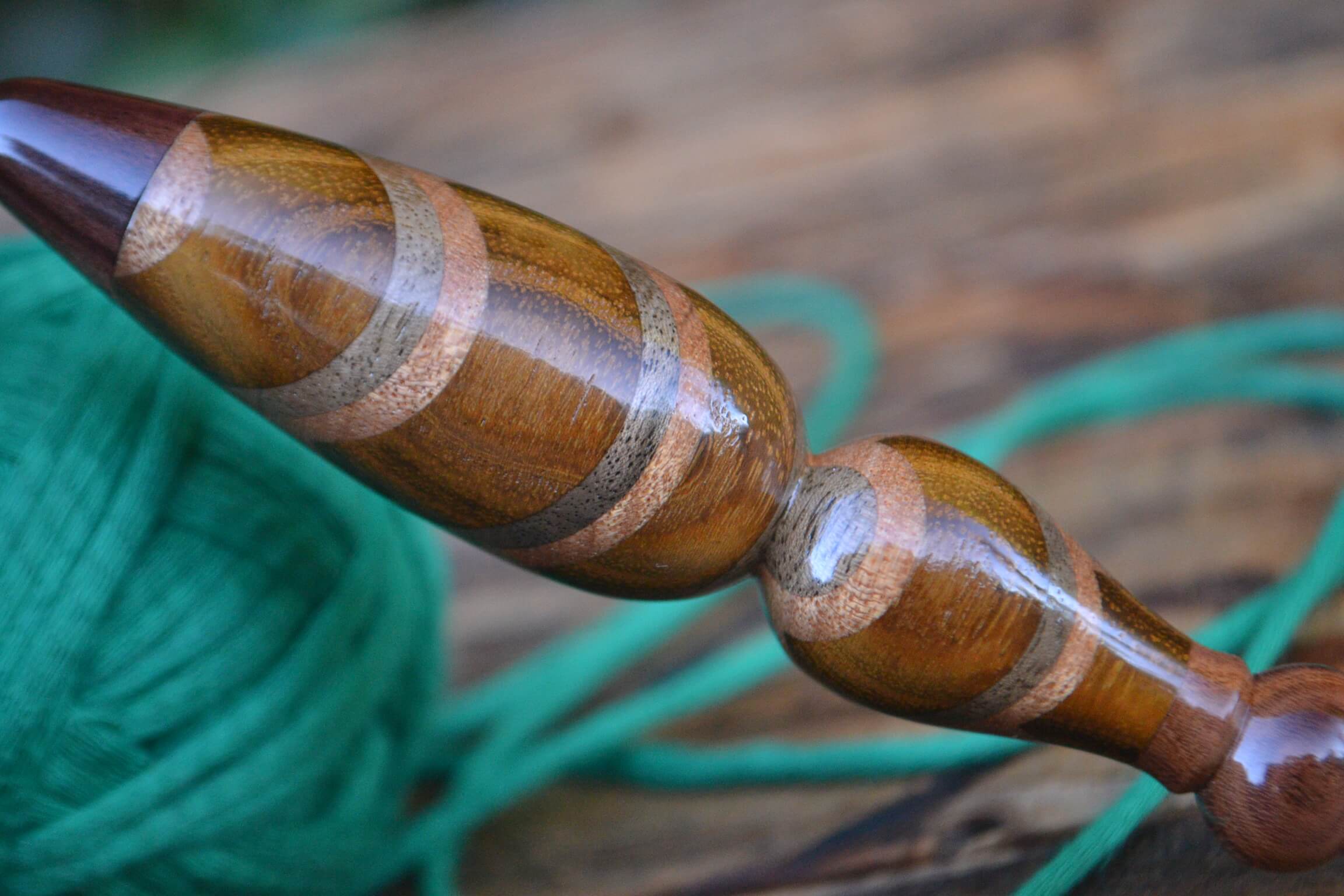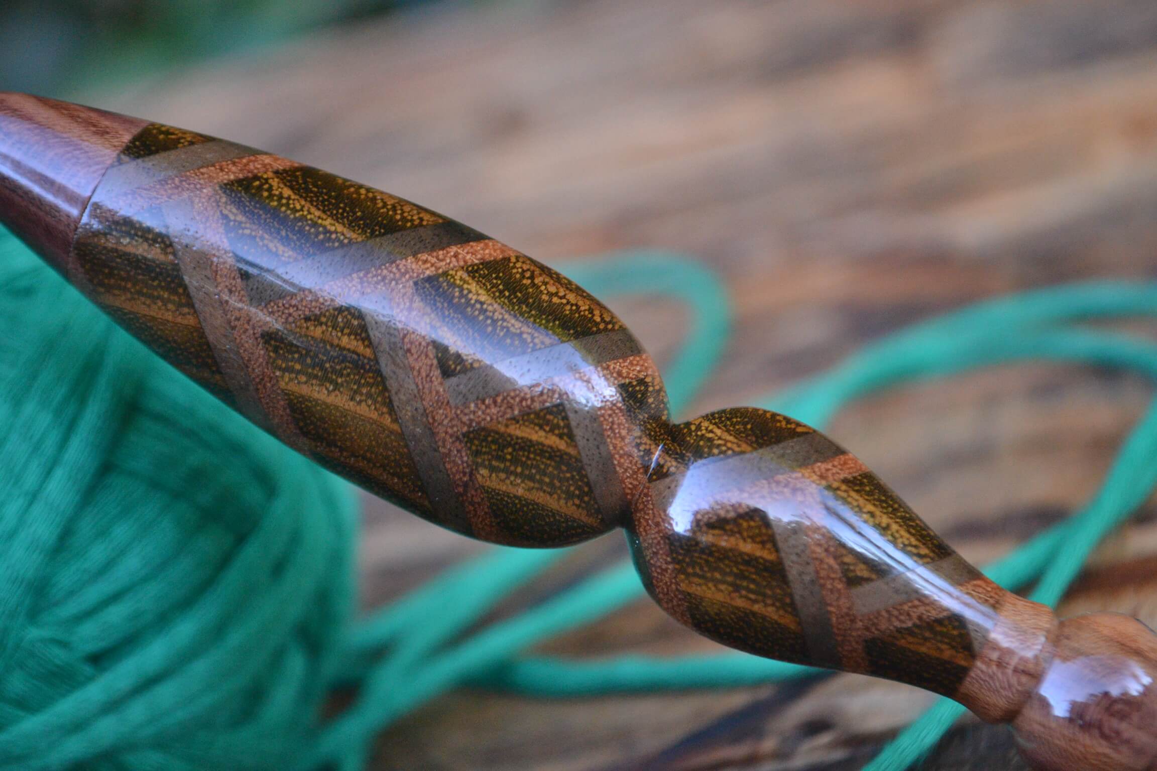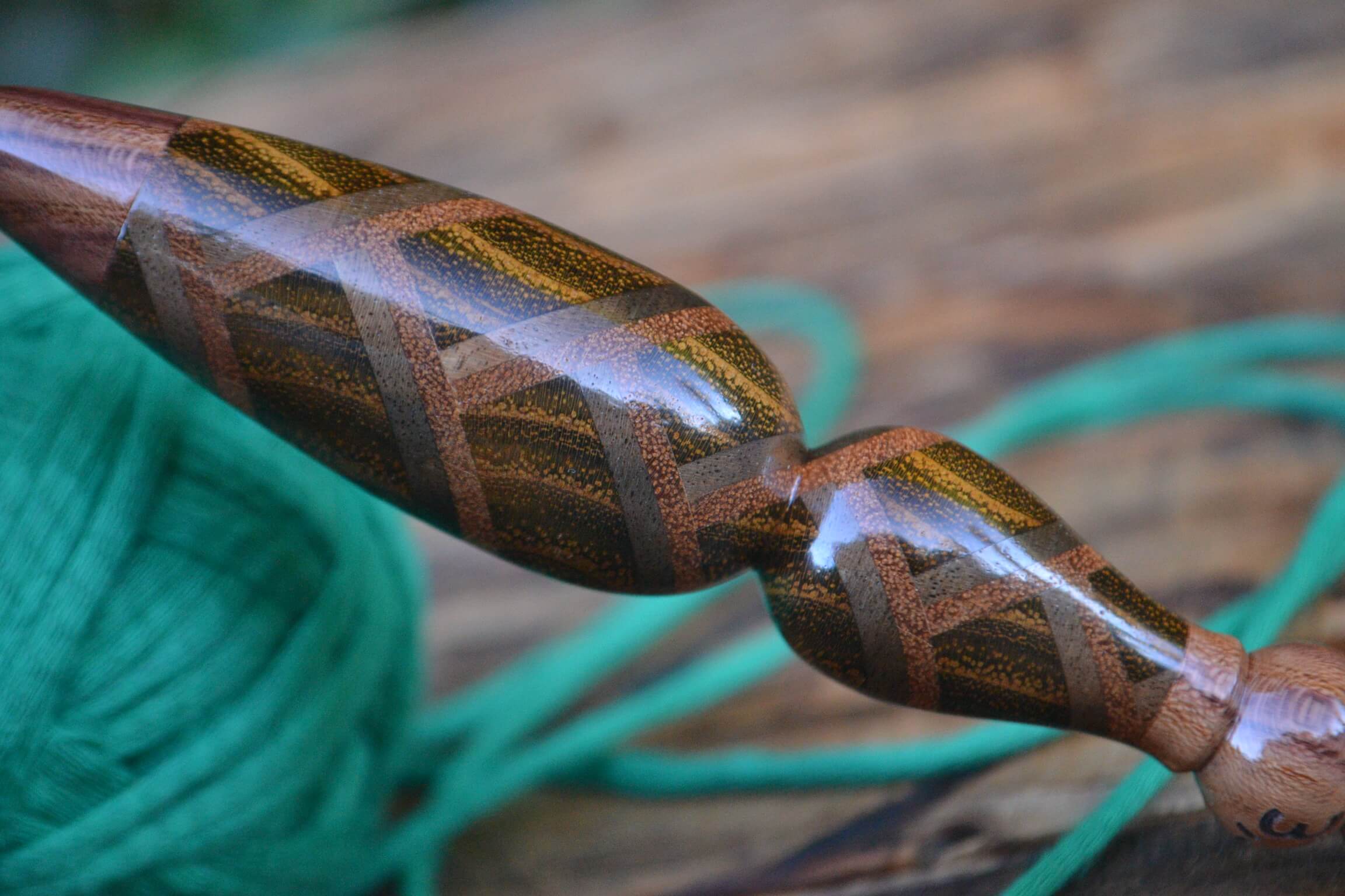 7.5 mm Black Hornbeam, Mosaic Robinia/Apricot/Hornbeam wood Ergonomic Crochet Hook 24 mm 17 cm # 1042-4732