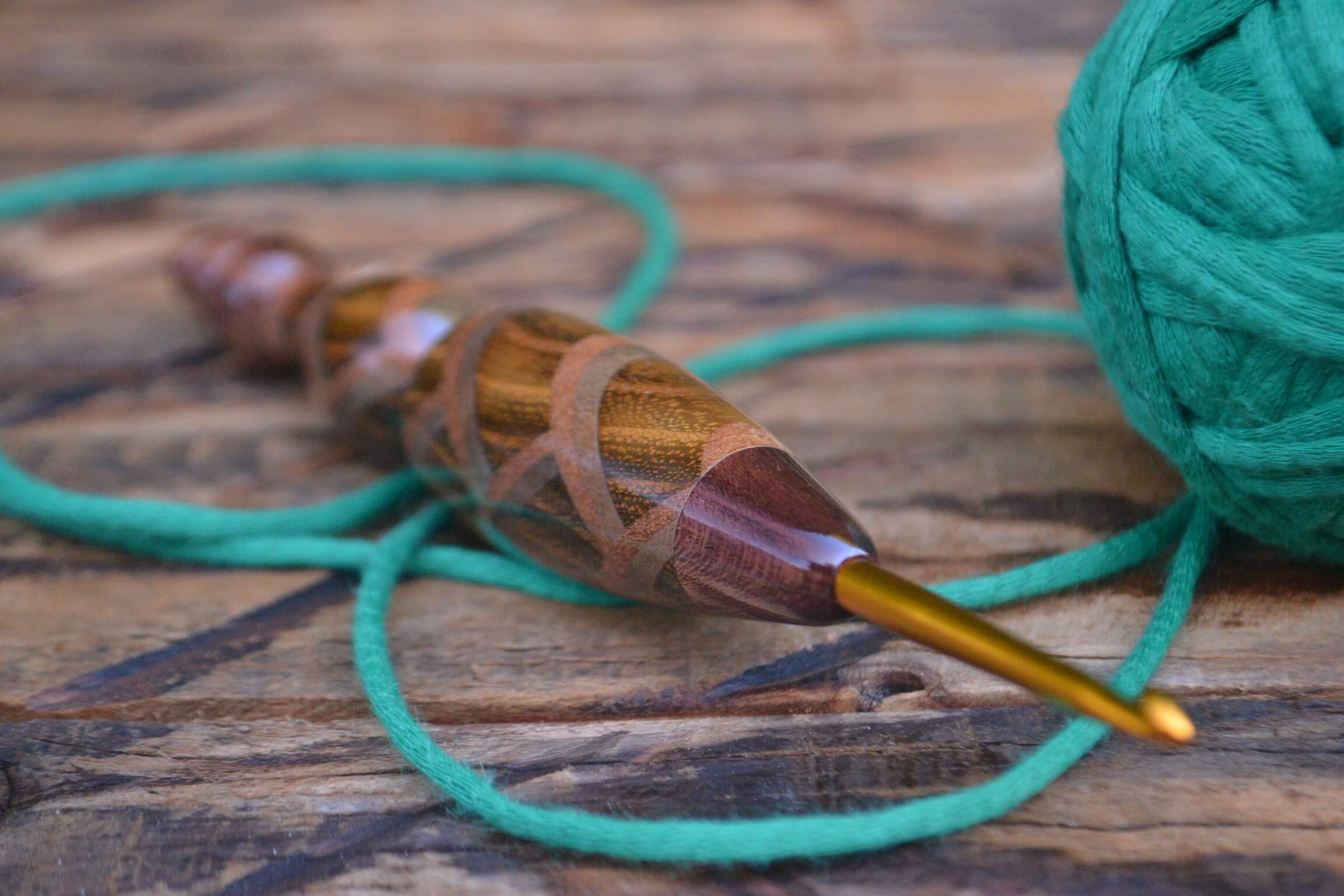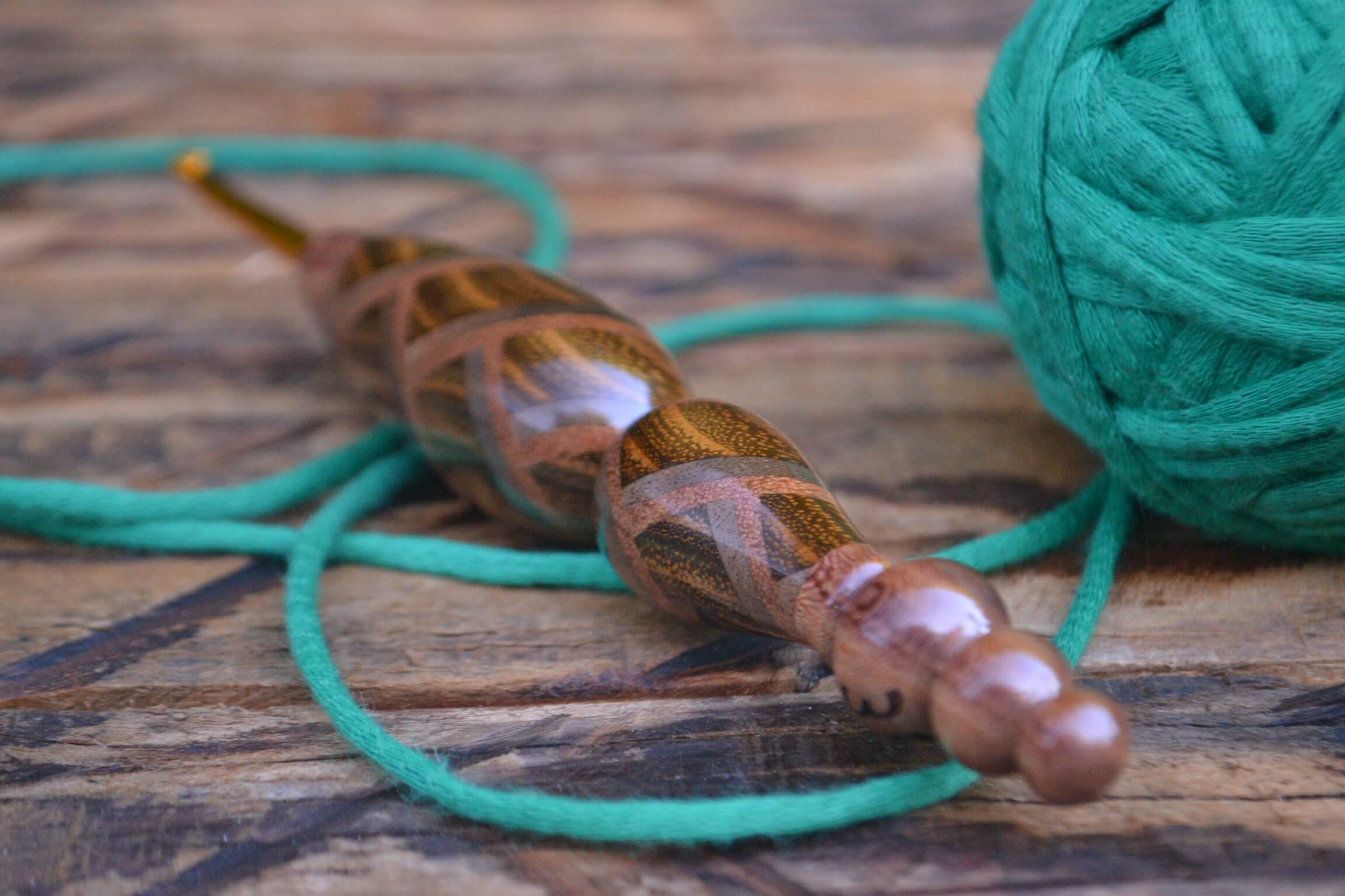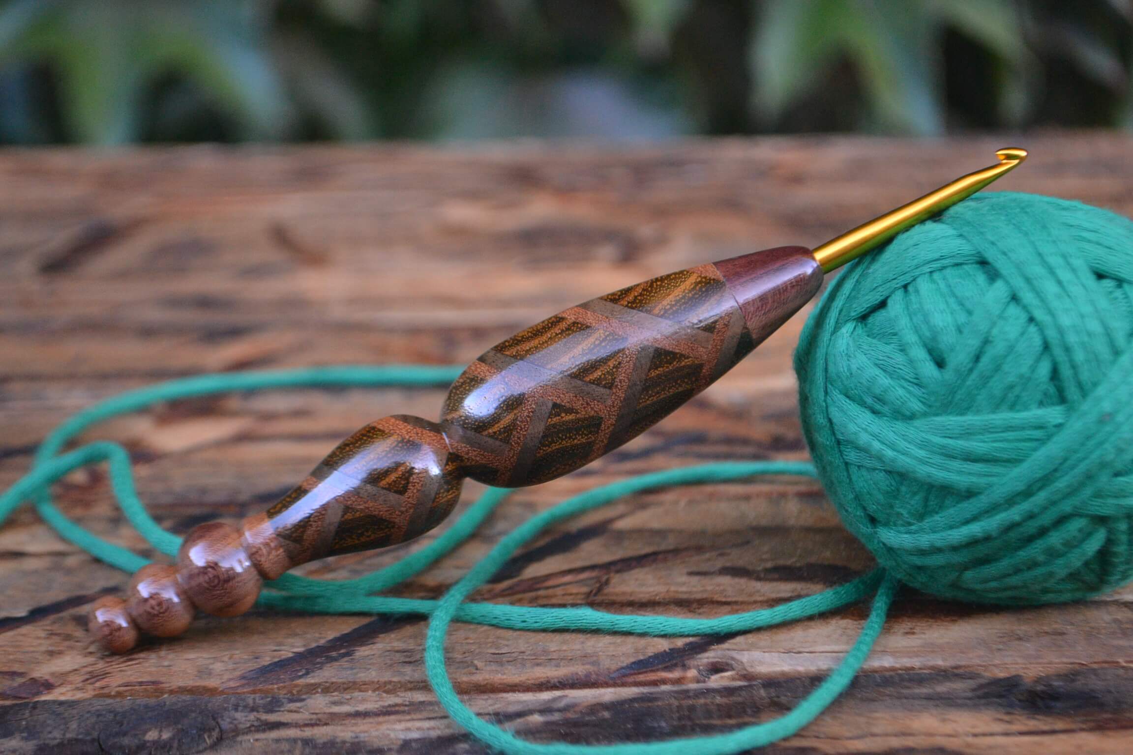 7.5 mm Black Hornbeam, Mosaic Robinia/Apricot/Hornbeam wood Ergonomic Crochet Hook 24 mm 17 cm # 1042-4732
