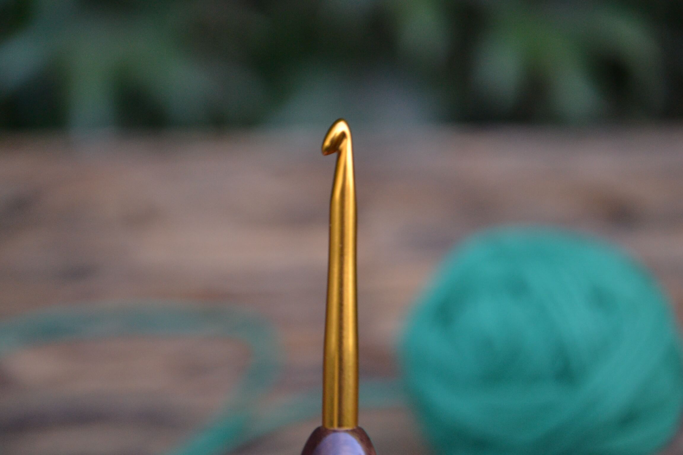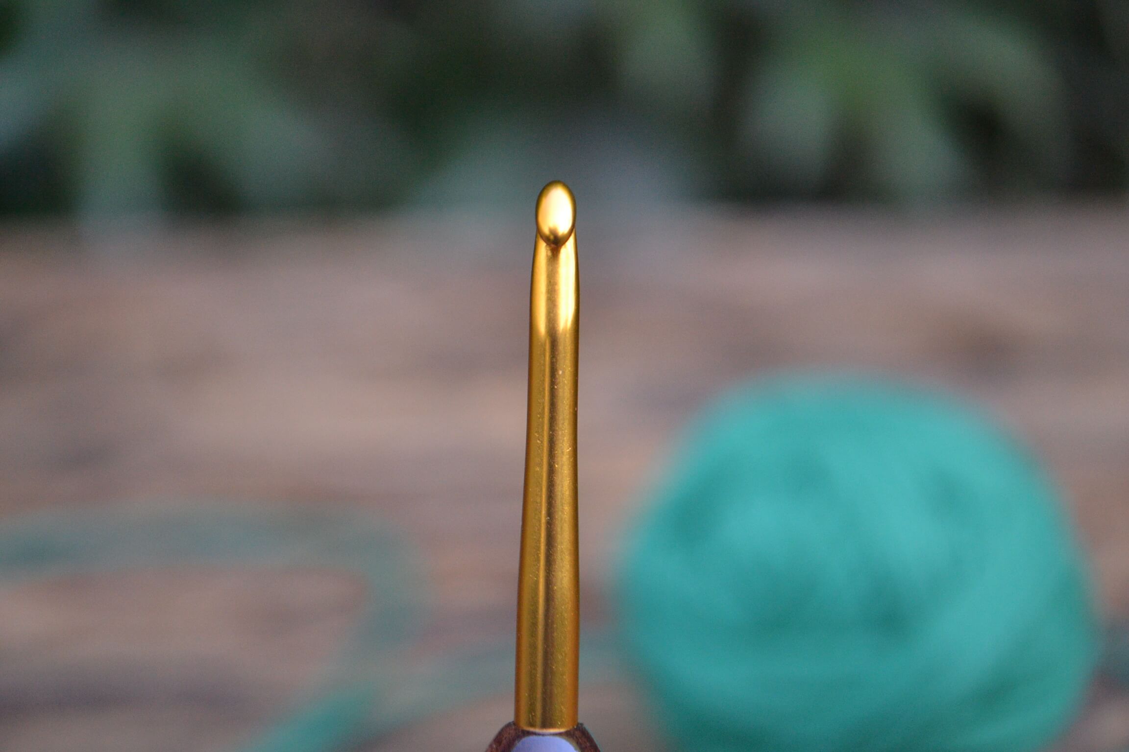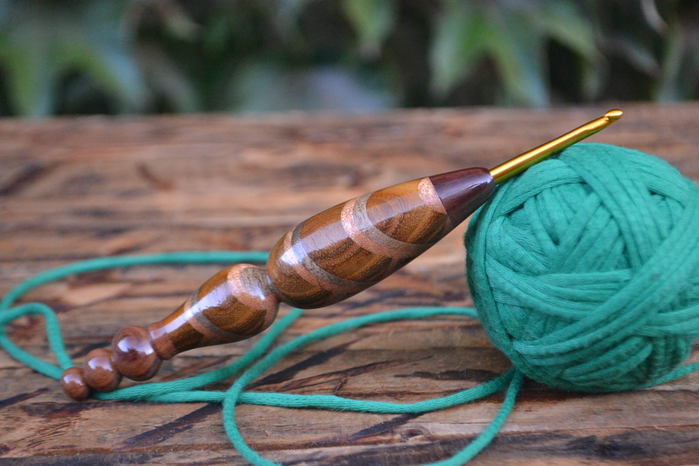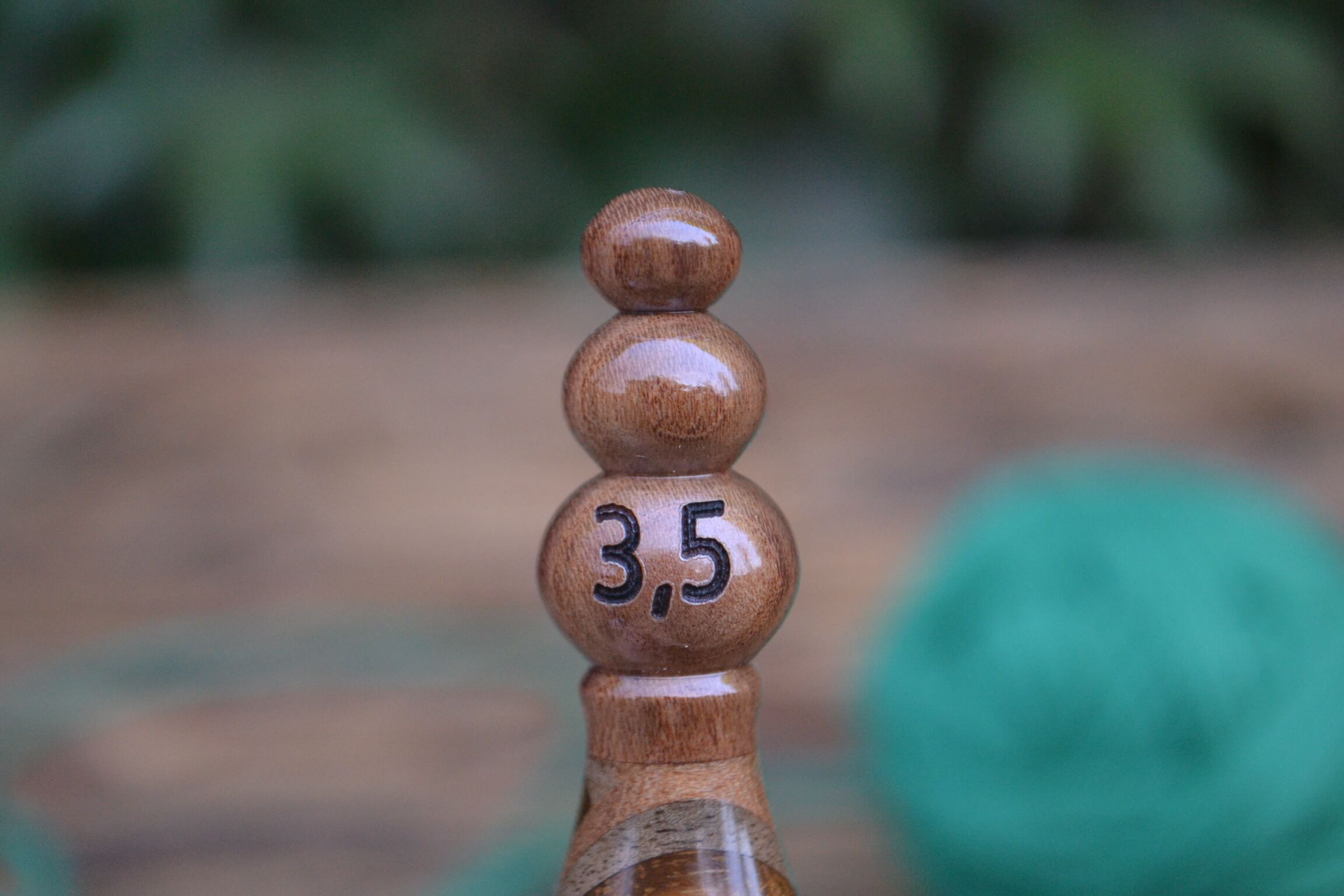 3.5 mm E Tulip Gold, Dark Apricot, Robinia, Walnut, Merbau wood mosaic Ergonomic Crochet Hook 23 mm 16.5 cm #1386-5076
