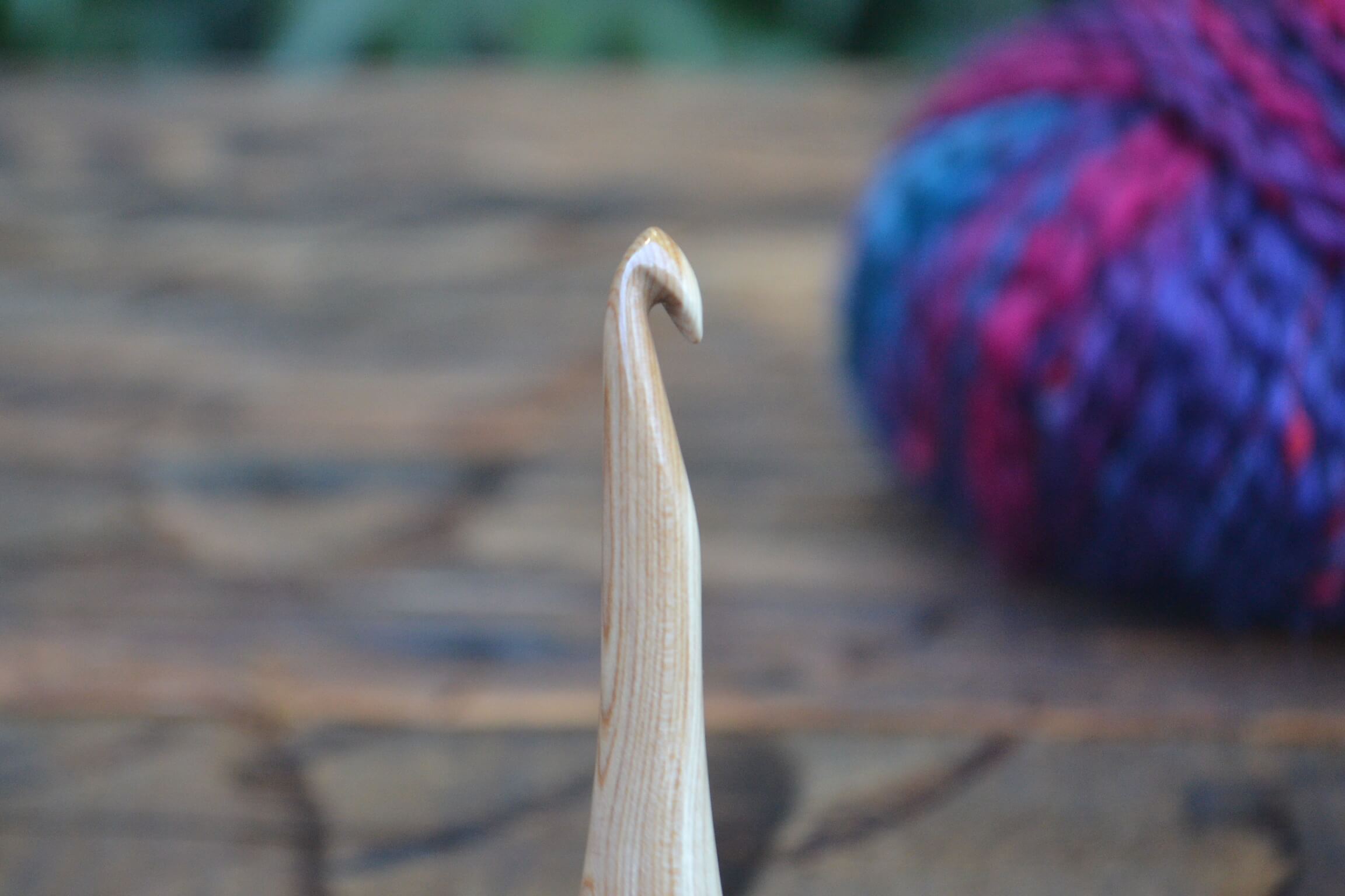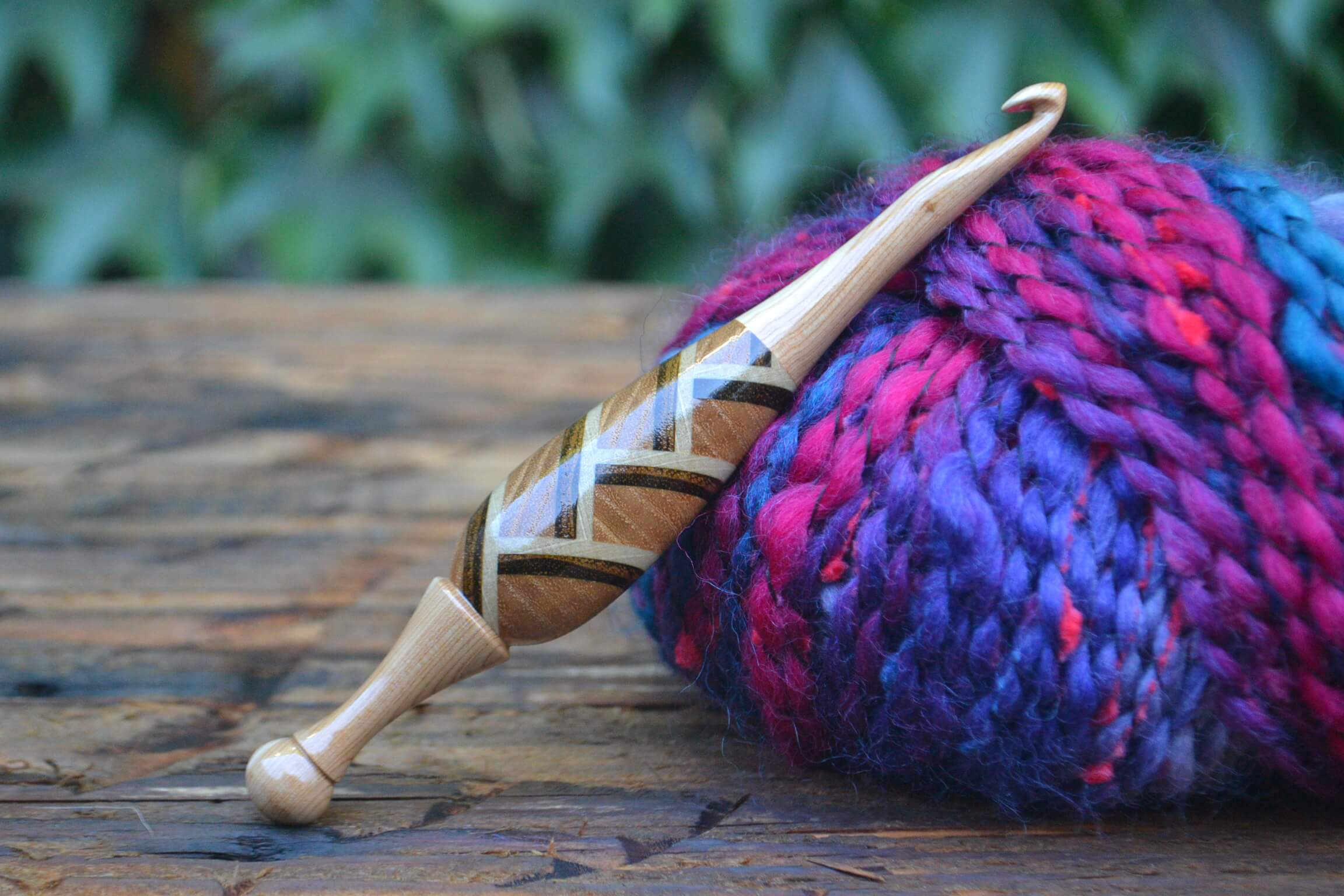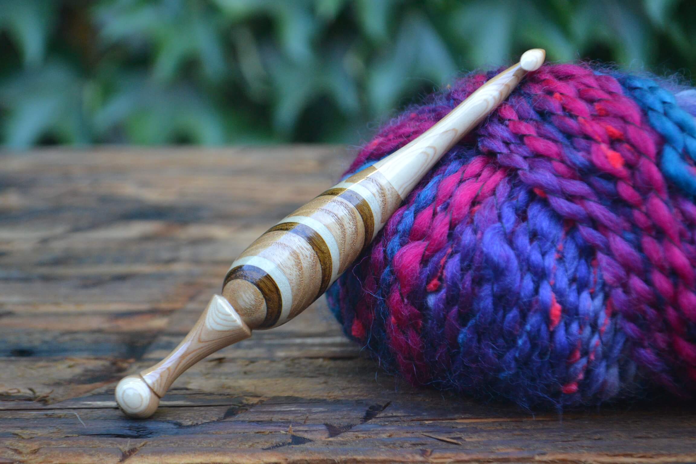 0,6 mm Clover steel, Purpleheart and Robinia/Apple/Hornbeam wood mosaic Ergonomic Crochet Hook 24 mm 16 cm #1128-4818