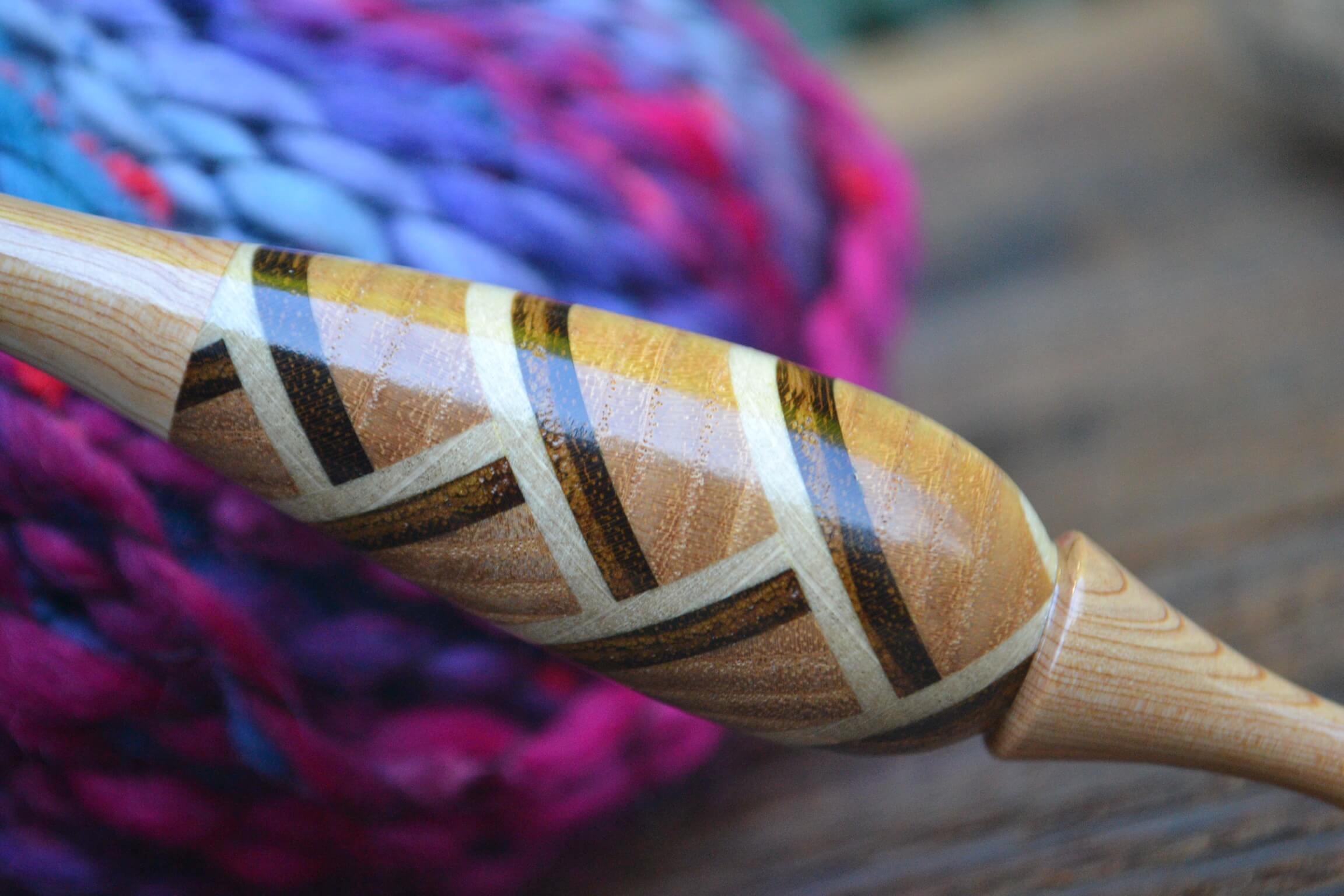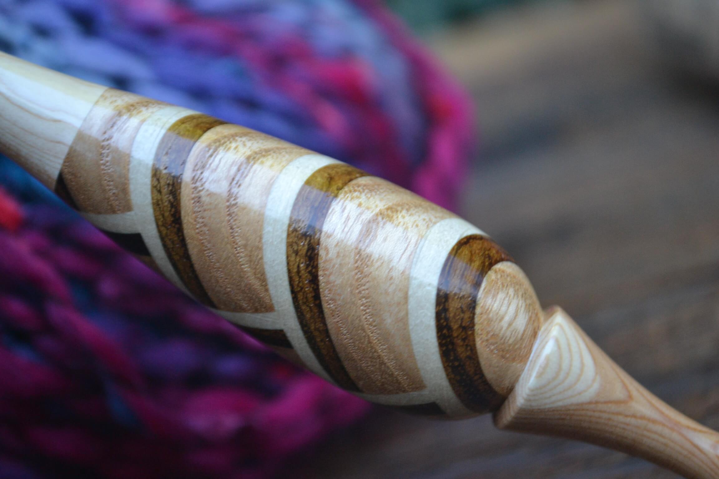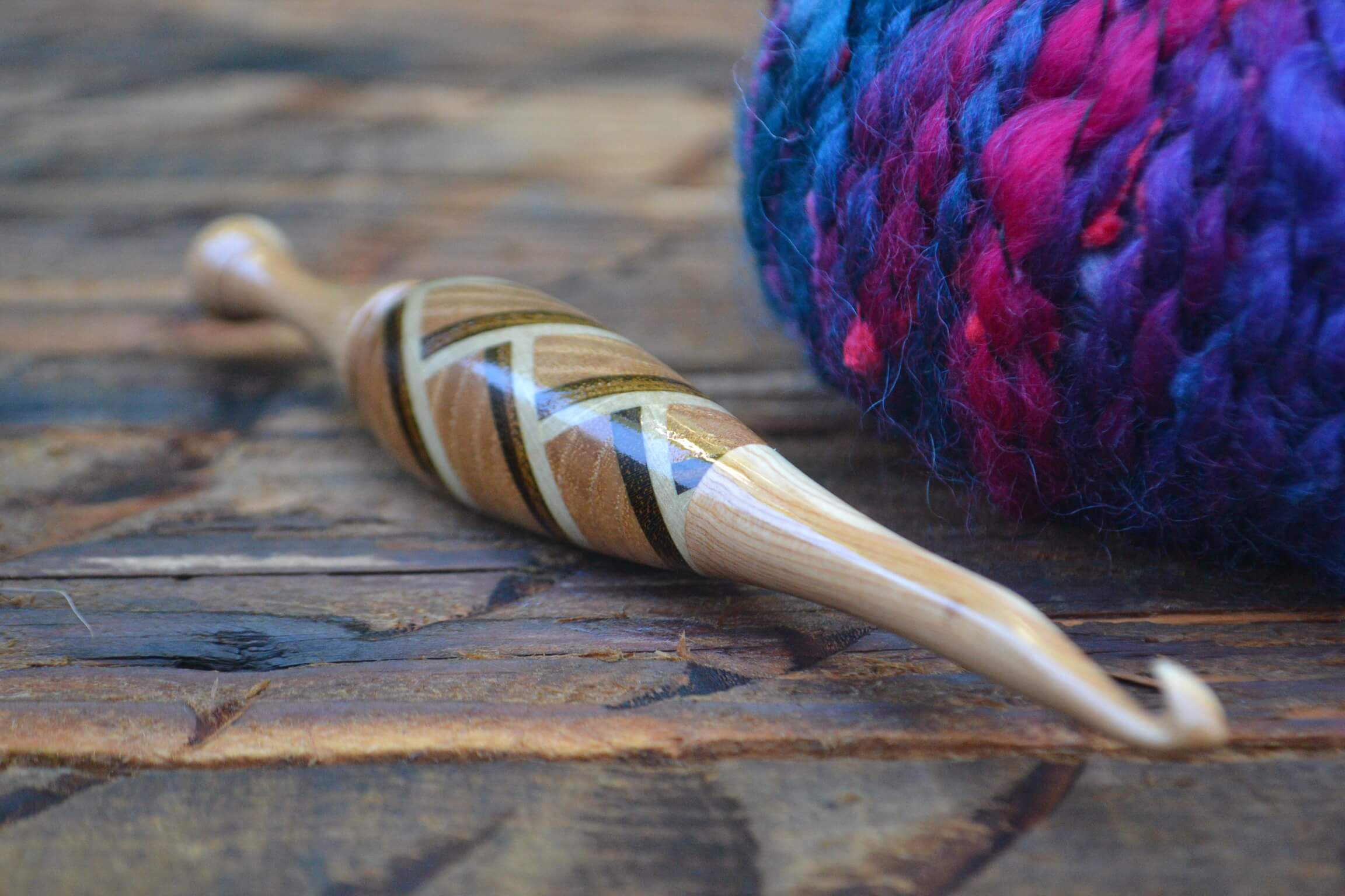 0,6 mm Clover steel, Purpleheart and Robinia/Apple/Hornbeam wood mosaic Ergonomic Crochet Hook 24 mm 16 cm #1128-4818