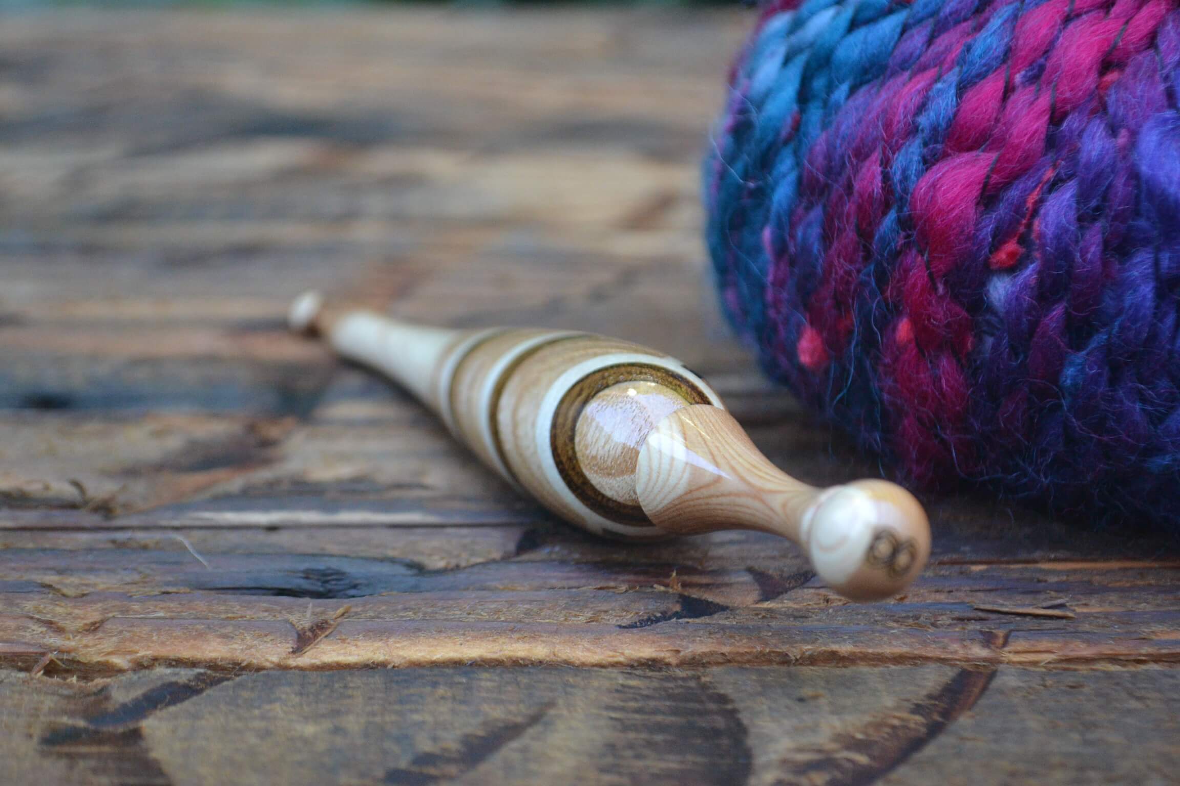 0,75 mm Clover Amour Purpleheart and Robinia/Hornbeam wood mosaic Ergonomic Crochet Hook 19 mm 15 cm #1140-4830