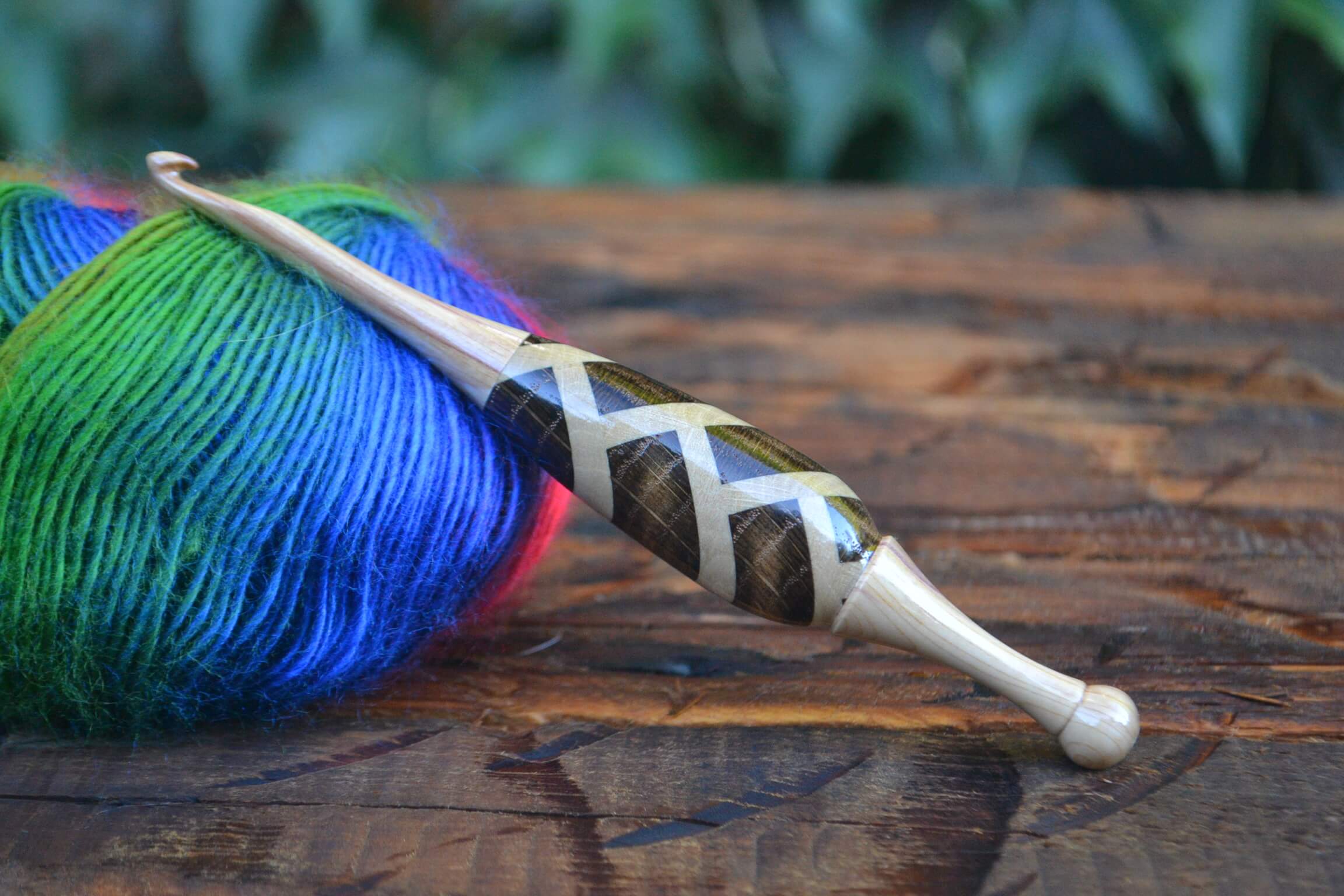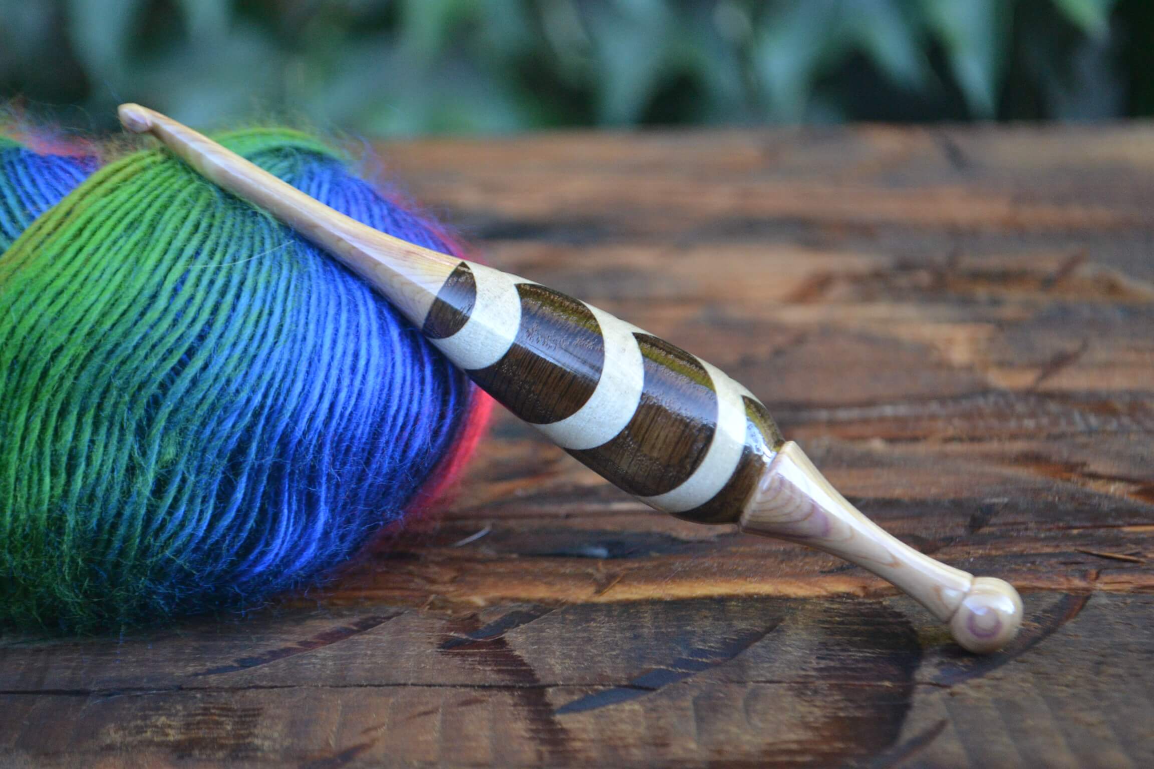 0,75 mm Clover Amour Purpleheart and Robinia/Hornbeam wood mosaic Ergonomic Crochet Hook 19 mm 15 cm #1140-4830