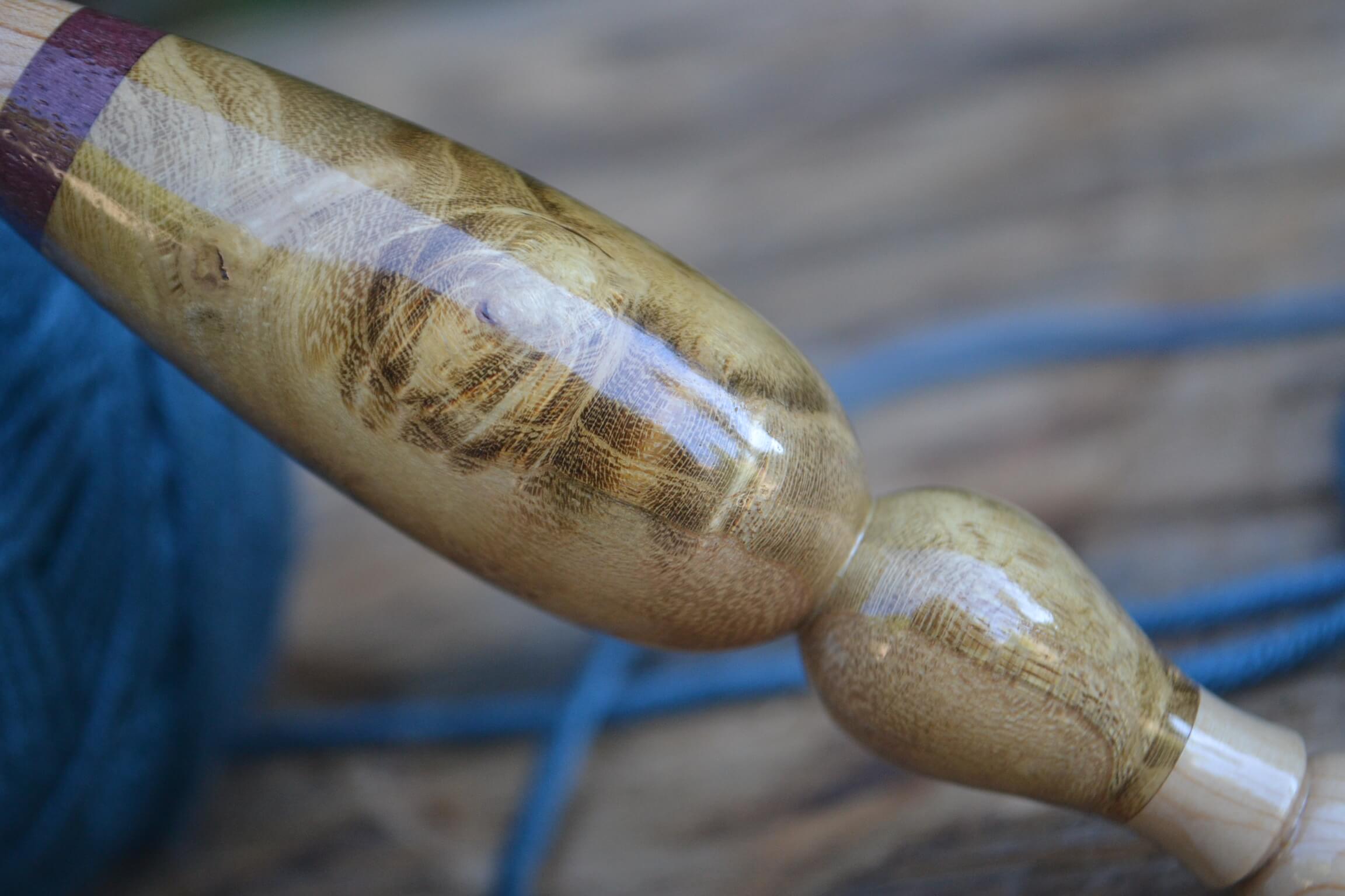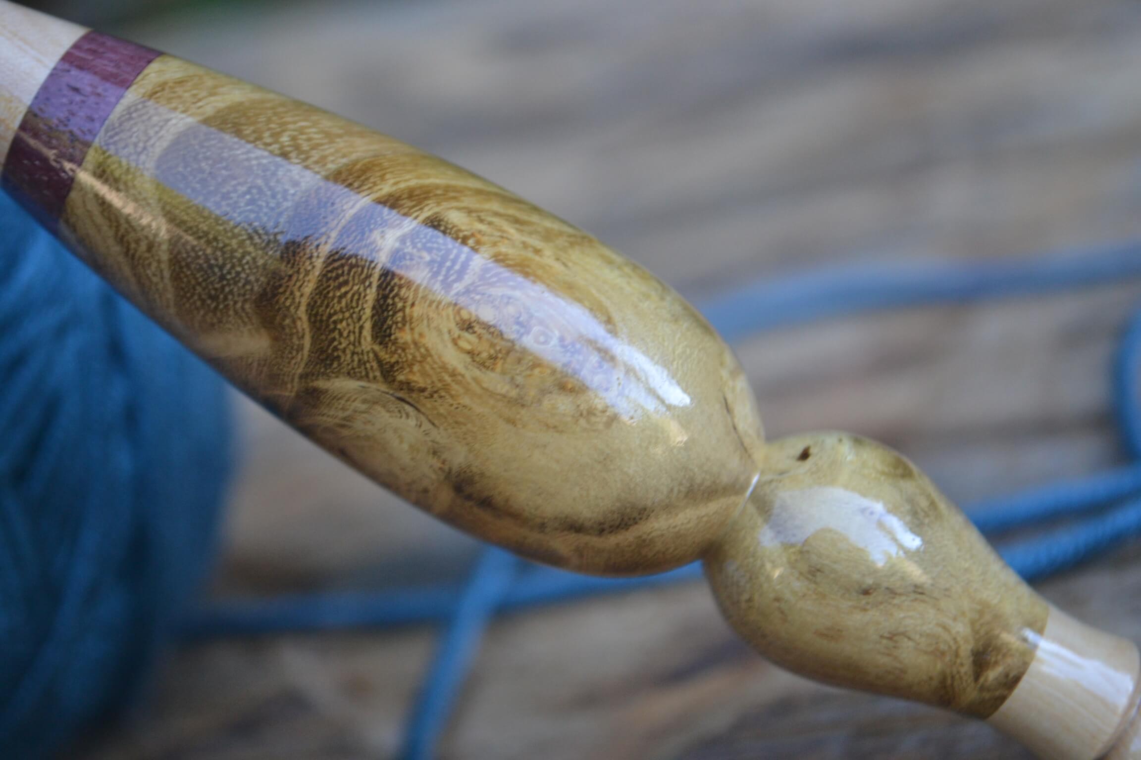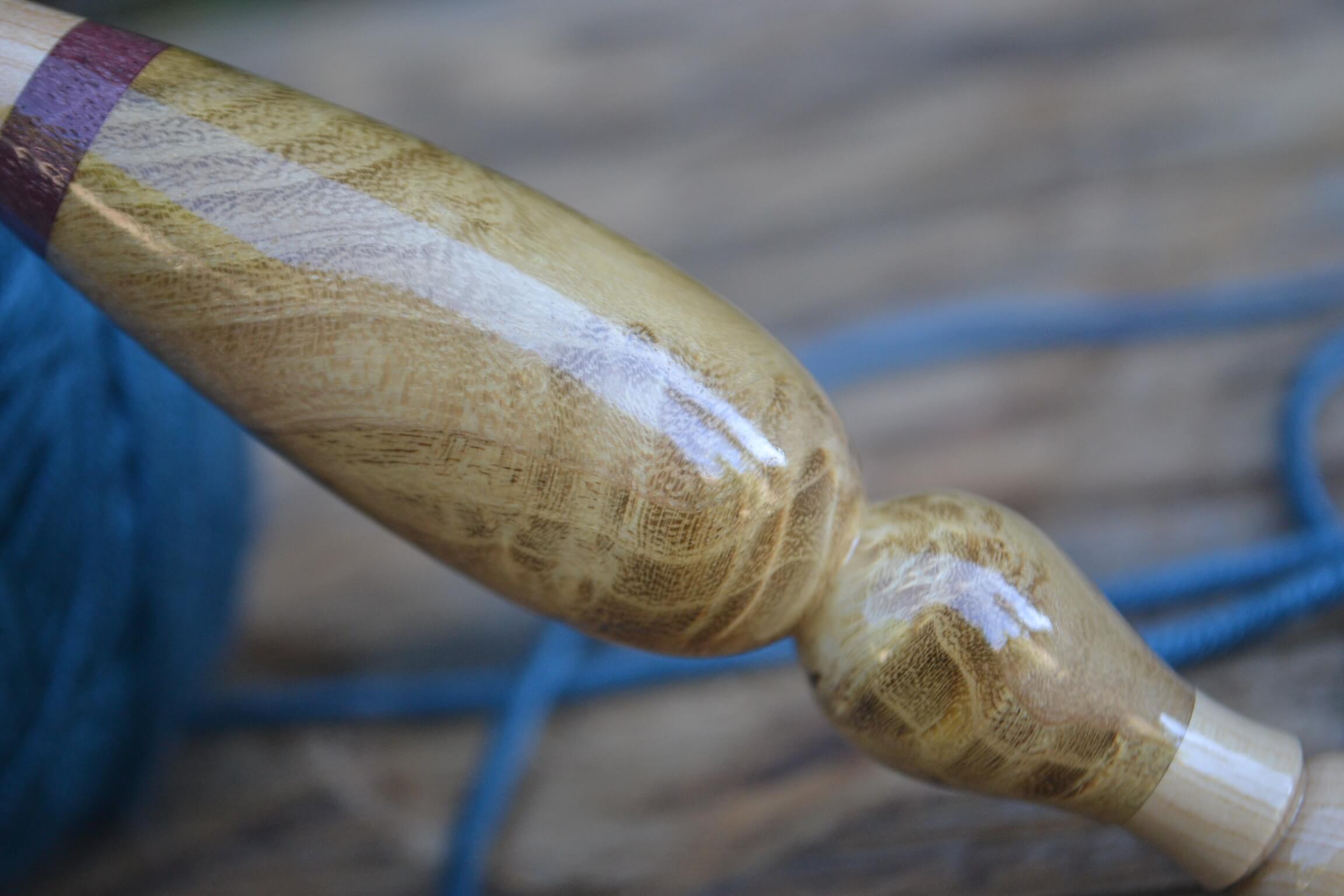 9 mm = size M Purpleheart wood, Box Elder Stabilized Curly/ Burl wood and Robinia Curly/ Burl wood Ergonomic Crochet Hook 24 mm 18,5 cm #773-4463