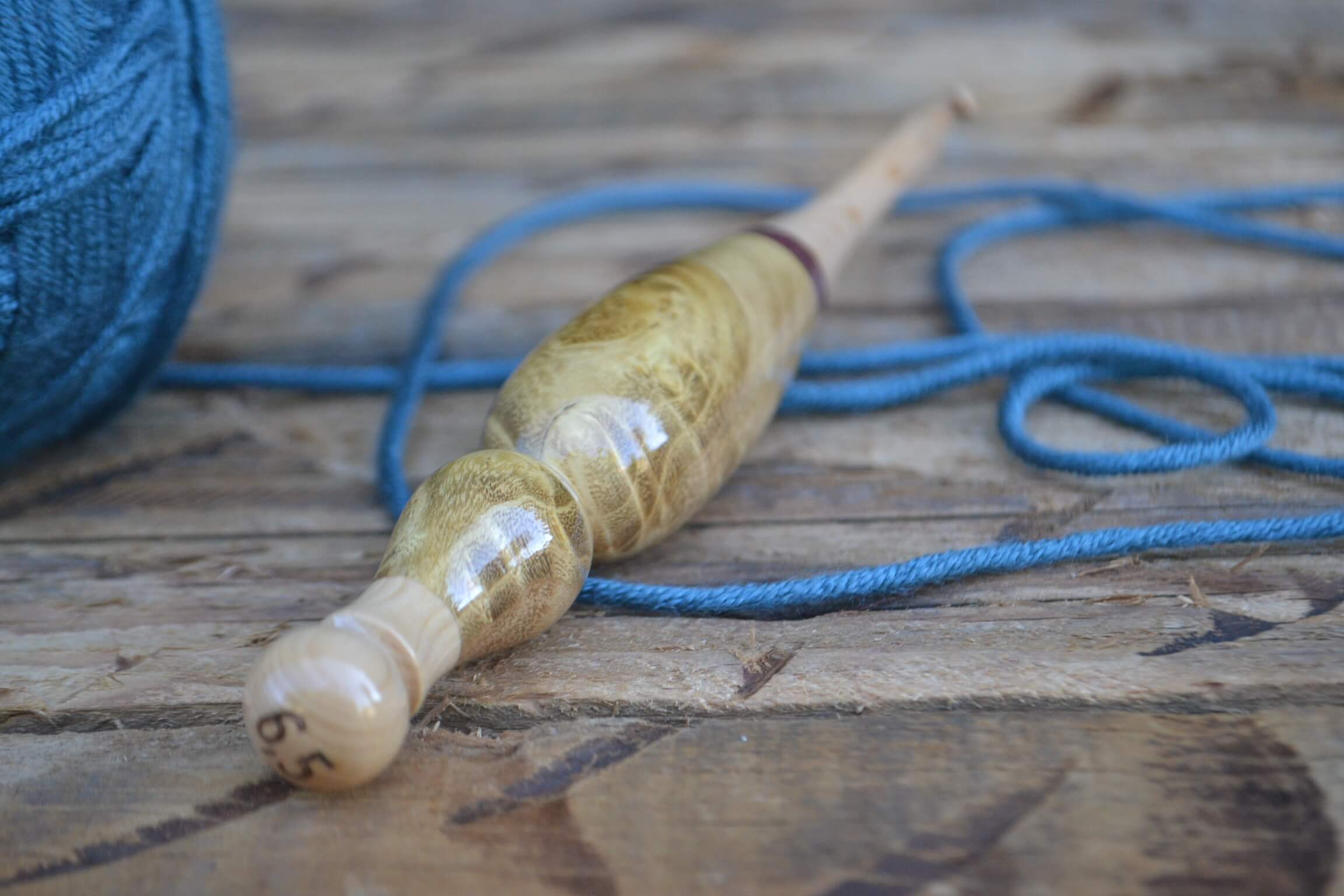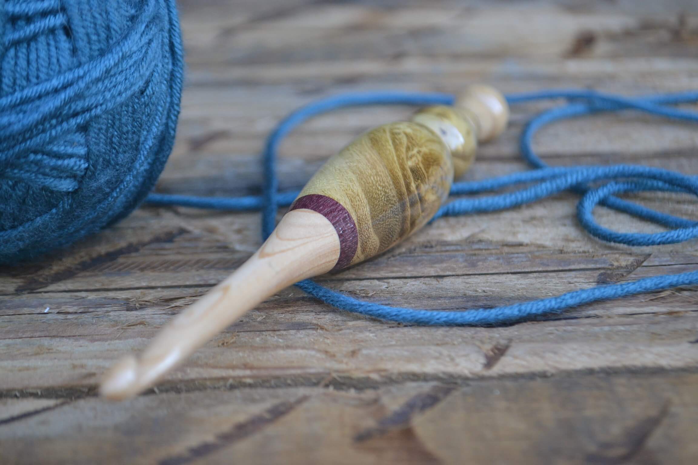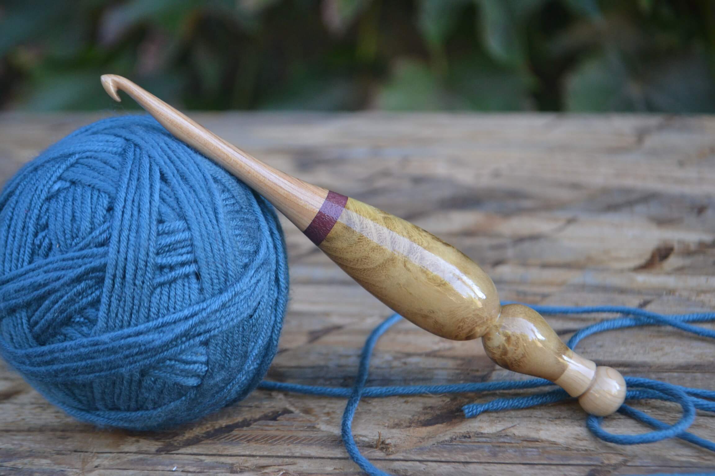 9 mm = size M Purpleheart wood, Box Elder Stabilized Curly/ Burl wood and Robinia Curly/ Burl wood Ergonomic Crochet Hook 24 mm 18,5 cm #773-4463
