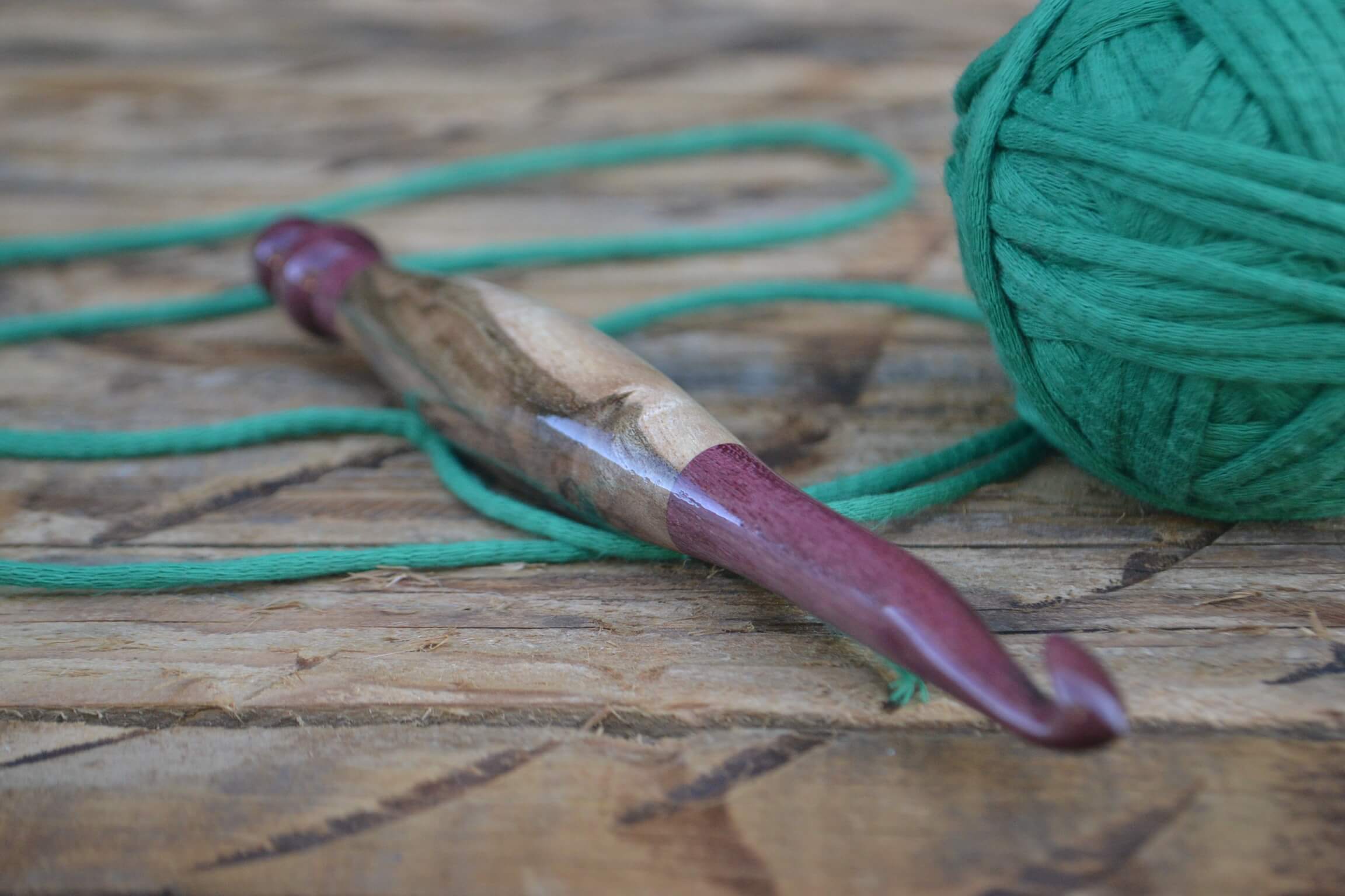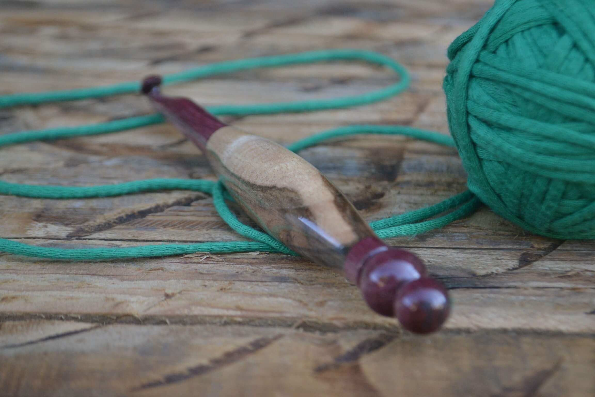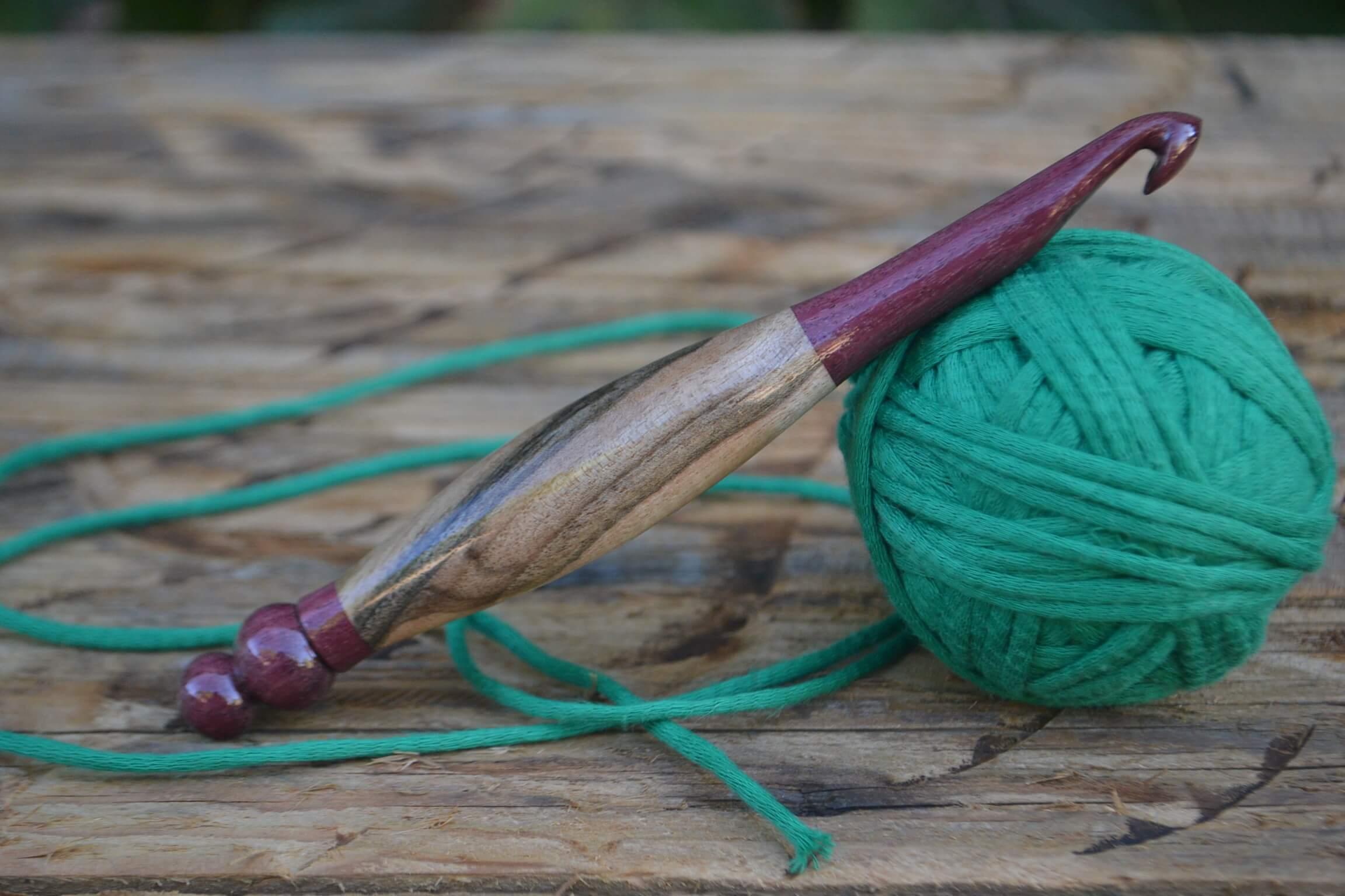 10 mm N Purpleheart and Curly Walnut wood Ergonomic Crochet Hook 21 mm 16.5 cm #1396-5086