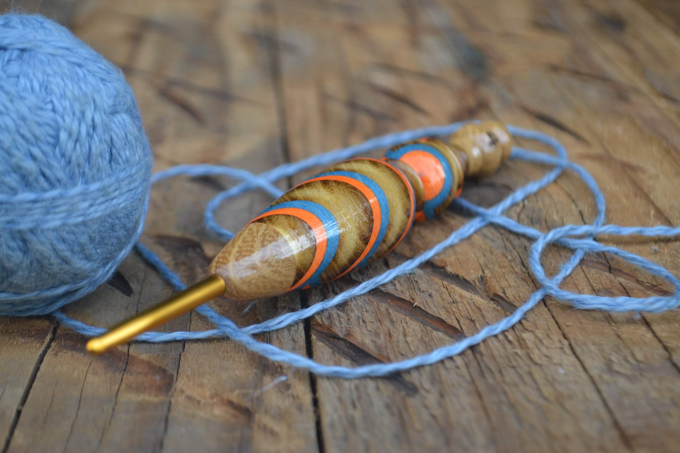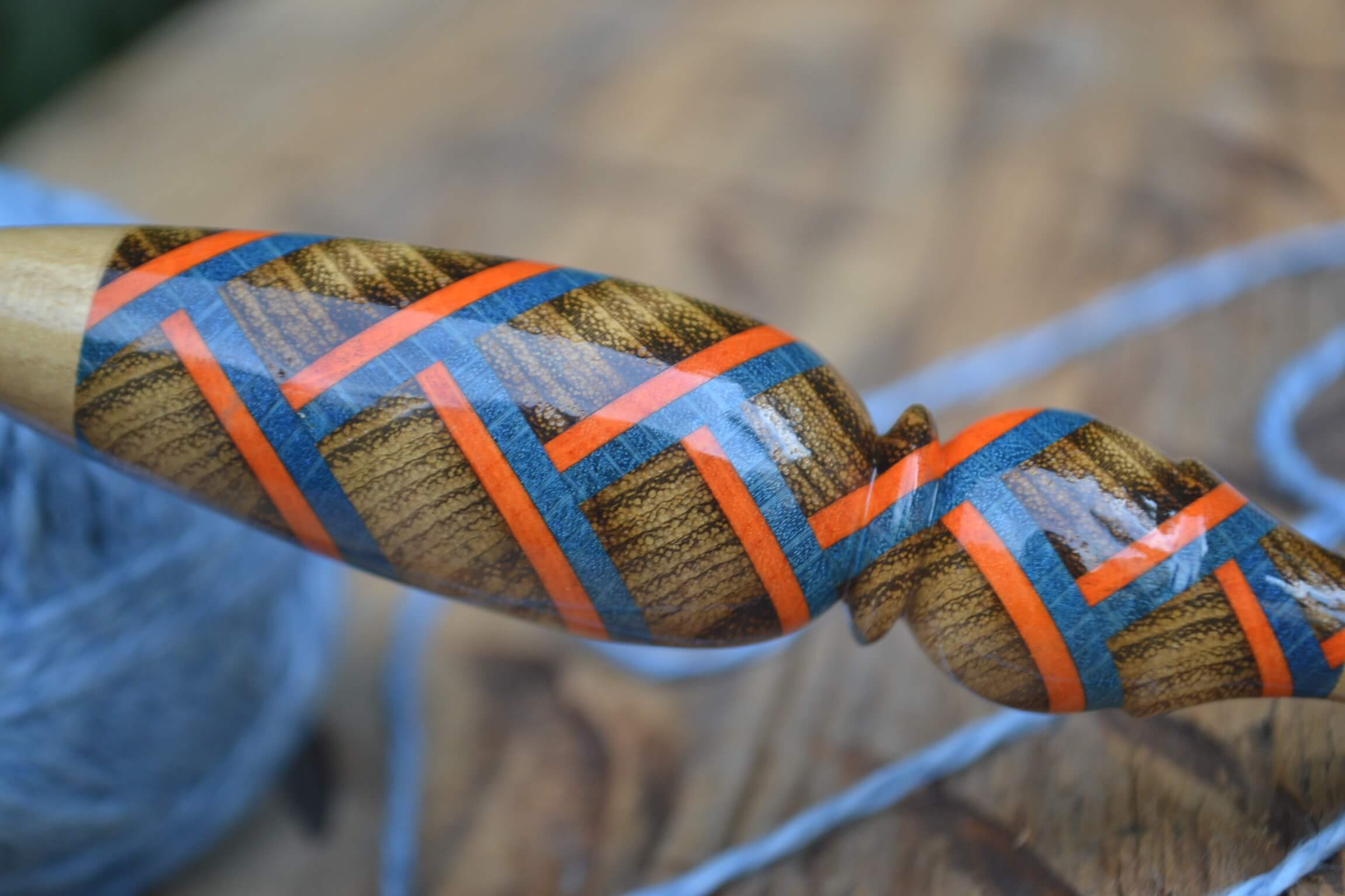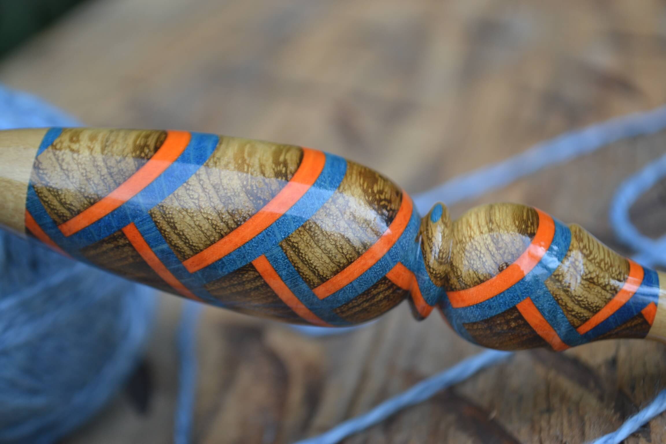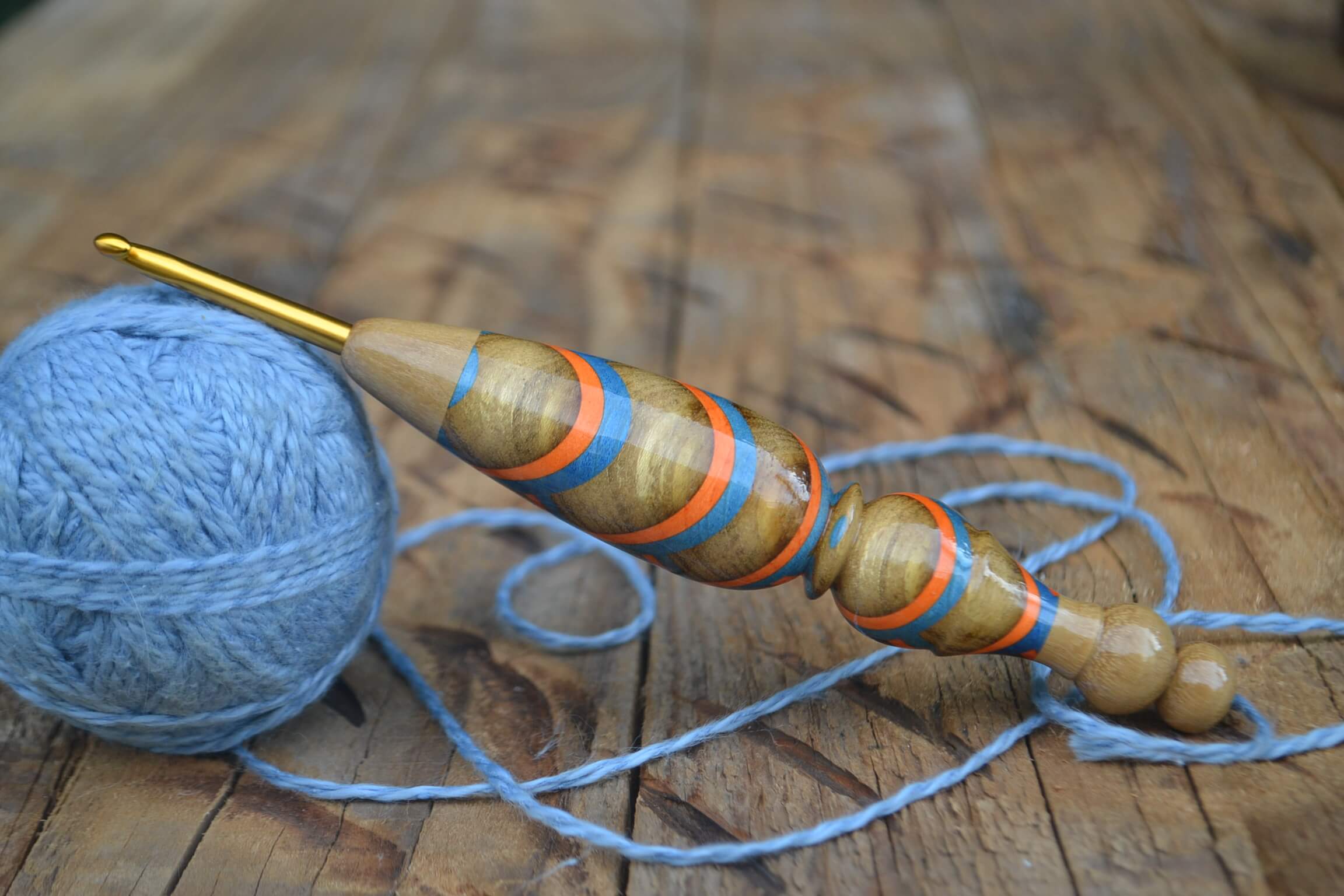 4 mm G Tulip Gold, Robinia, Blue & Orange Hornbeam wood mosaic Ergonomic Crochet Hook 23 mm 16.5 cm #1412-5102