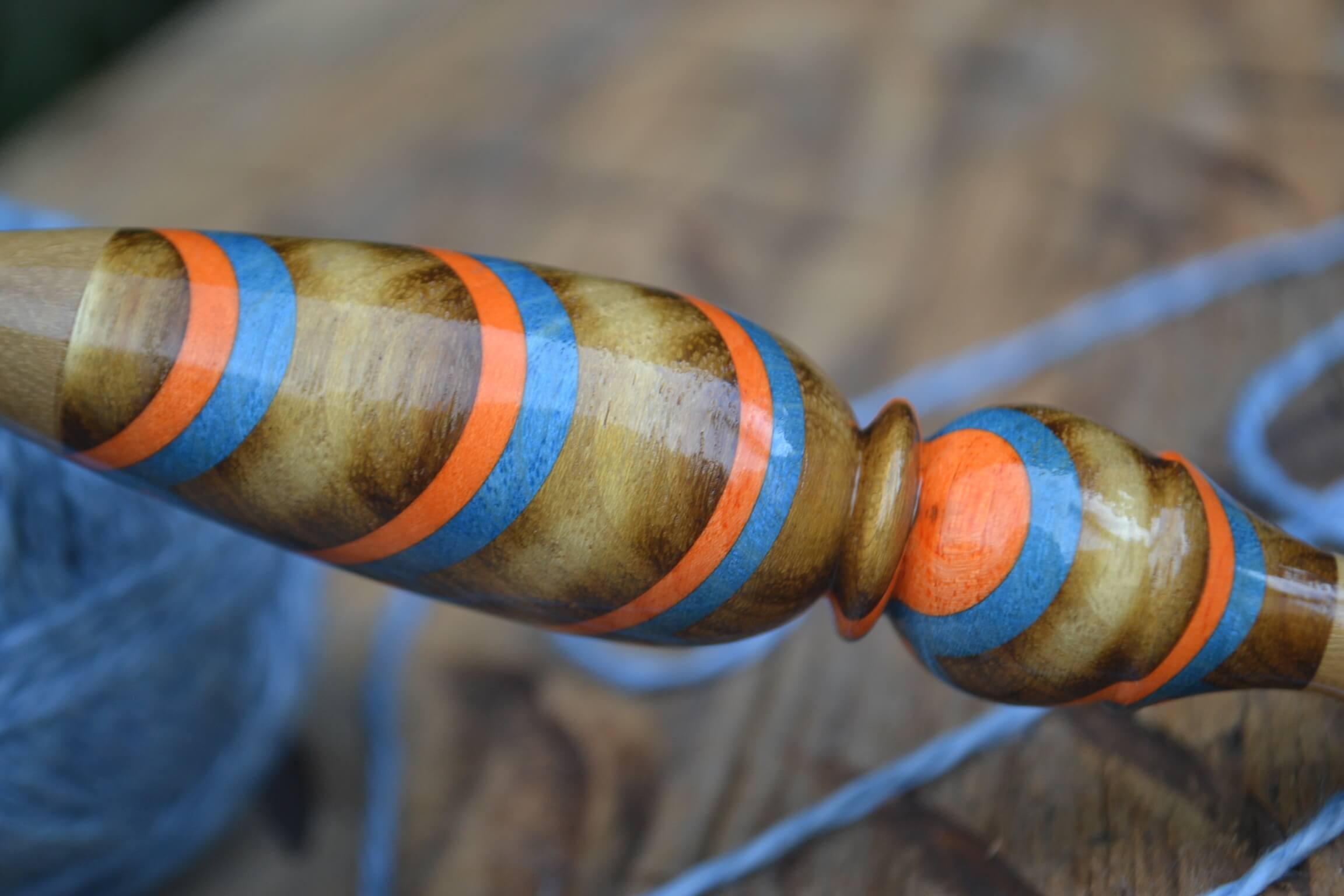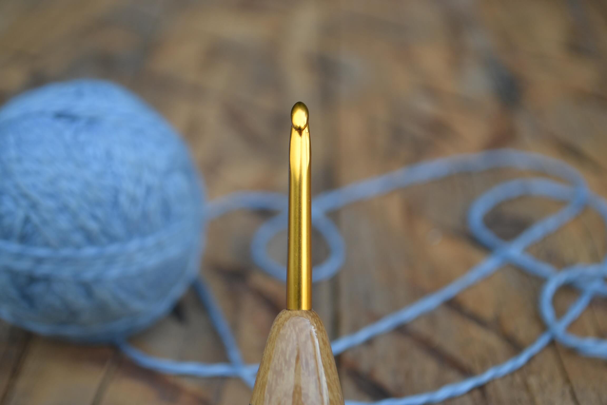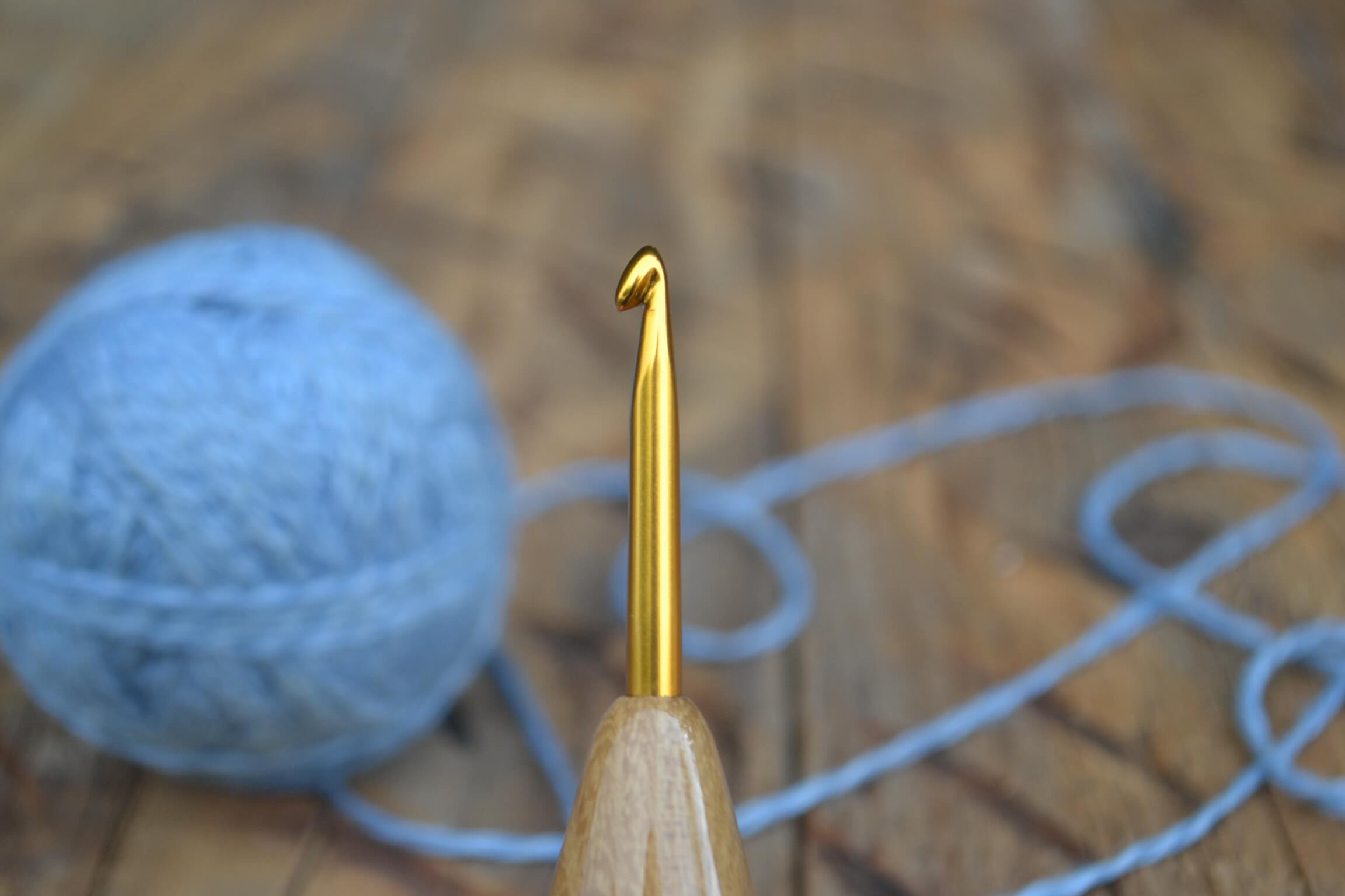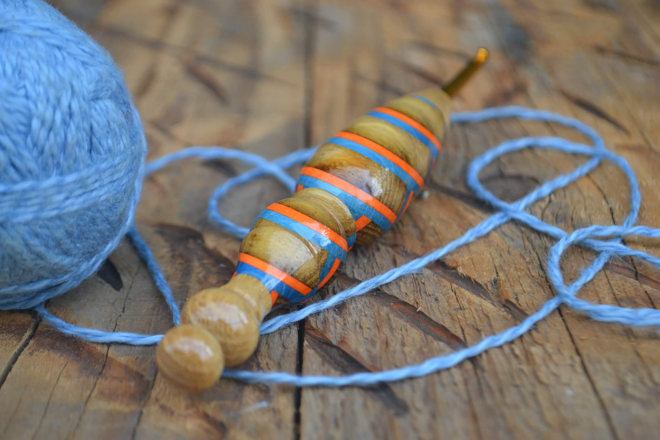 4 mm G Tulip Gold, Robinia, Blue & Orange Hornbeam wood mosaic Ergonomic Crochet Hook 23 mm 16.5 cm #1412-5102