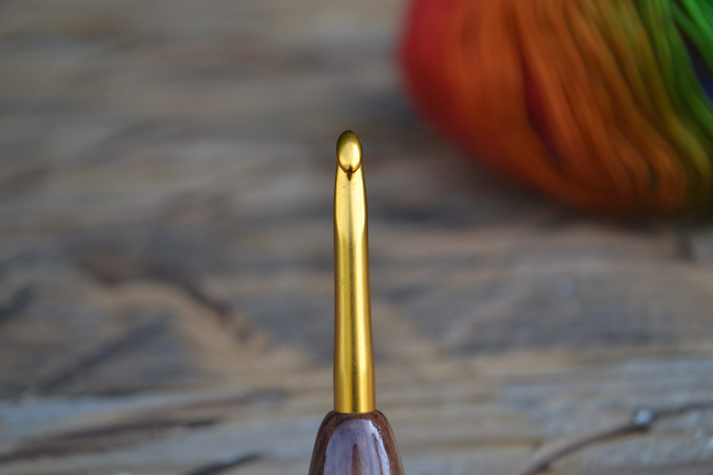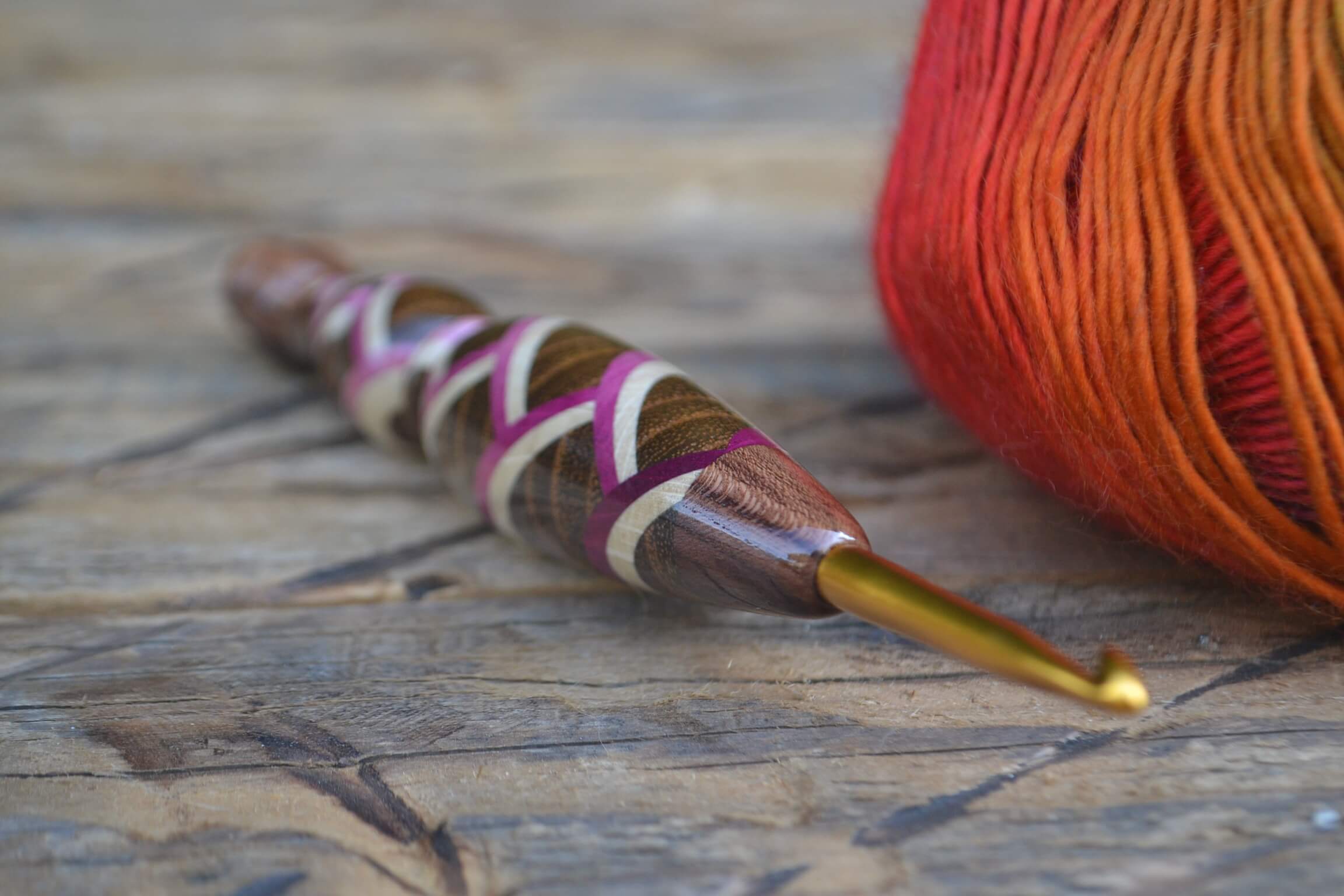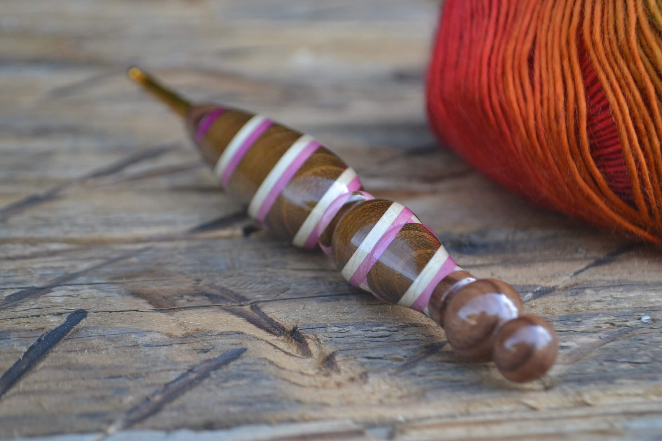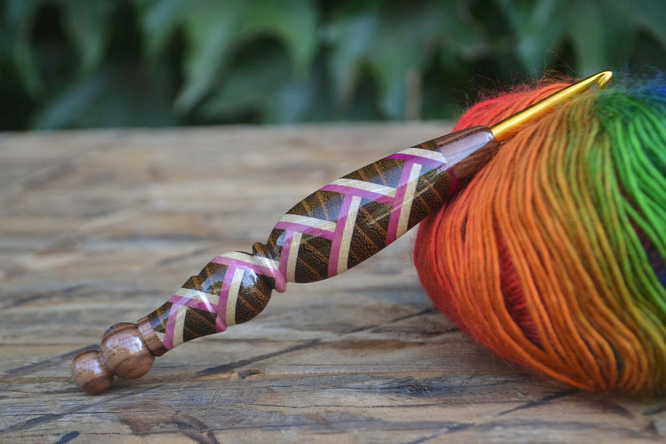 4.5 mm size 7 Tulip Gold, Dark Apricot, Robinia, White & Pink Hornbeam wood mosaic Ergonomic Crochet Hook 23 mm 17 cm #1414-5104