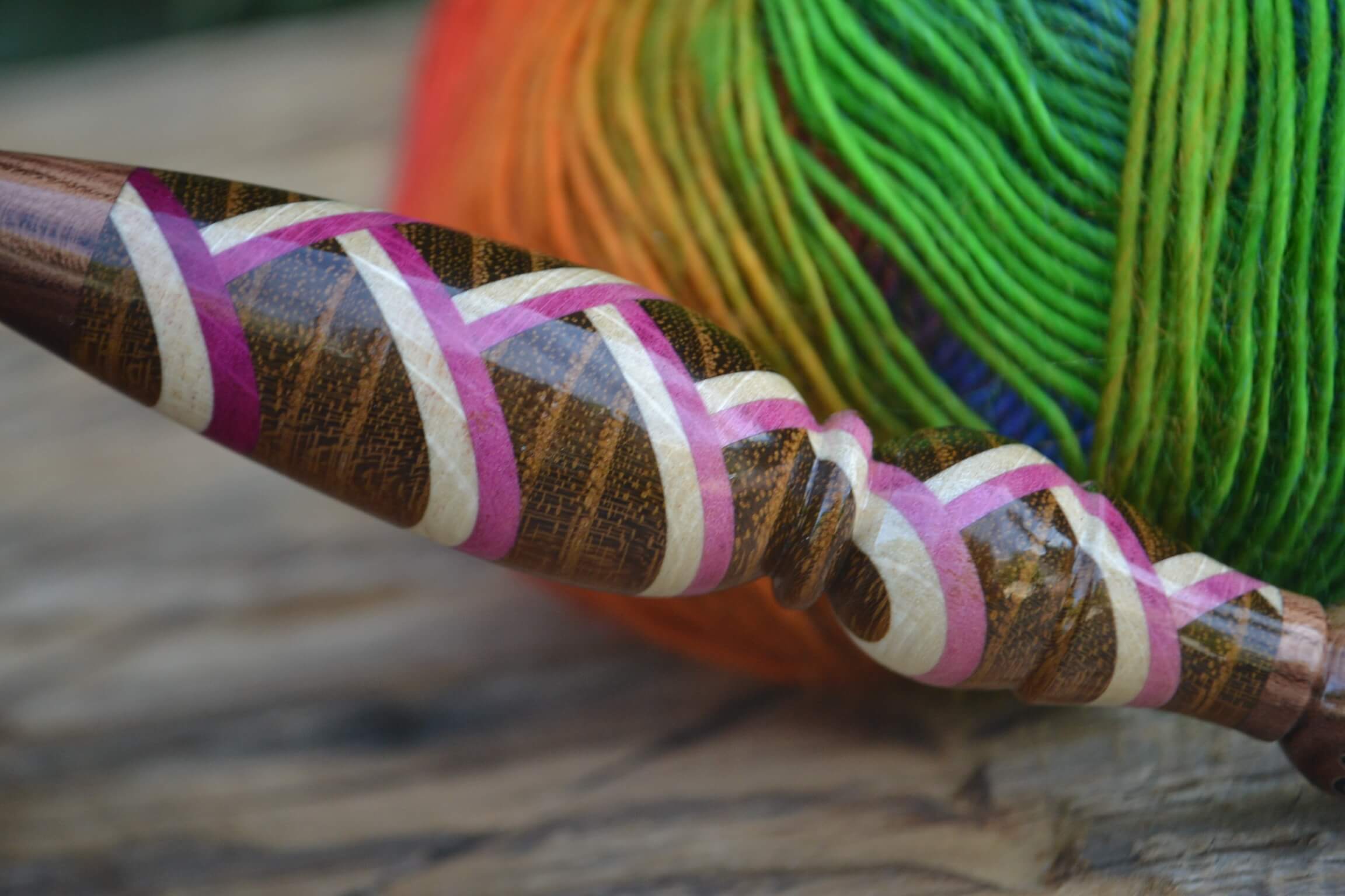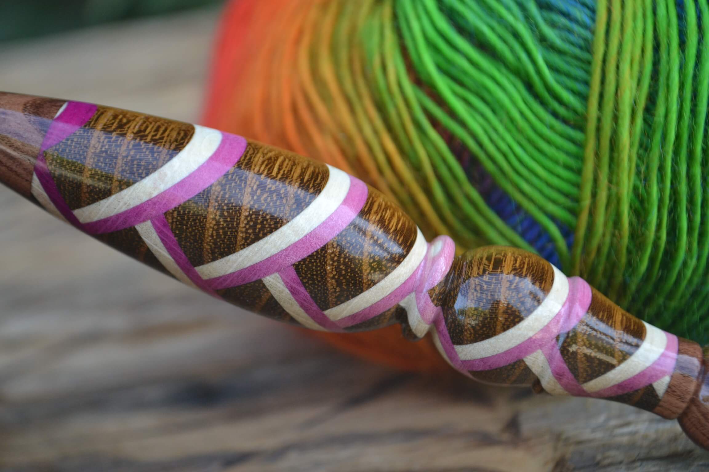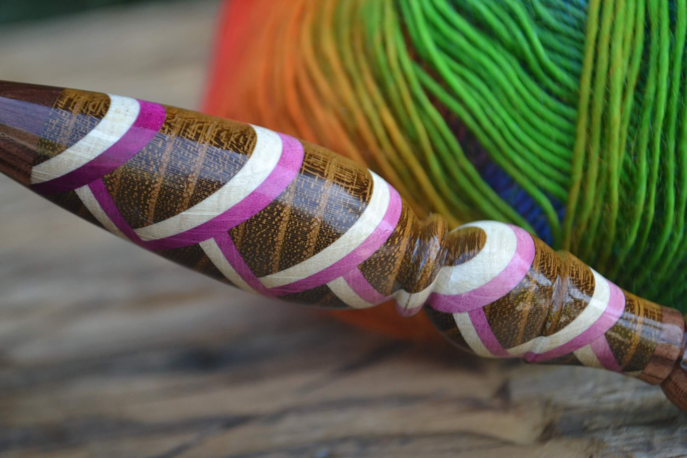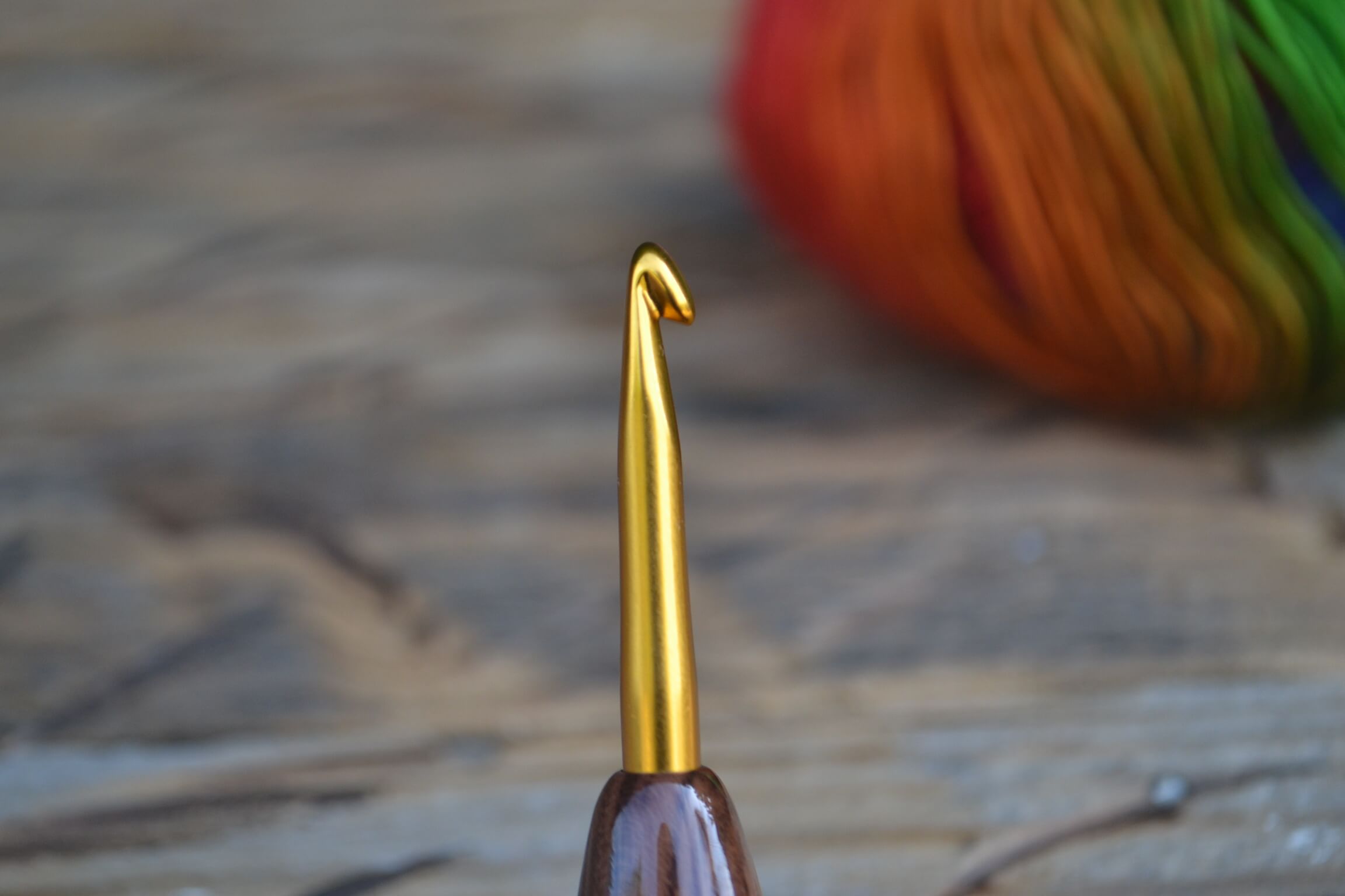 4.5 mm size 7 Tulip Gold, Dark Apricot, Robinia, White & Pink Hornbeam wood mosaic Ergonomic Crochet Hook 23 mm 17 cm #1414-5104