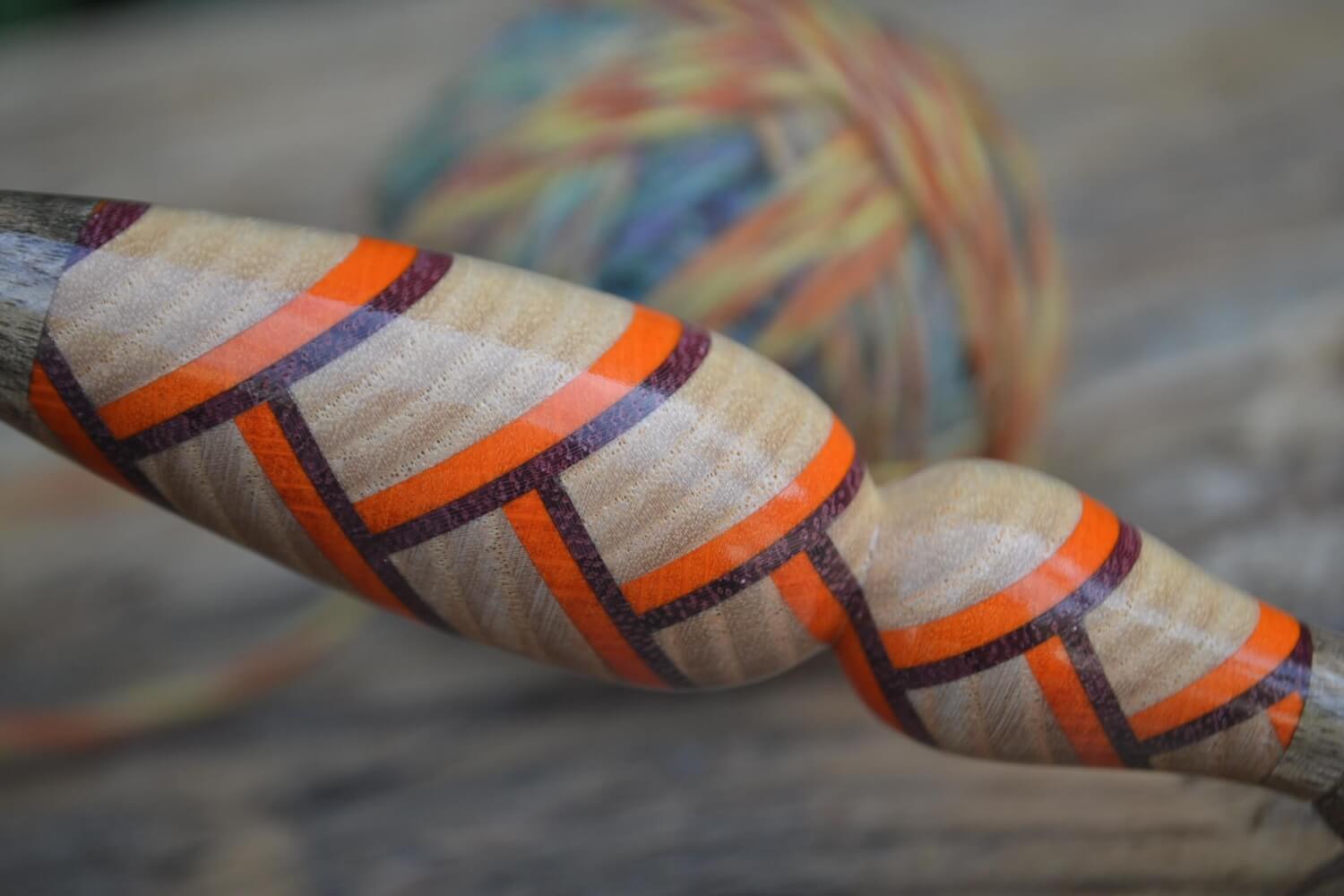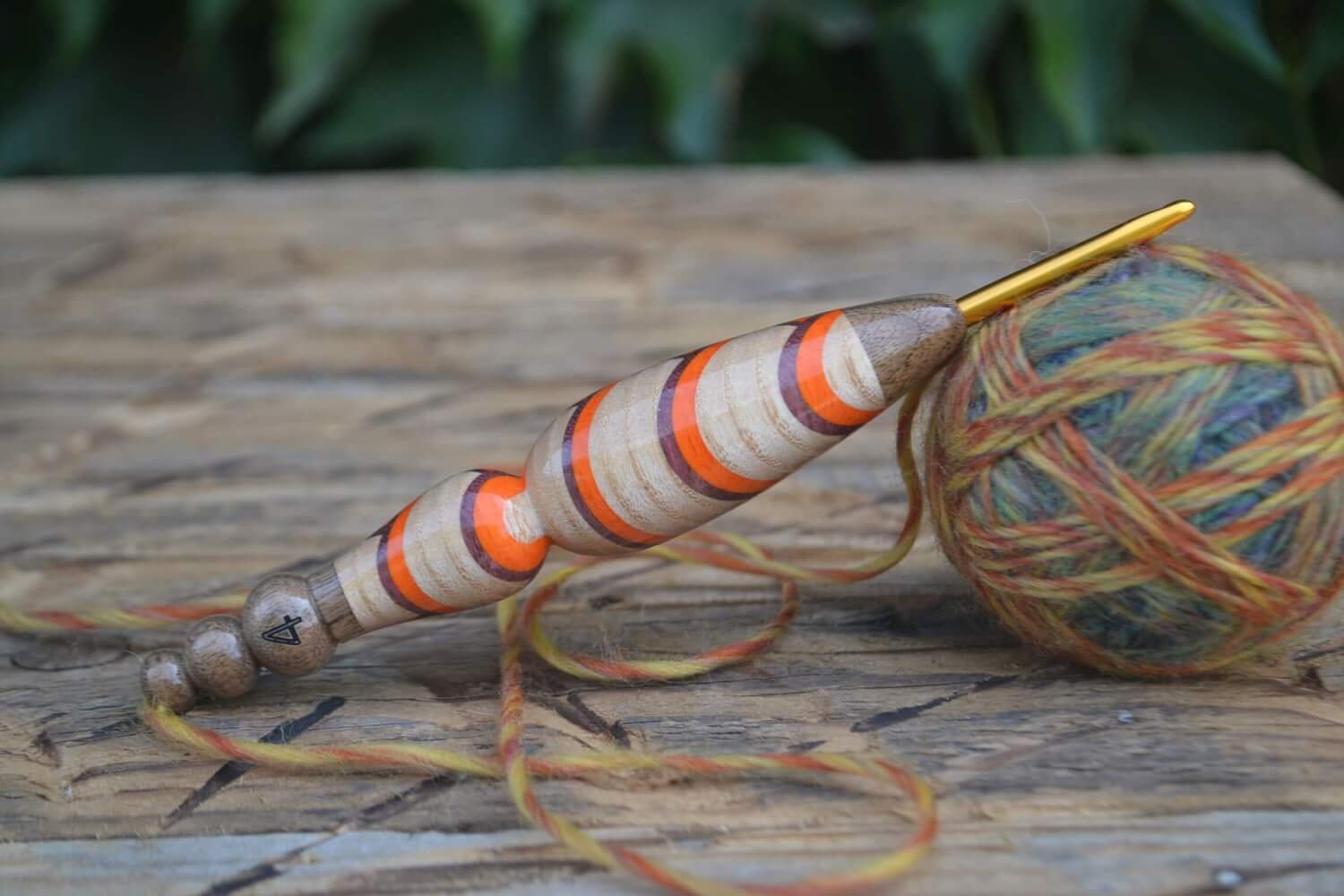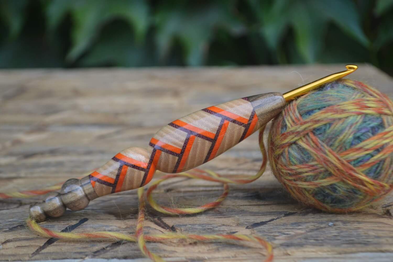 4 mm G Tulip Gold, Walnut, Purpleheart/ Ash /Orange Hornbeam wood mosaic Ergonomic Crochet Hook 23 mm 17 cm #1416-5106