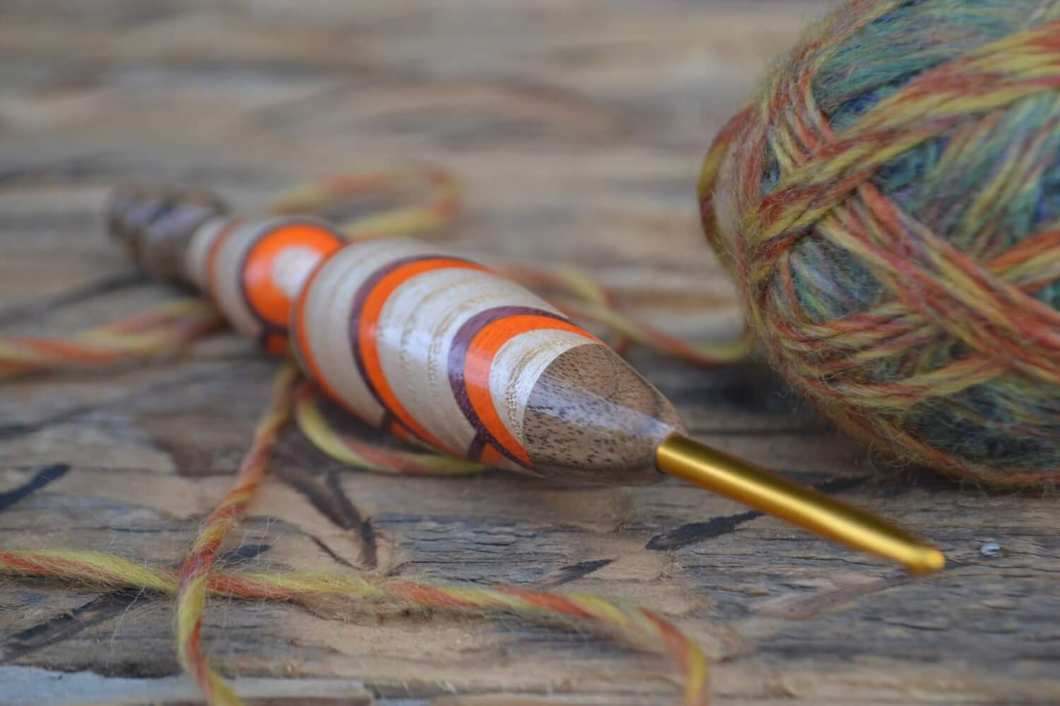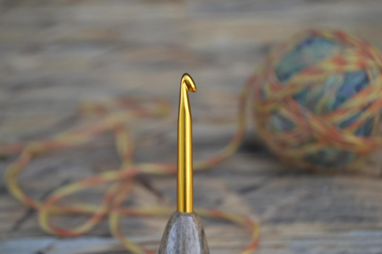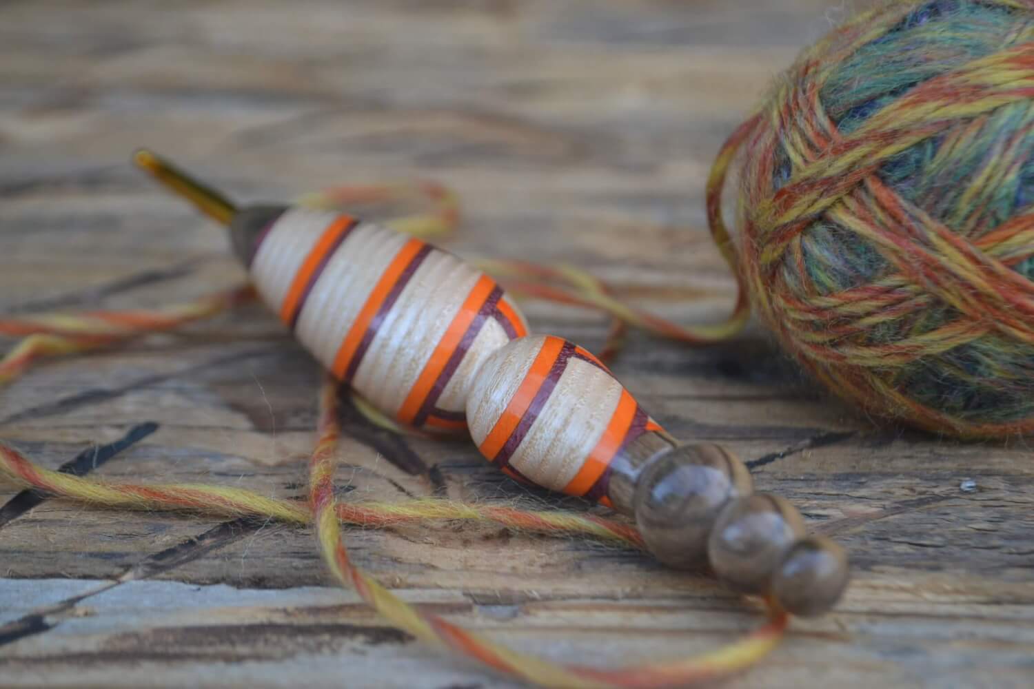 4 mm G Tulip Gold, Walnut, Purpleheart/ Ash /Orange Hornbeam wood mosaic Ergonomic Crochet Hook 23 mm 17 cm #1416-5106