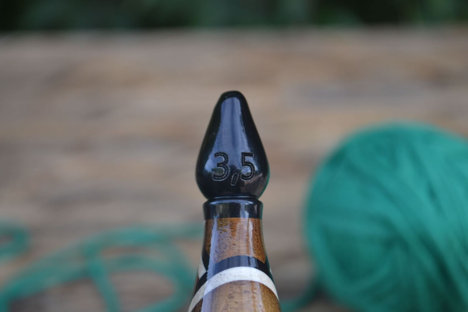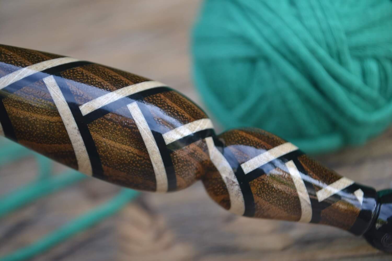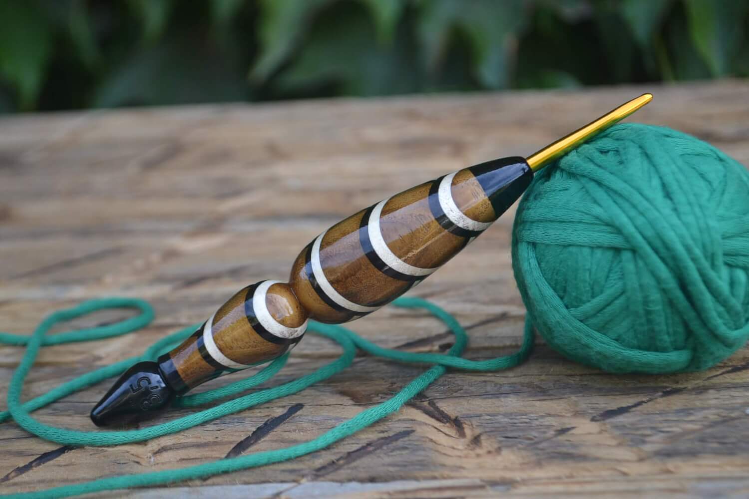 3.5 mm E Tulip Gold, Robinia /White & Black Hornbeam wood mosaic Ergonomic Crochet Hook 23 mm 17 cm #1418-5108