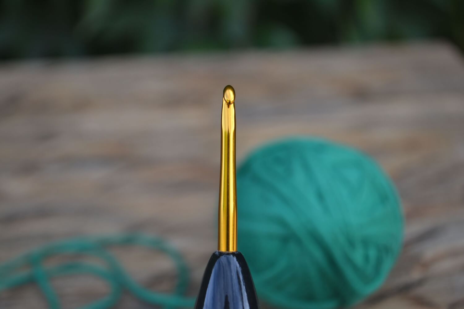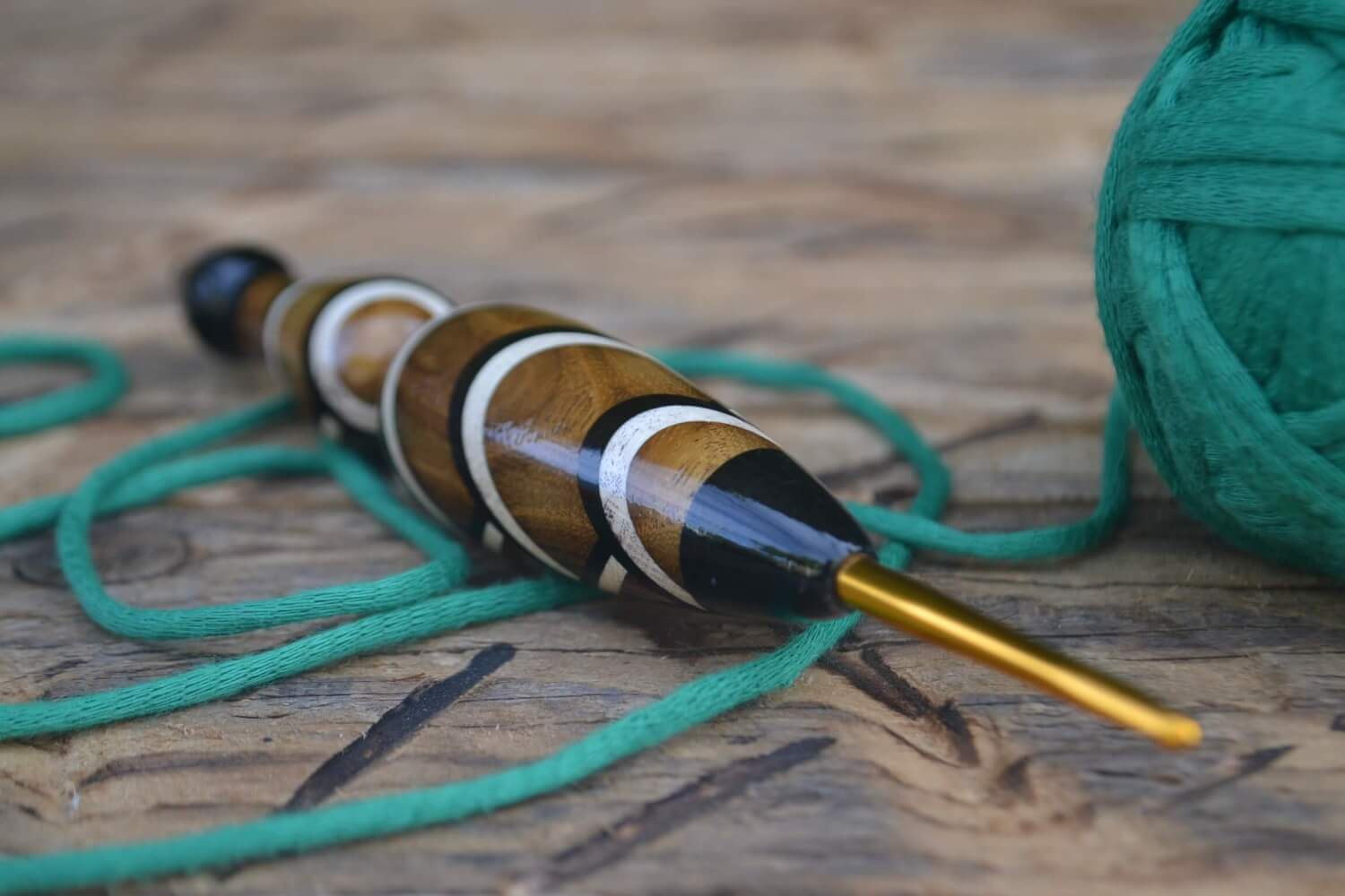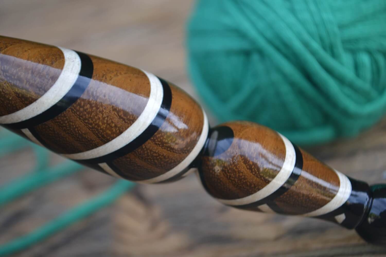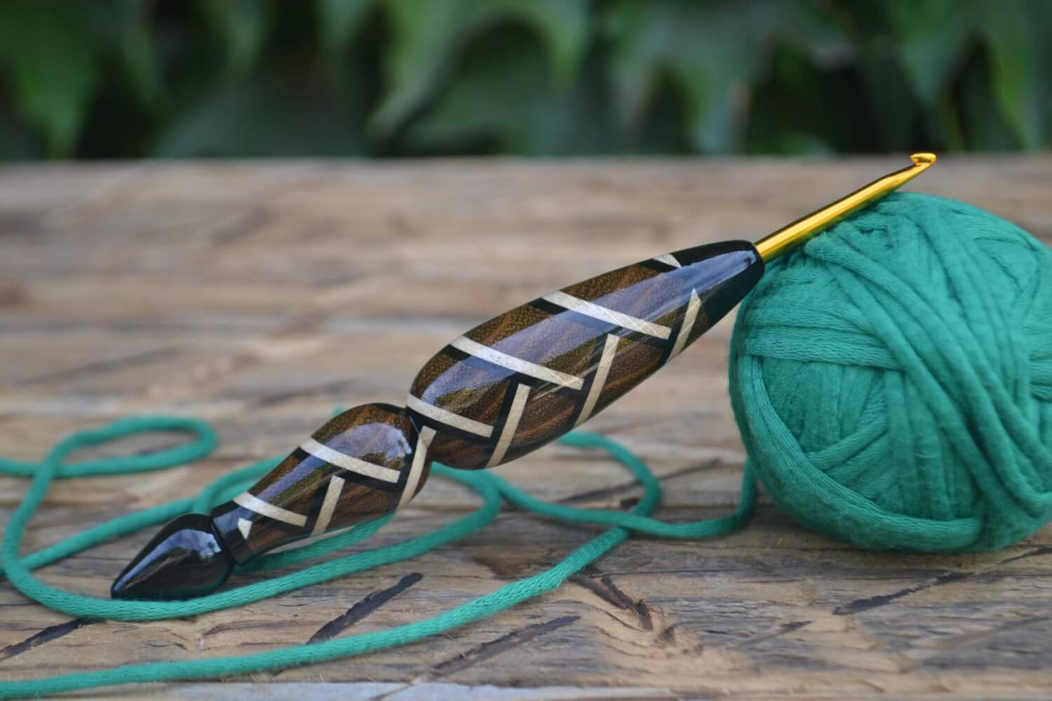 3.5 mm E Tulip Gold, Robinia /White & Black Hornbeam wood mosaic Ergonomic Crochet Hook 23 mm 17 cm #1418-5108