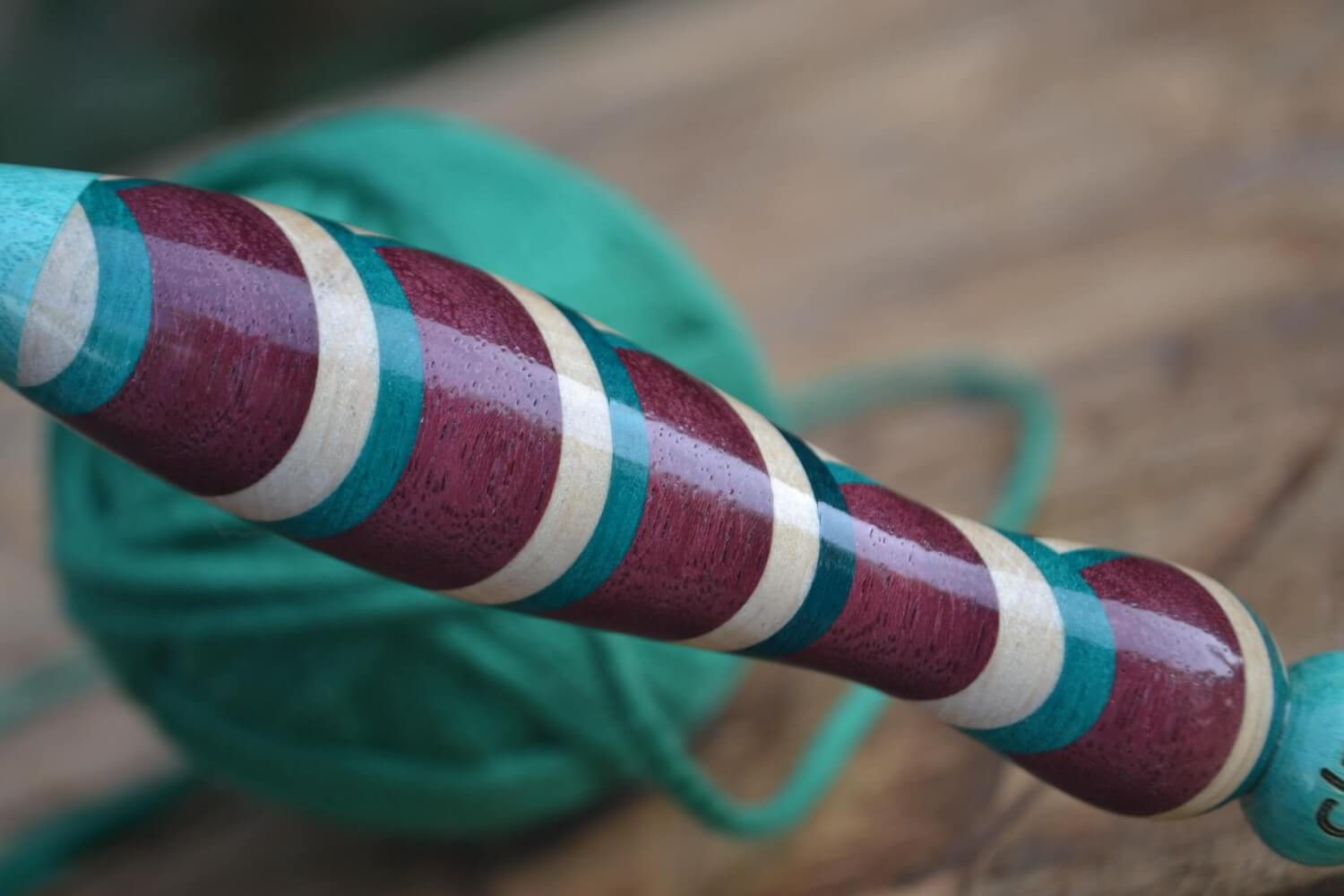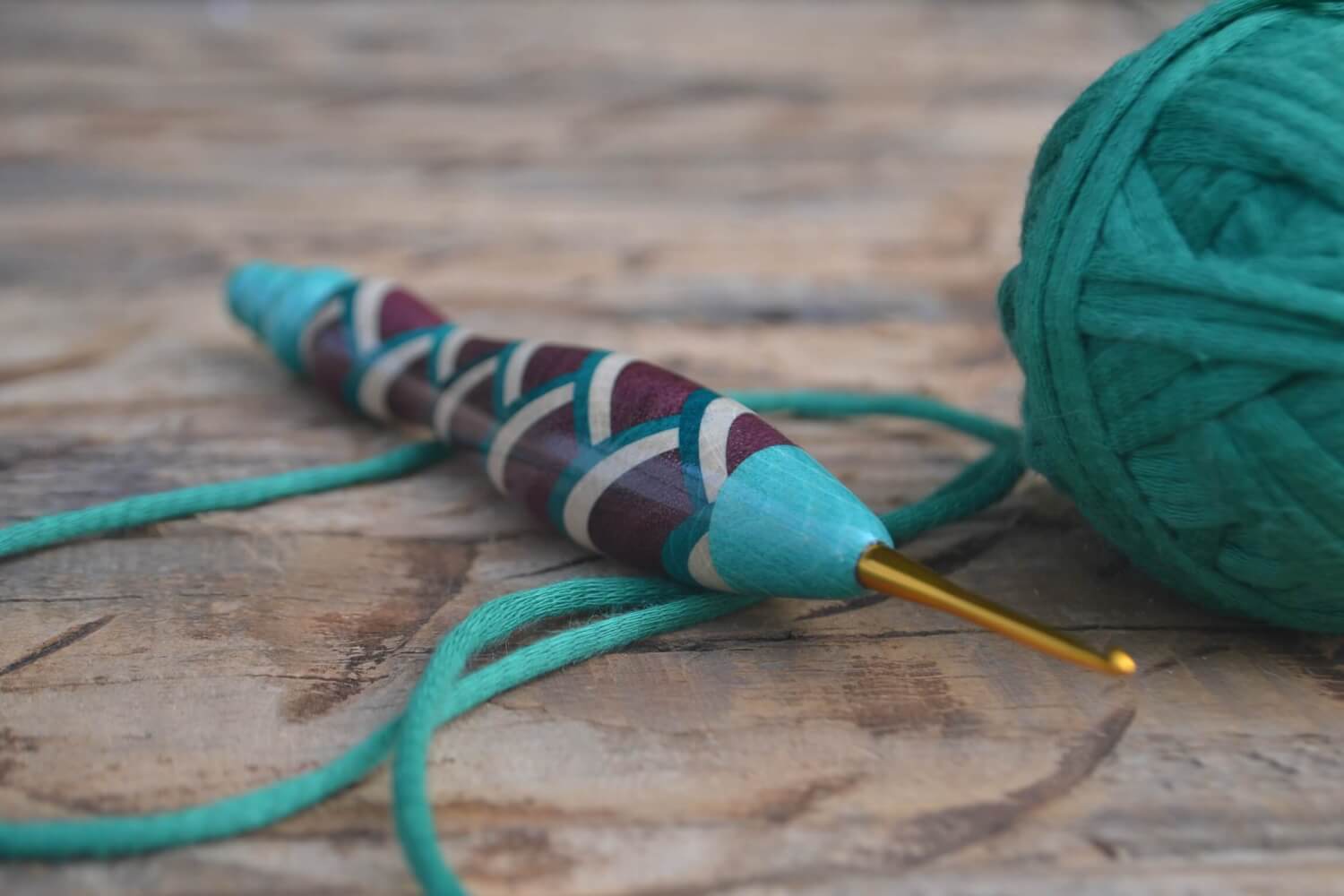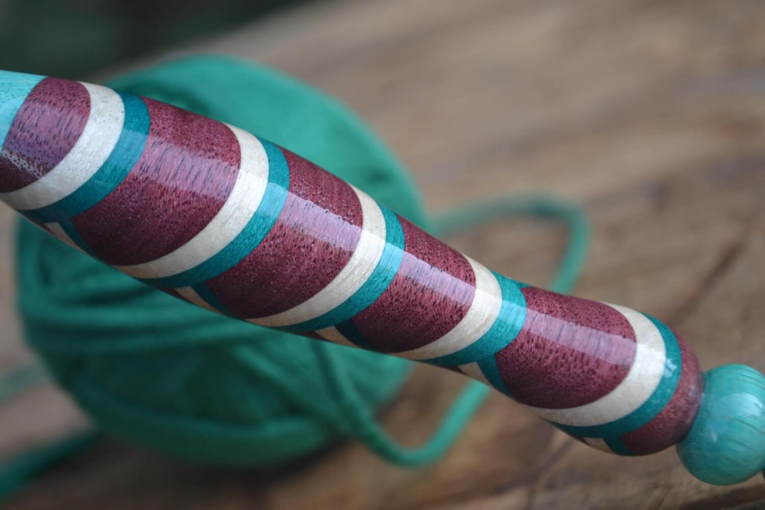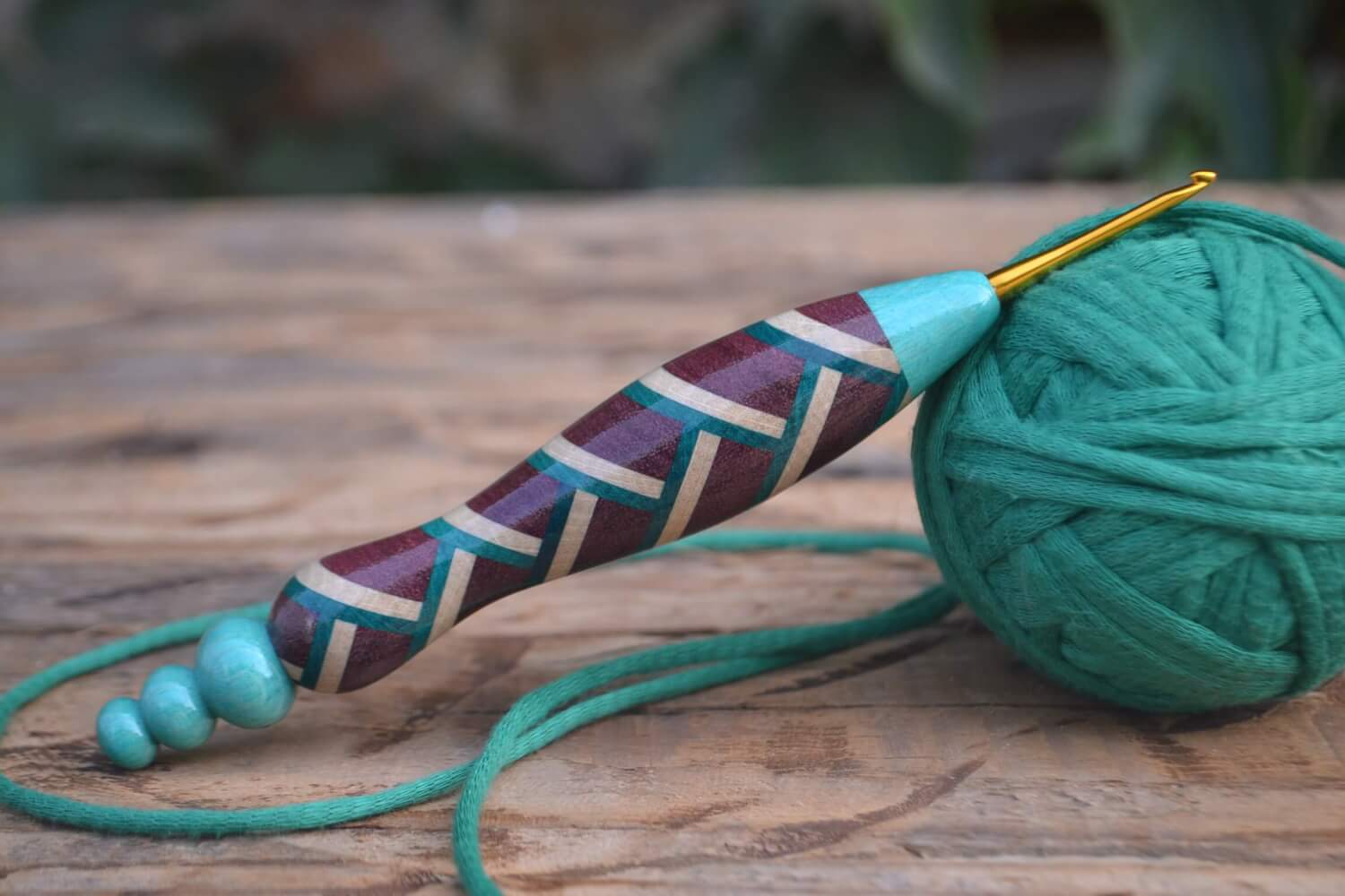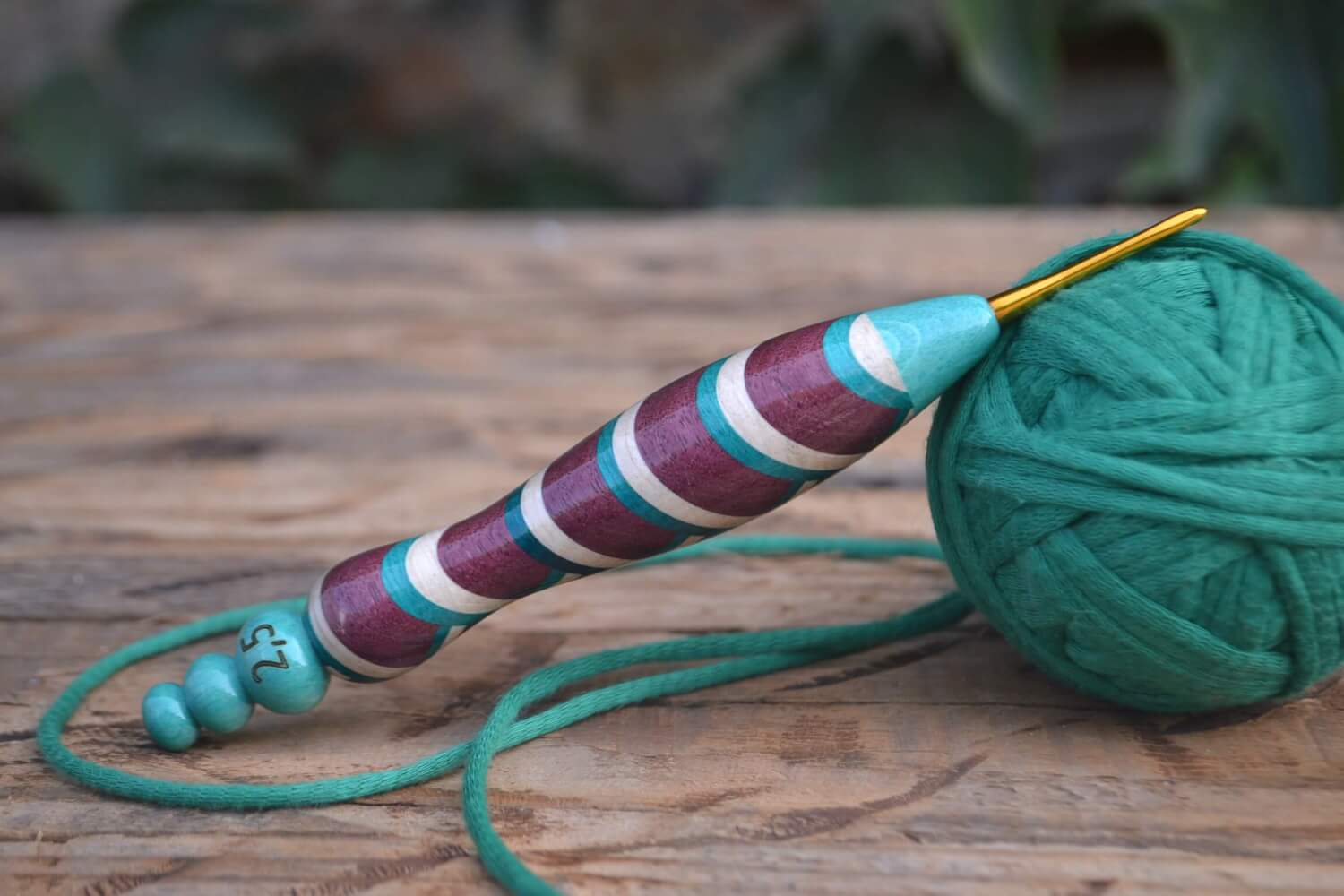 2.5 mm Tulip Gold, Purpleheart, White & Green Hornbeam wood mosaic Ergonomic Crochet Hook 21 mm 16.5 cm #1425-5115