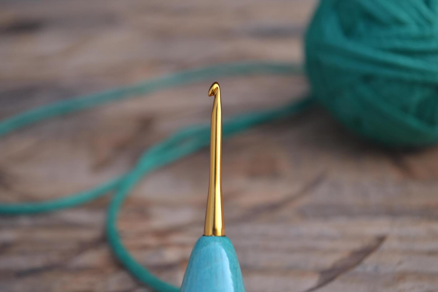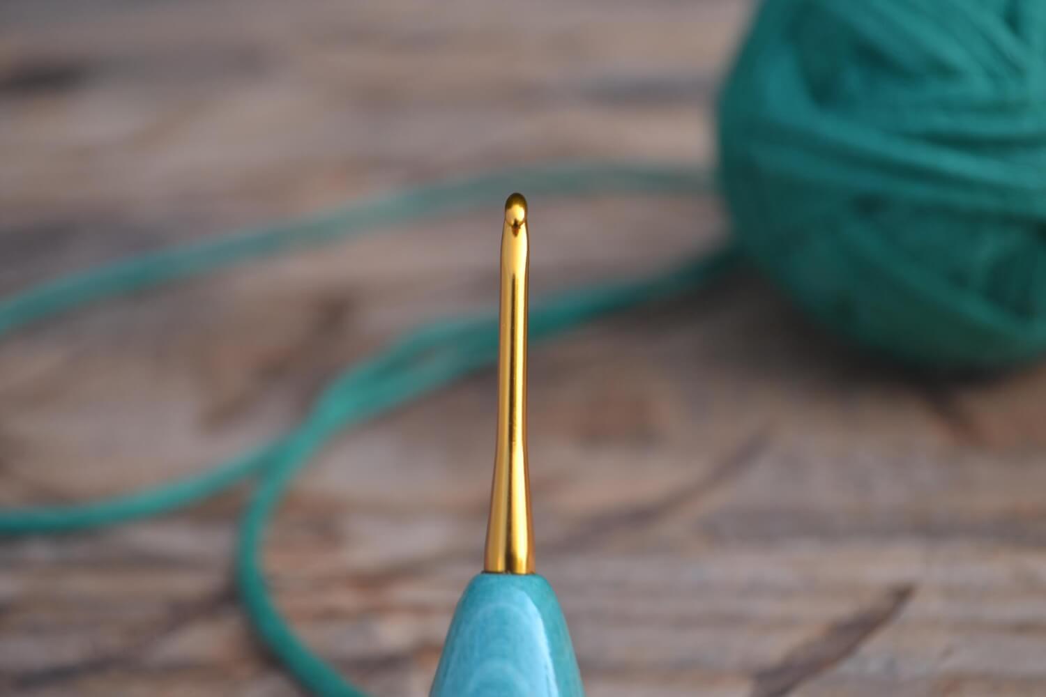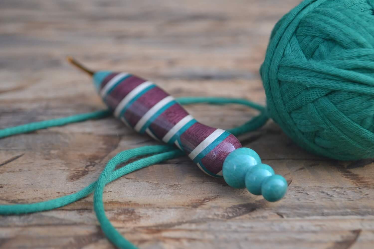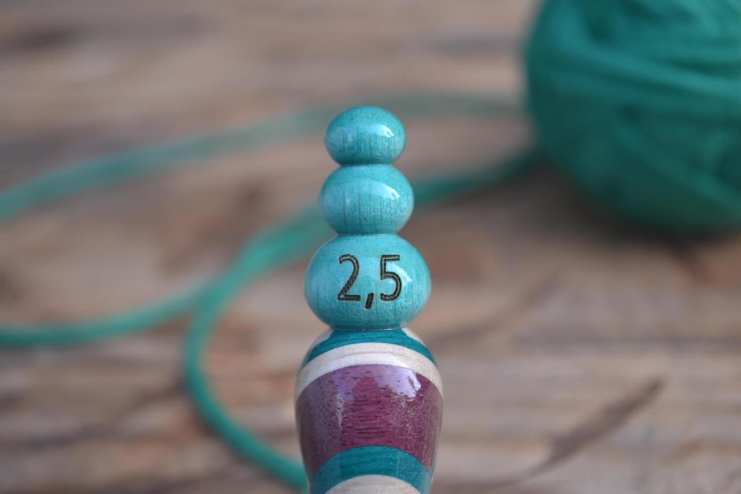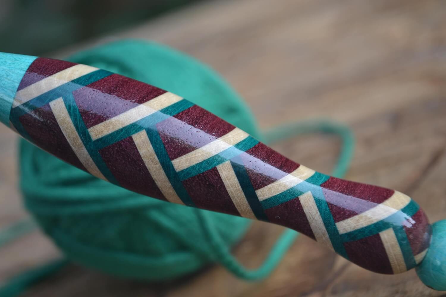 2.5 mm Tulip Gold, Purpleheart, White & Green Hornbeam wood mosaic Ergonomic Crochet Hook 21 mm 16.5 cm #1425-5115