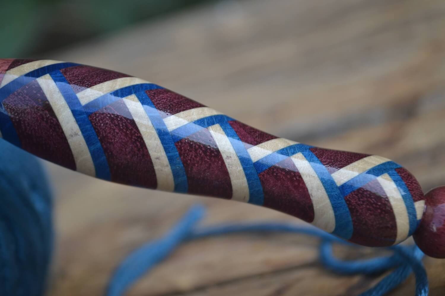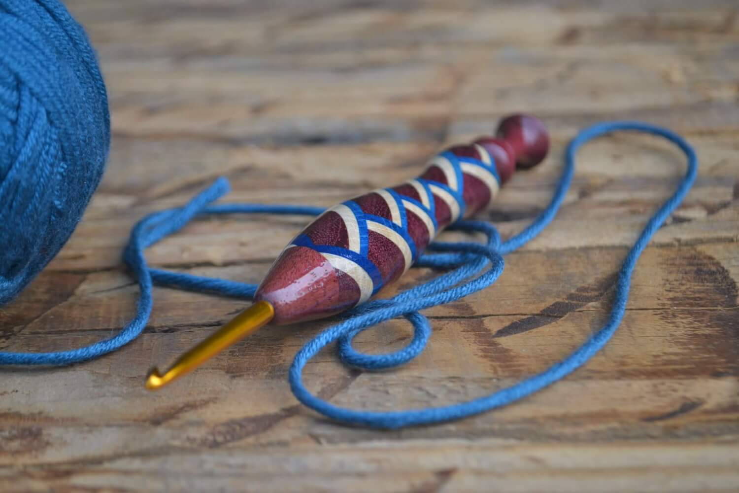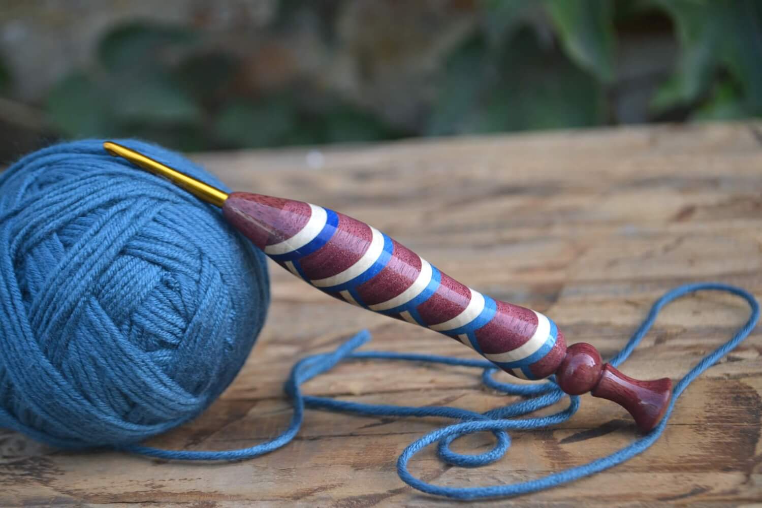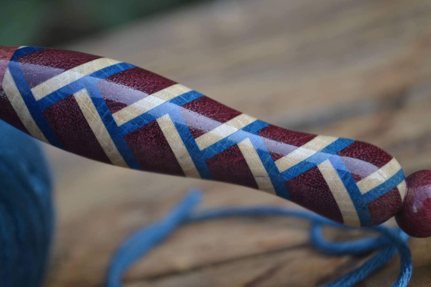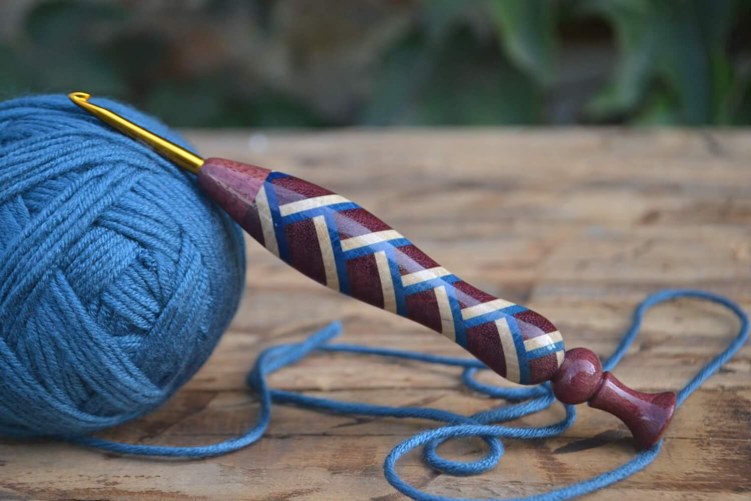 3.5 mm E Tulip Gold, Purpleheart, White & Blue Hornbeam wood mosaic Ergonomic Crochet Hook 21 mm 16.5 cm #1426-5116