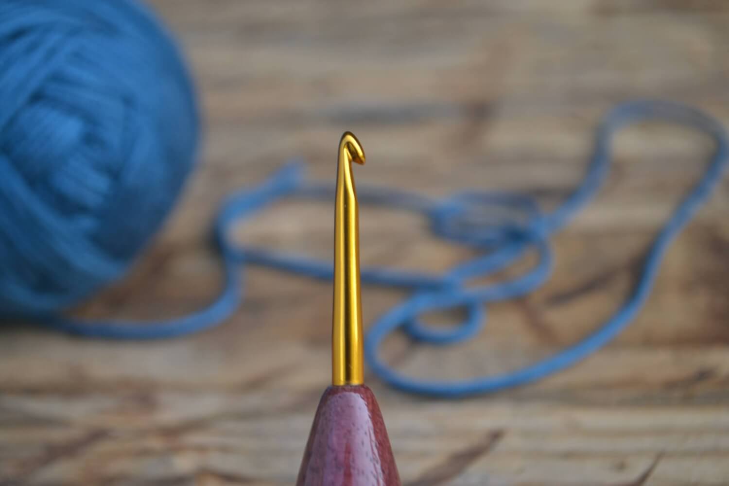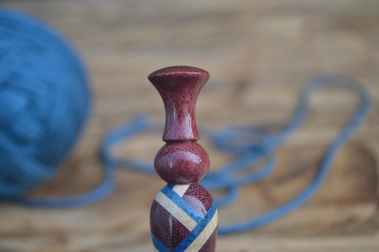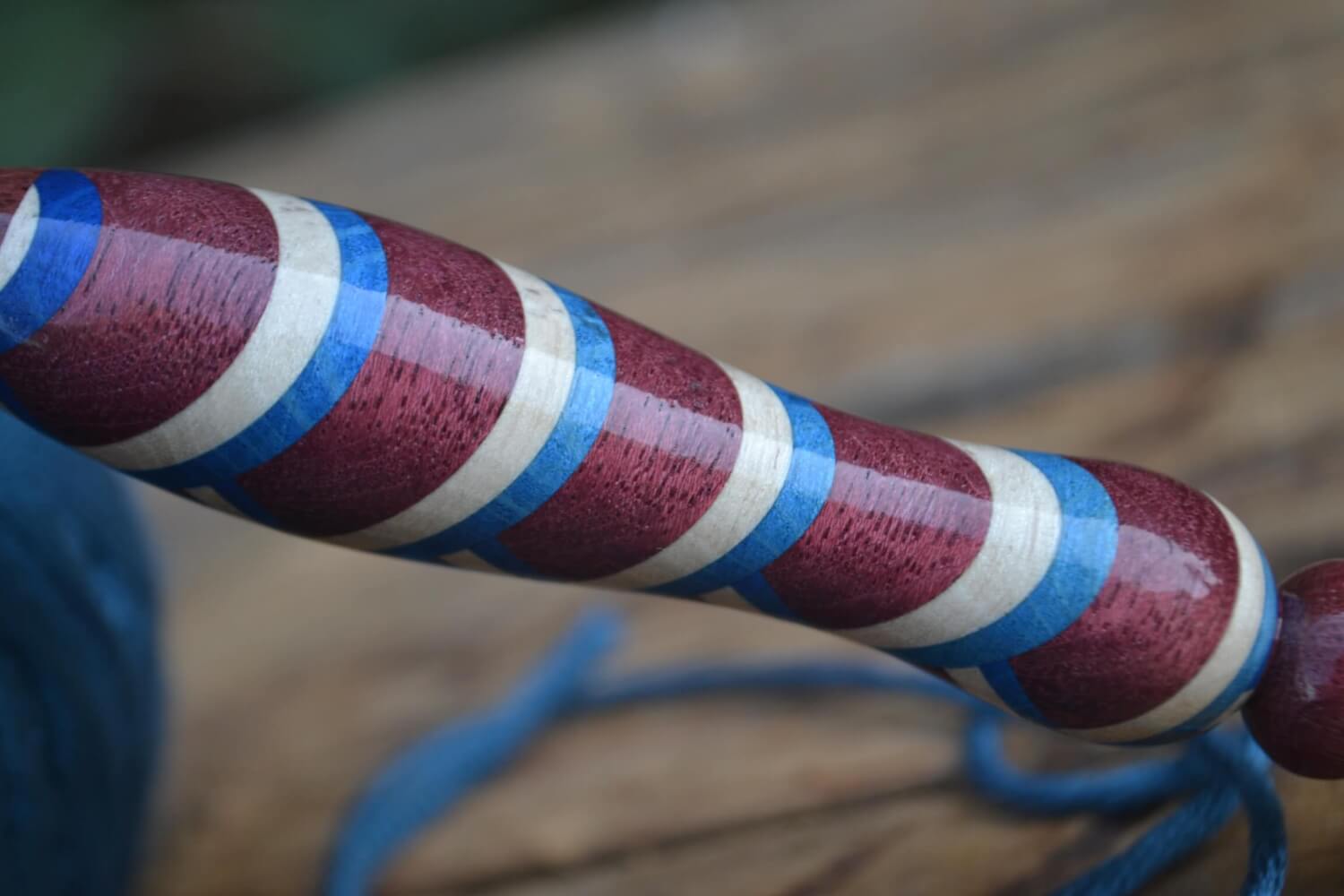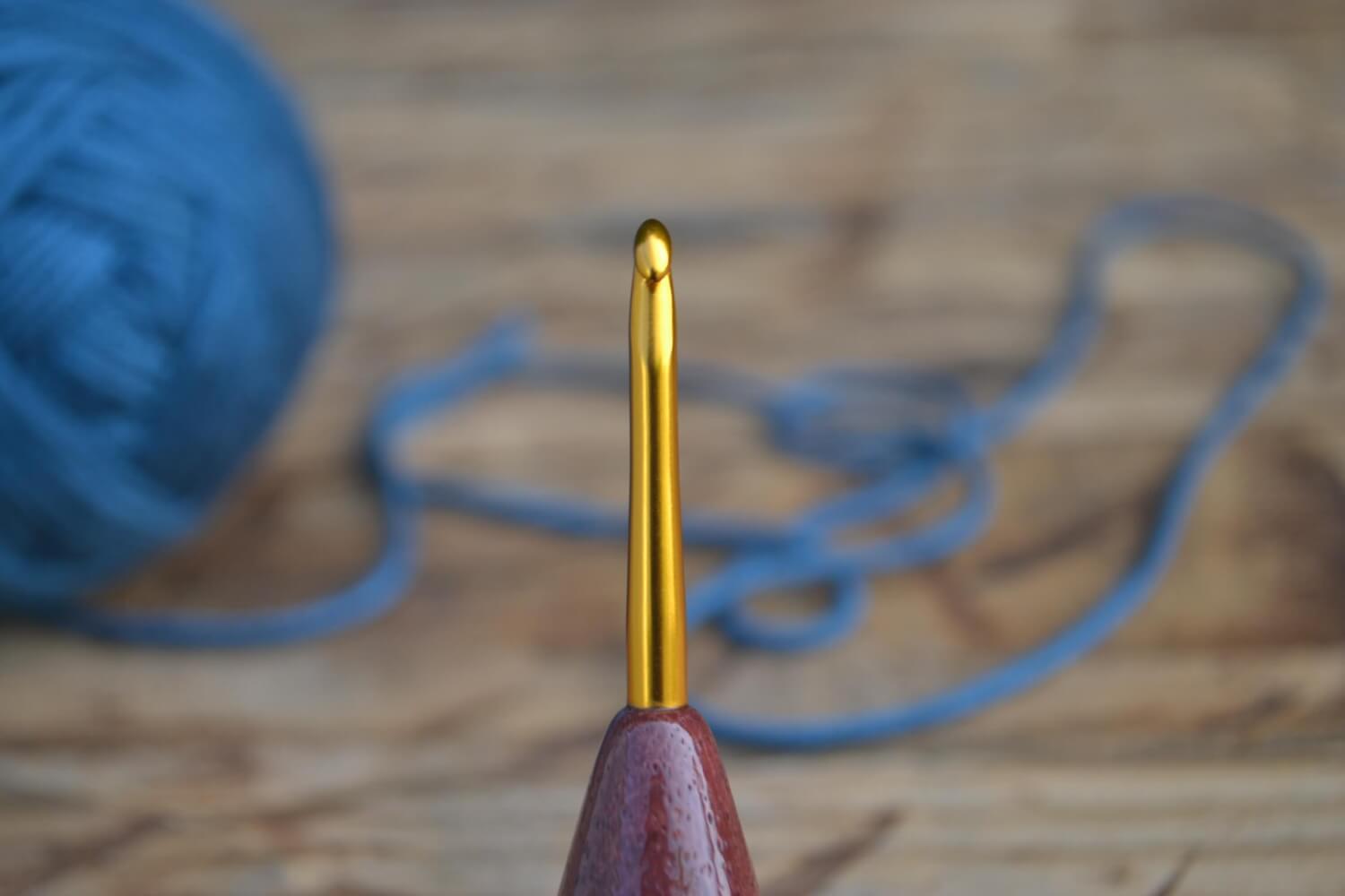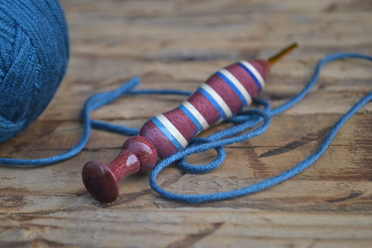 3.5 mm E Tulip Gold, Purpleheart, White & Blue Hornbeam wood mosaic Ergonomic Crochet Hook 21 mm 16.5 cm #1426-5116