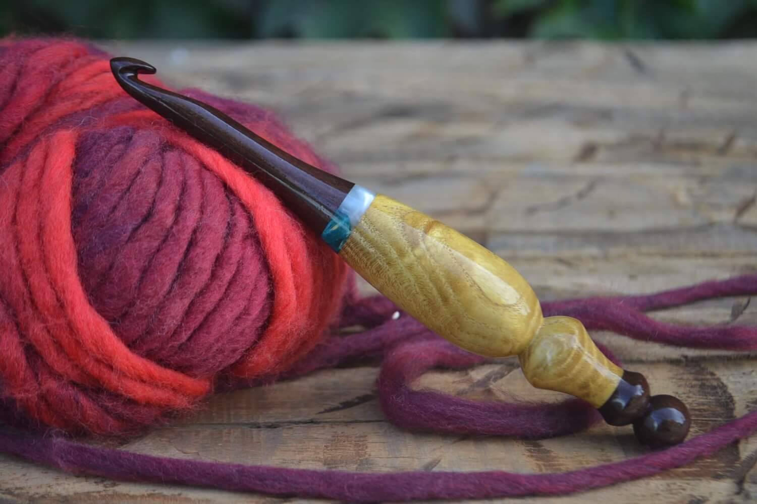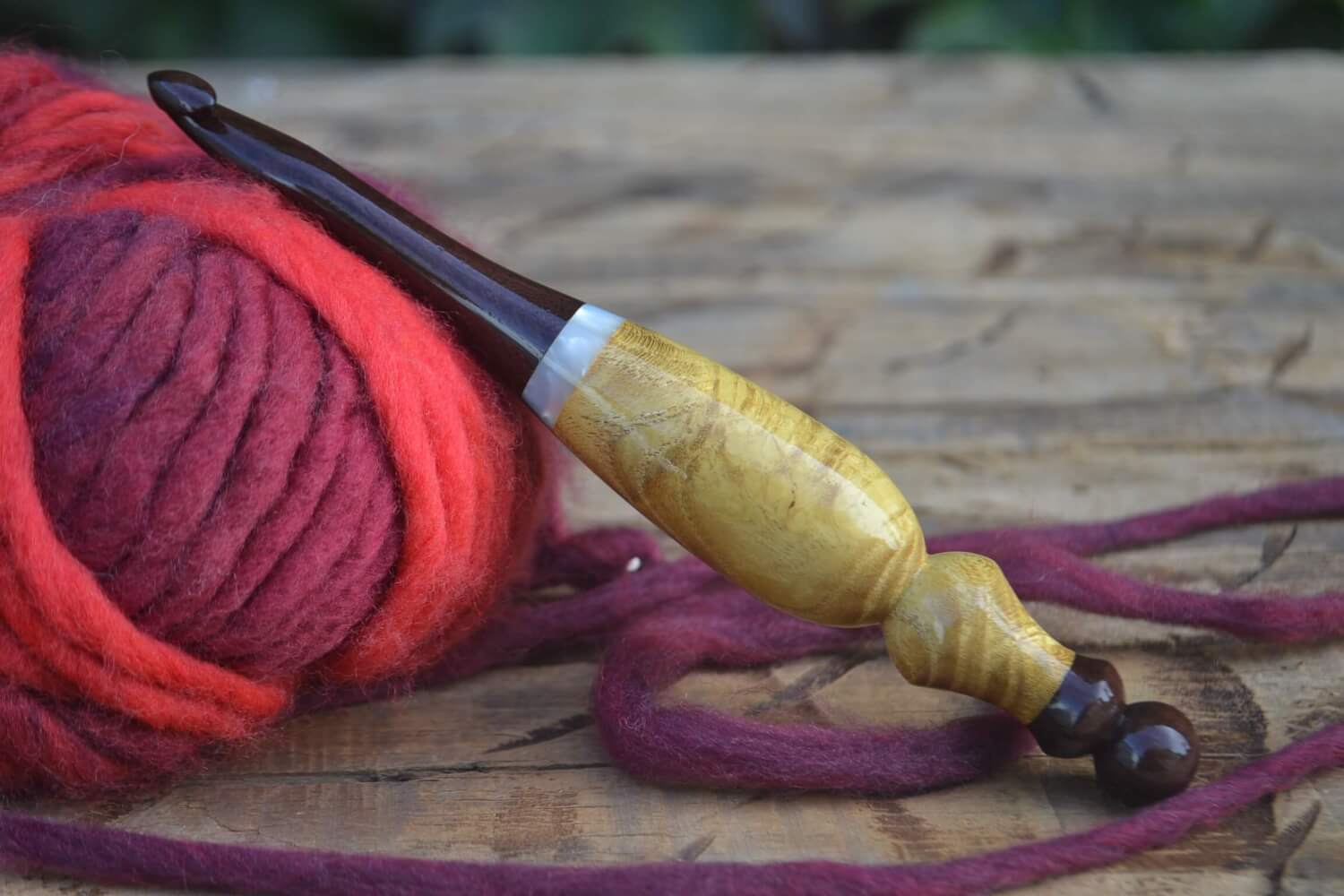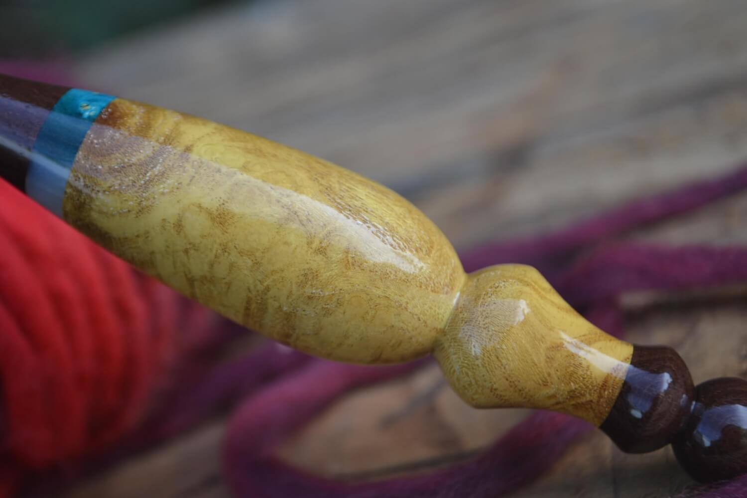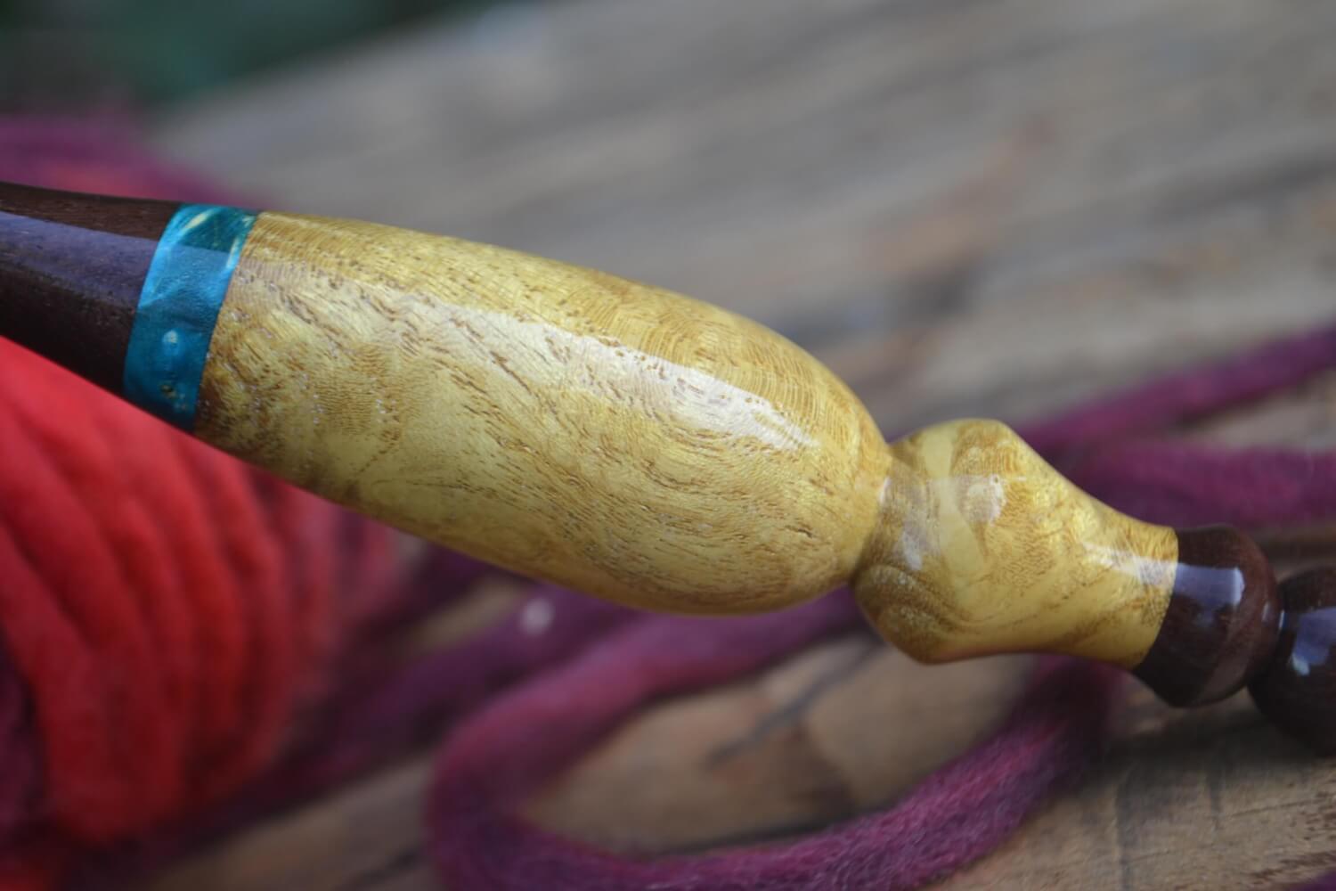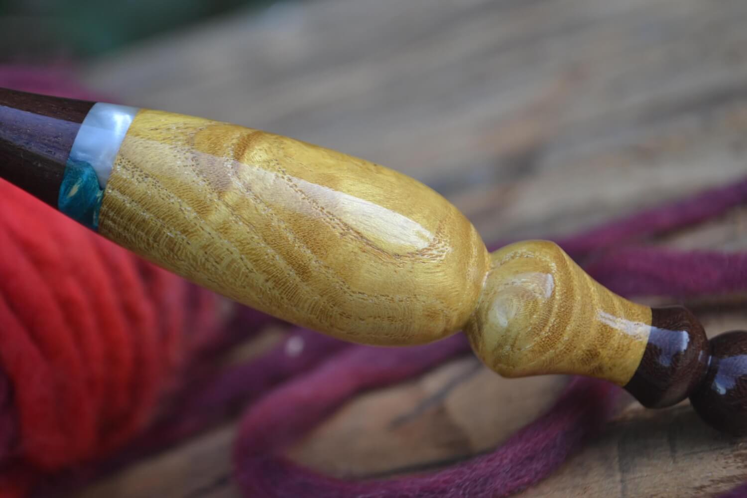 9 mm M Katalox, Stab. Burl wood, Mulberry Curly wood Ergonomic Crochet Hook 24 mm 16.5 cm #1430-5120