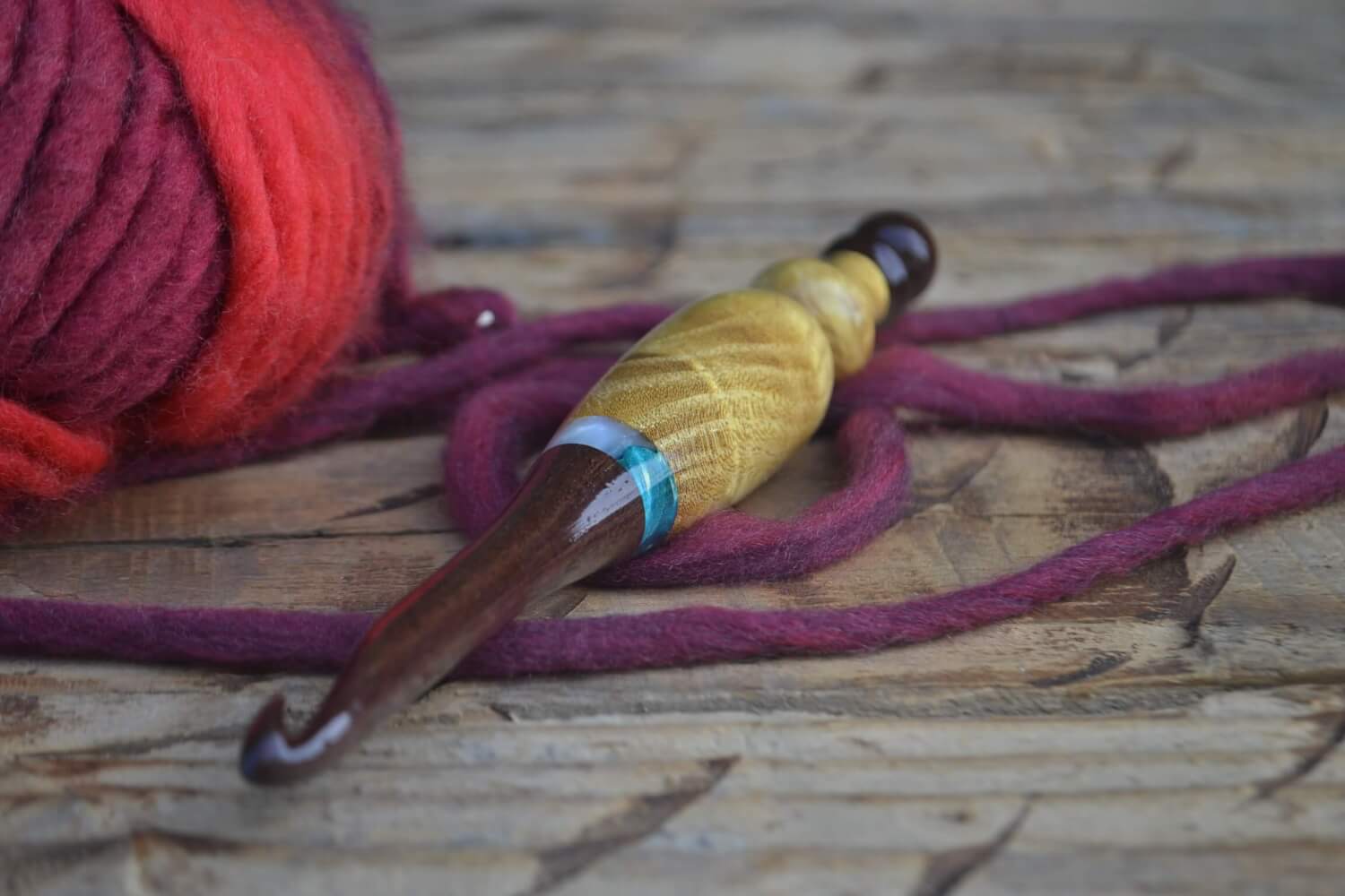 4.5 mm size 7 Purpleheart/ Box Elder Stab. Curly/ Burl wood, Mulberry Curly wood Ergonomic Crochet Hook 24 mm 16.5 cm #839-4529
