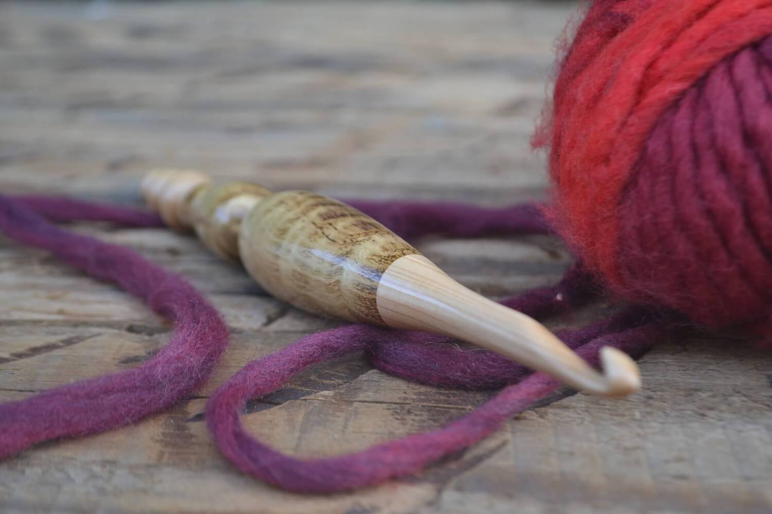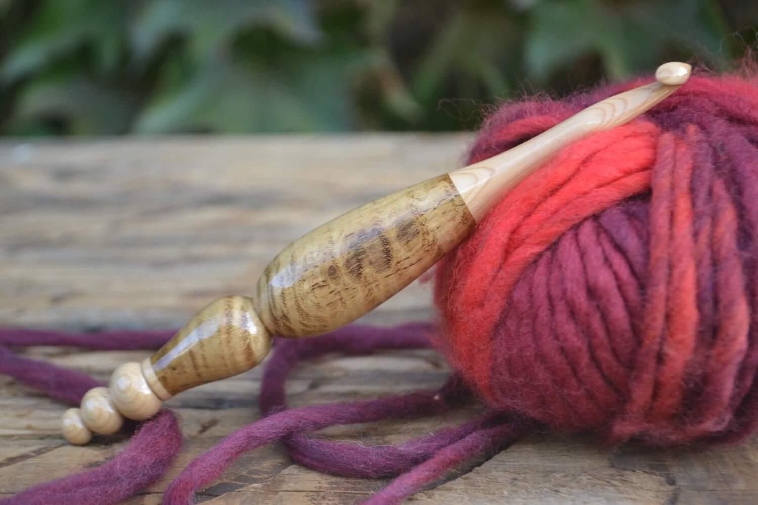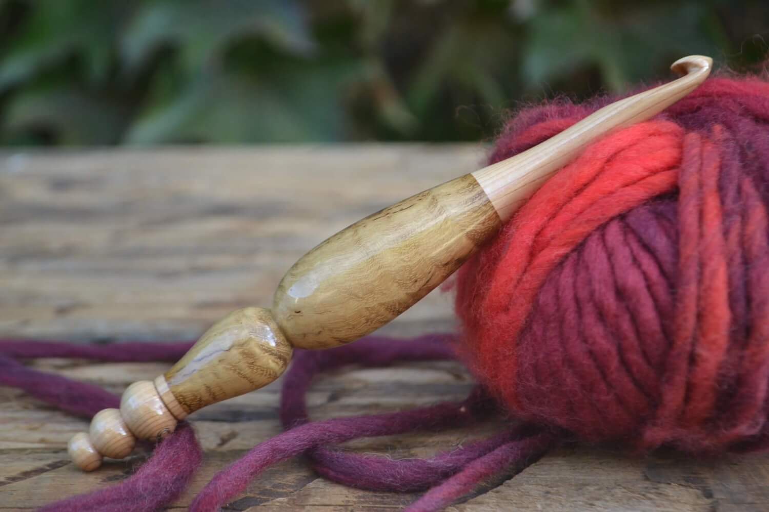 12 mm Lilac/ Box Elder Stab. Curly/ Burl, Mulberry Curly and Burl wood Ergonomic Crochet Hook 23 mm 17 cm #729-4419