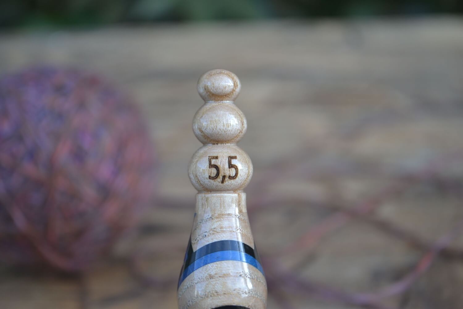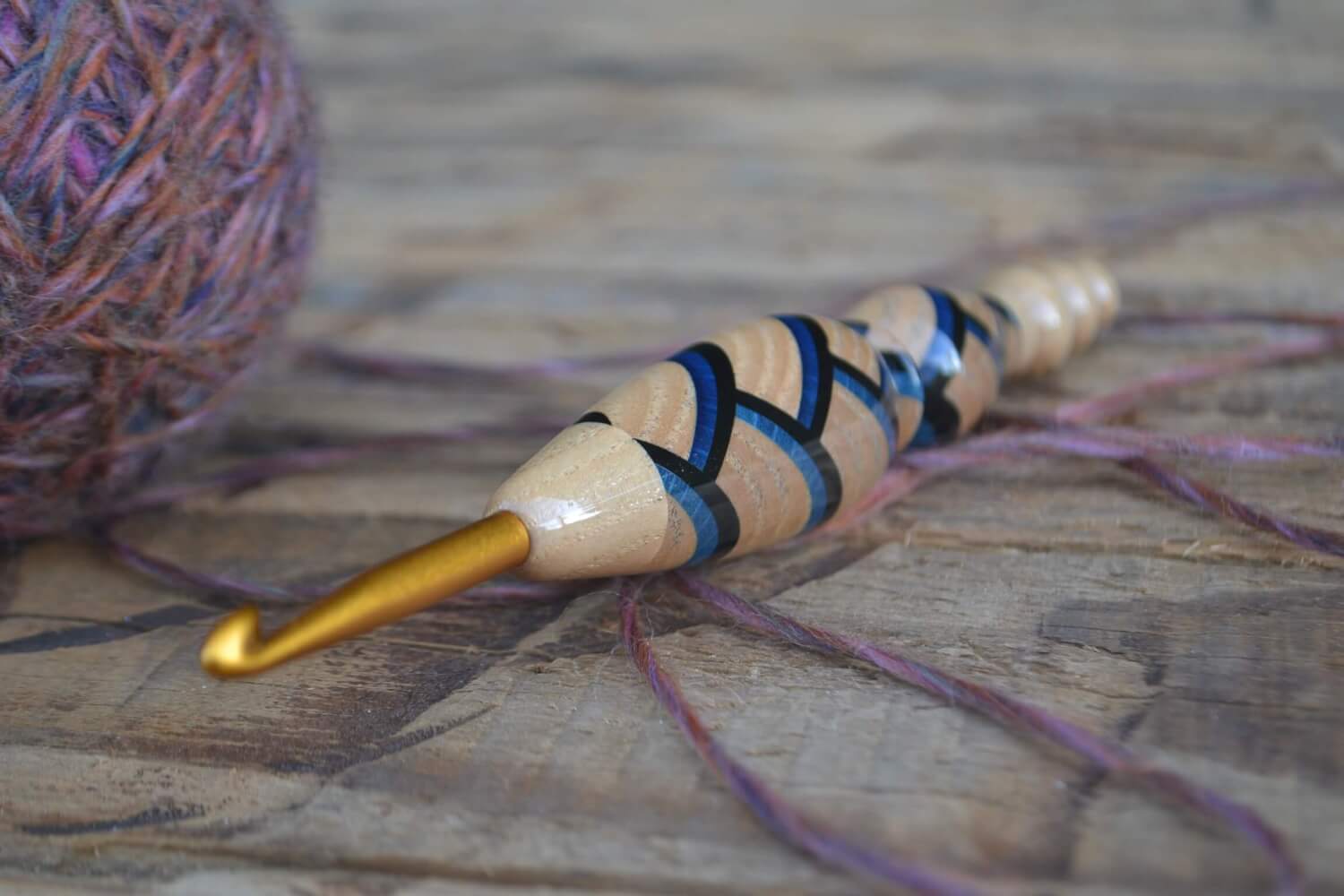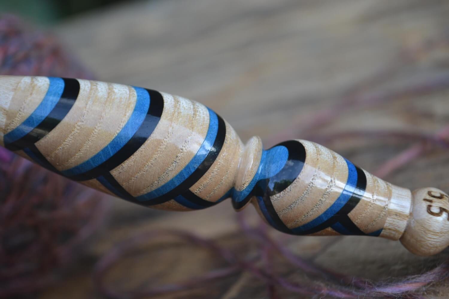 5.5 mm I Clover Soft Touch, Ash/ Black & Blue Hornbeam wood mosaic Ergonomic Crochet Hook 23 mm 17 cm #1435-5125