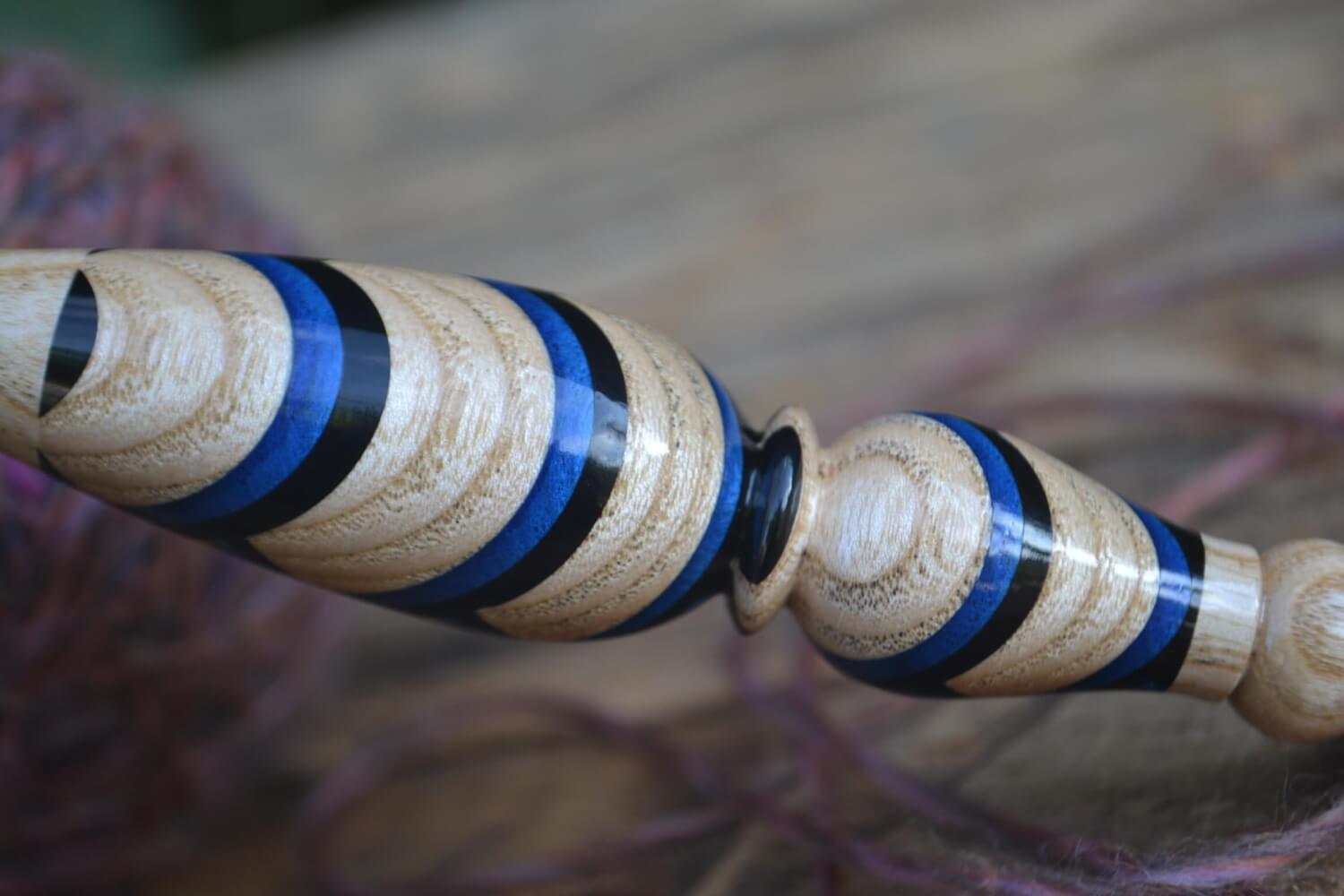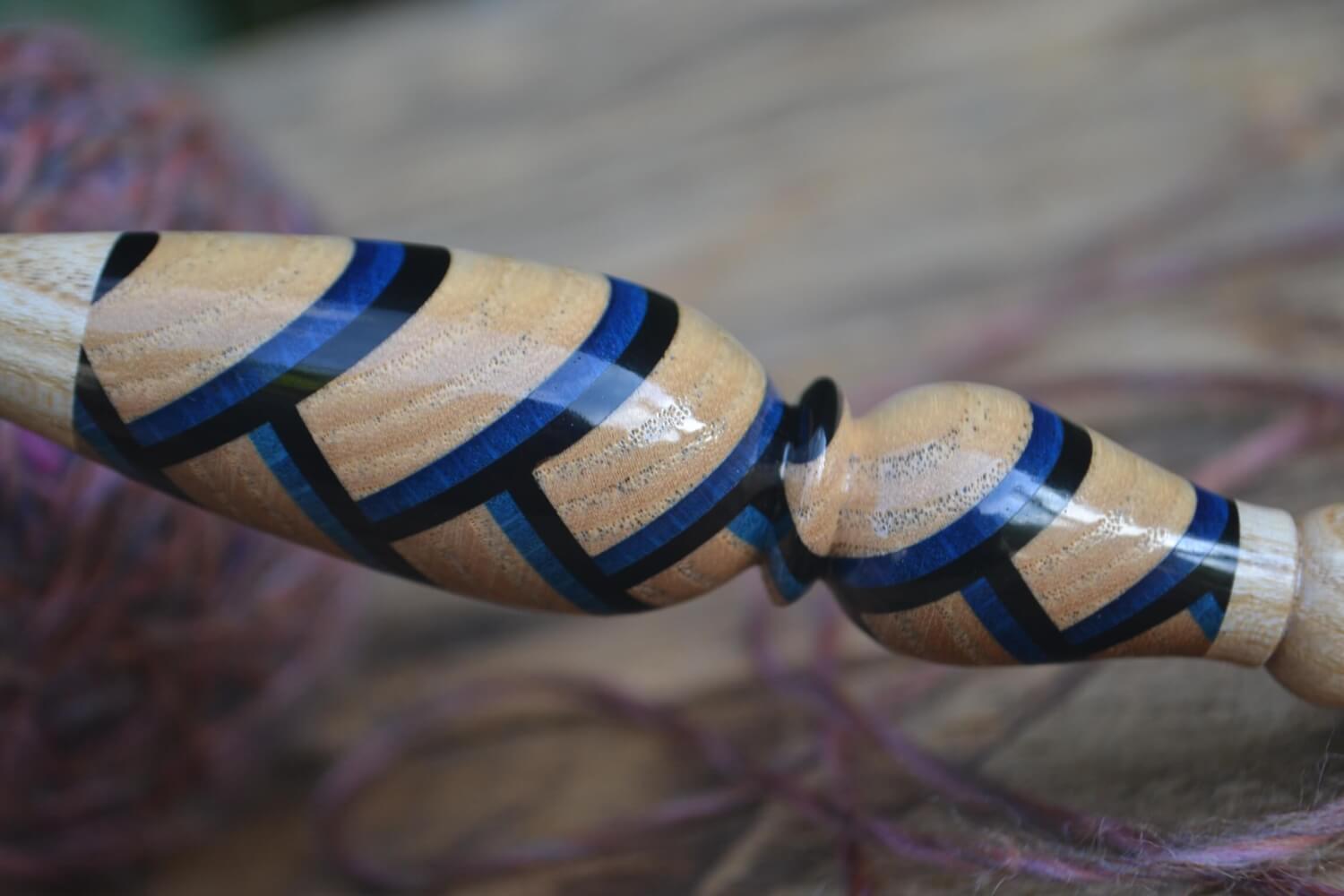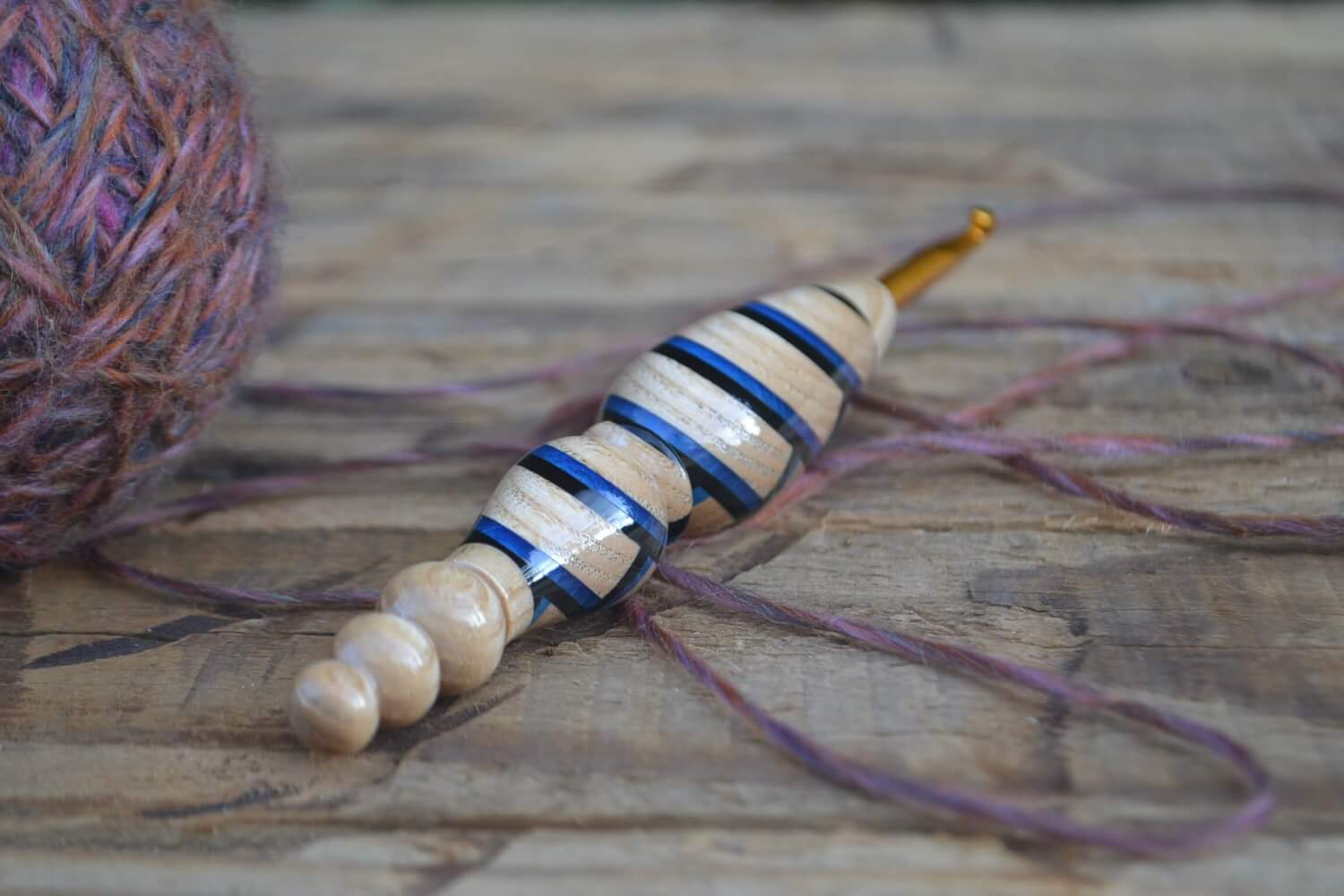 5.5 mm I Clover Soft Touch, Ash/ Black & Blue Hornbeam wood mosaic Ergonomic Crochet Hook 23 mm 17 cm #1435-5125