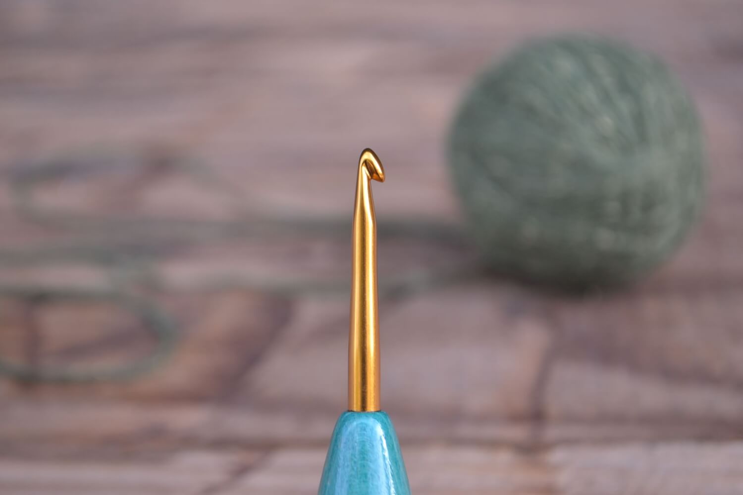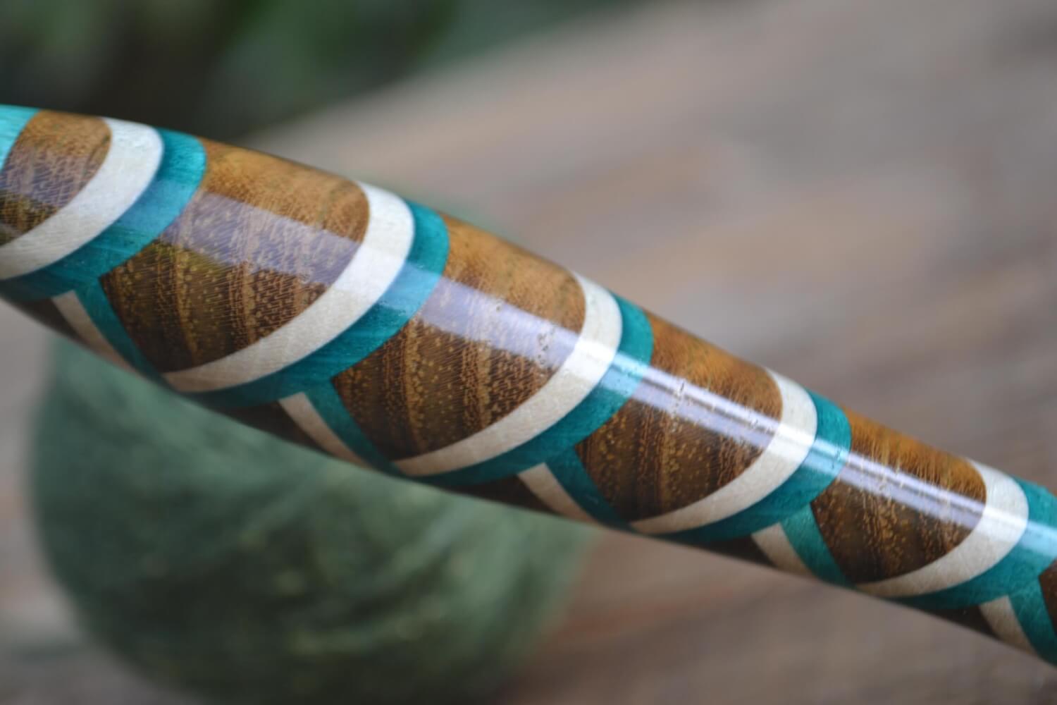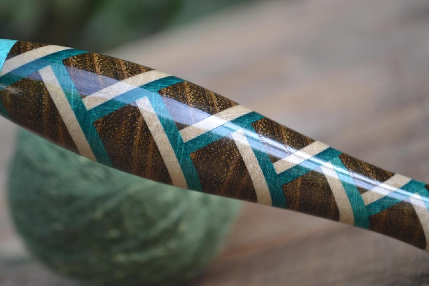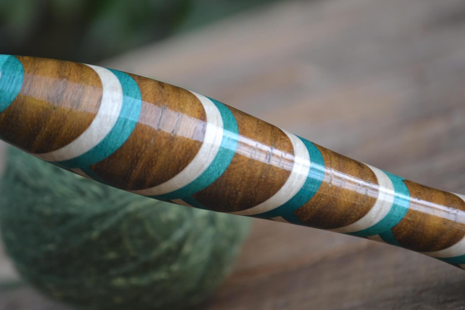 3.5 mm E Tulip Gold, Robinia/ Green & White Hornbeam wood mosaic Ergonomic Crochet Hook 21 mm 16.5 cm #1438-5128