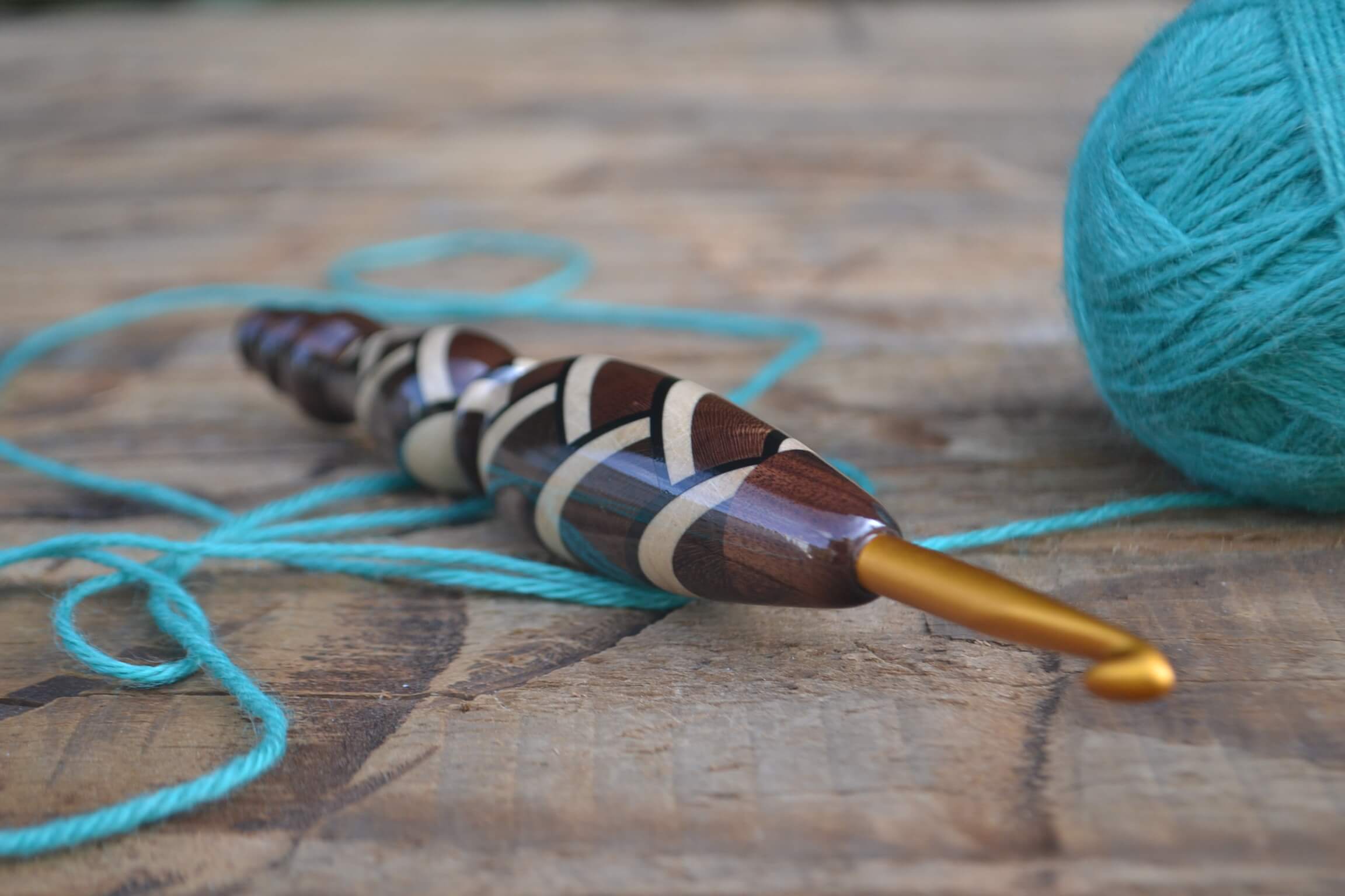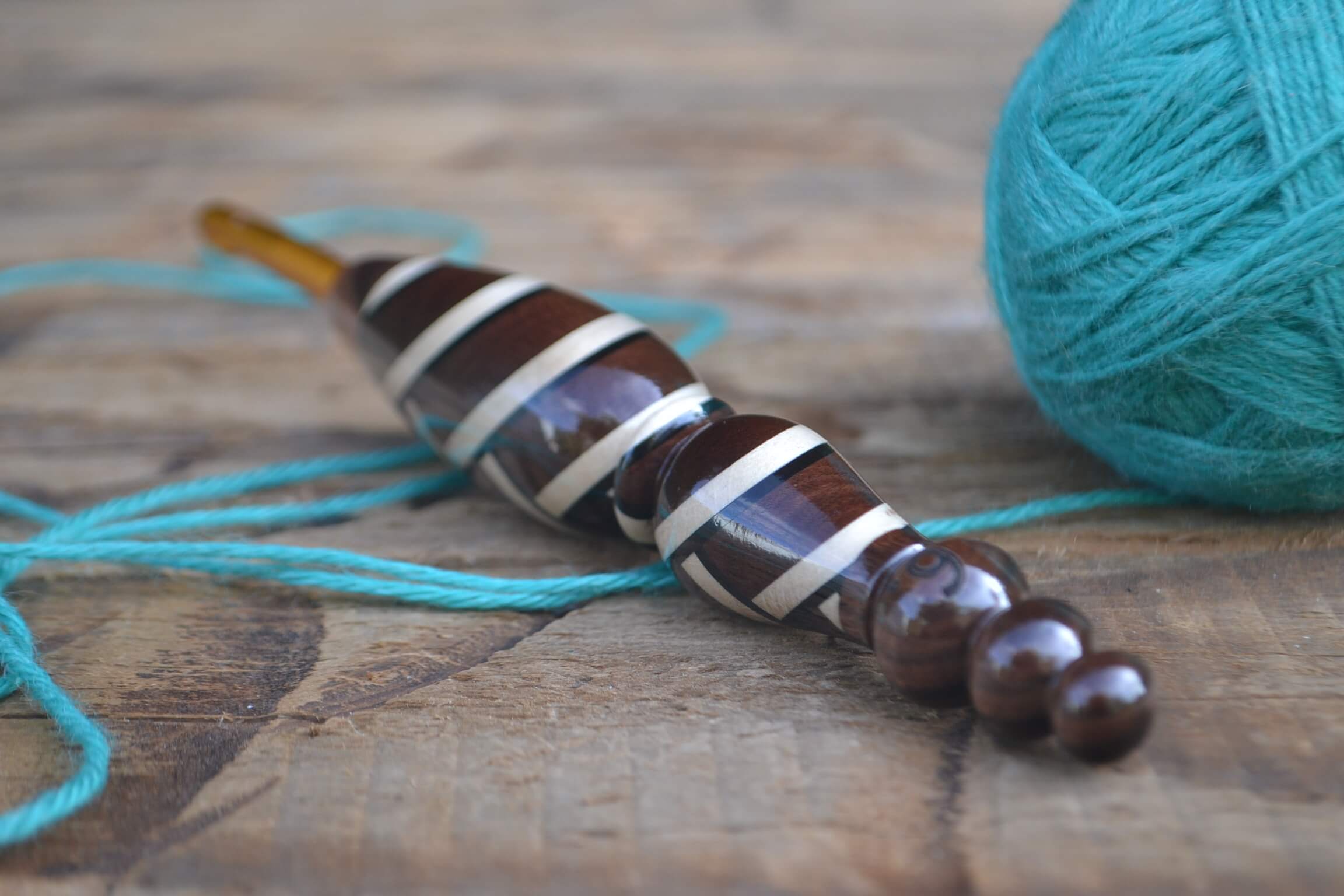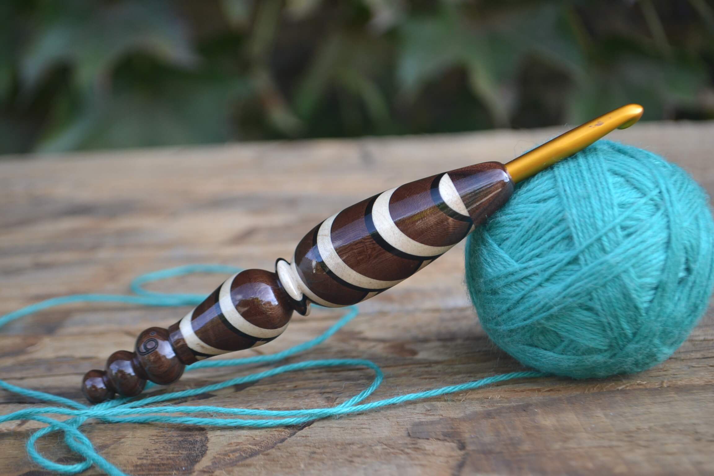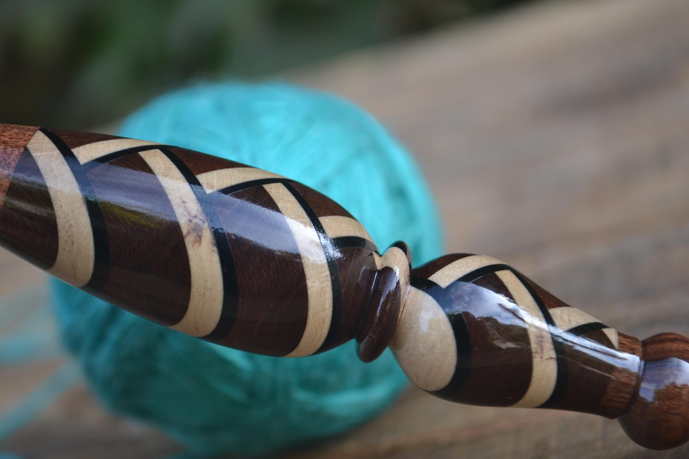 0,75 mm Clover Amour Purpleheart and Robinia/Hornbeam wood mosaic Ergonomic Crochet Hook 19 mm 15 cm #1140-4830