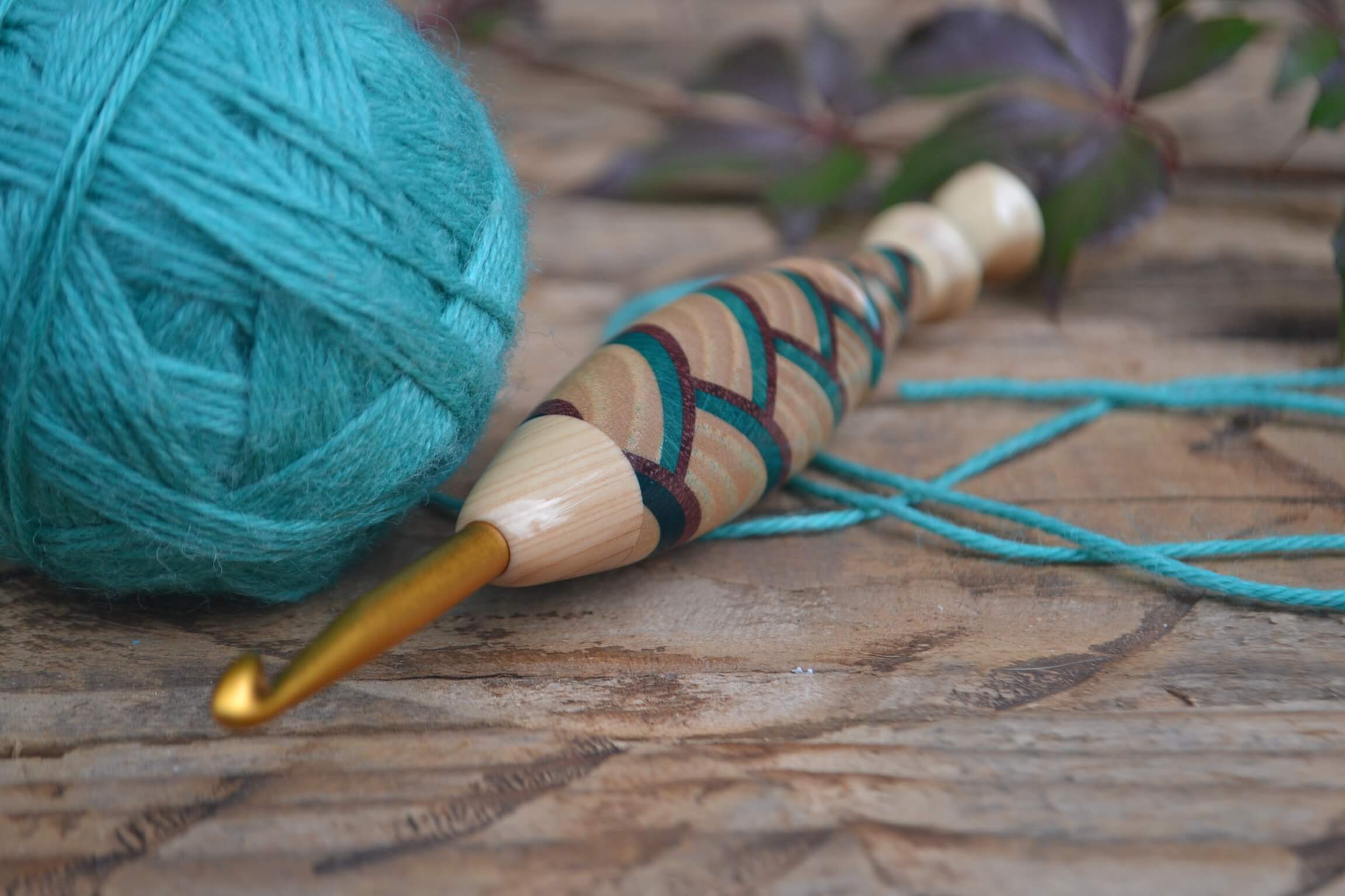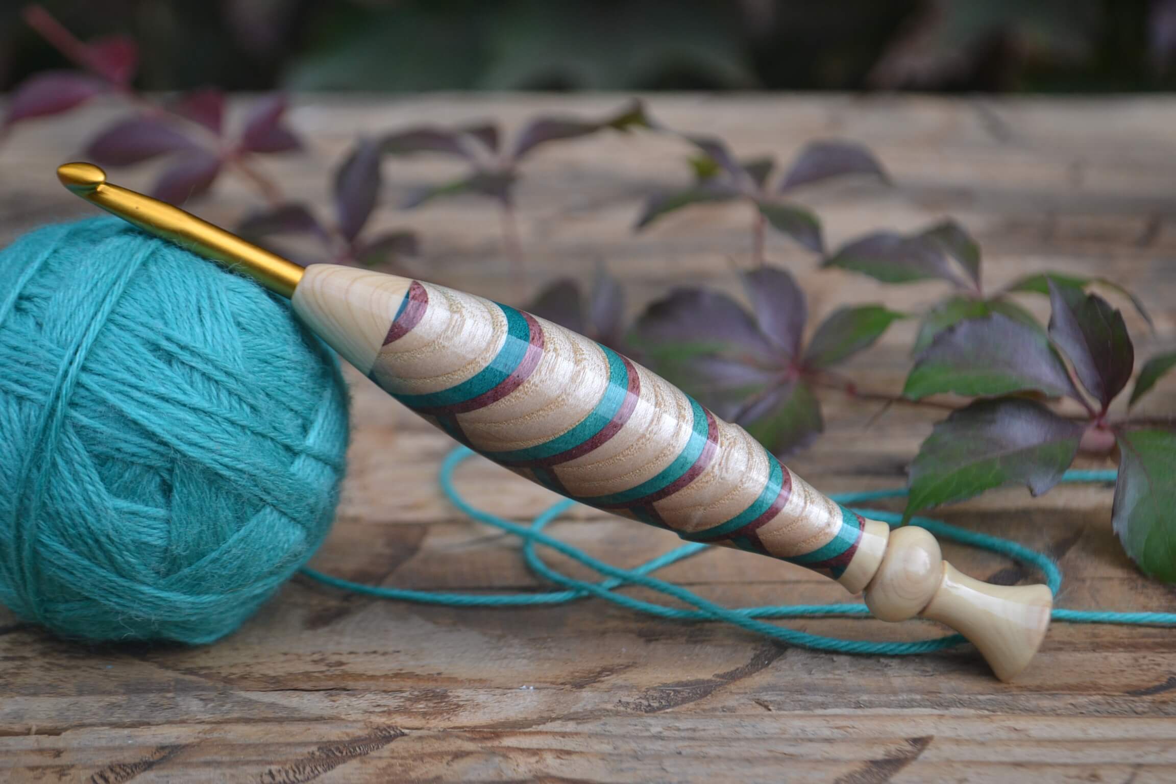 7.5 mm Black Hornbeam, Mosaic Robinia/Apricot/Hornbeam wood Ergonomic Crochet Hook 24 mm 17 cm # 1042-4732