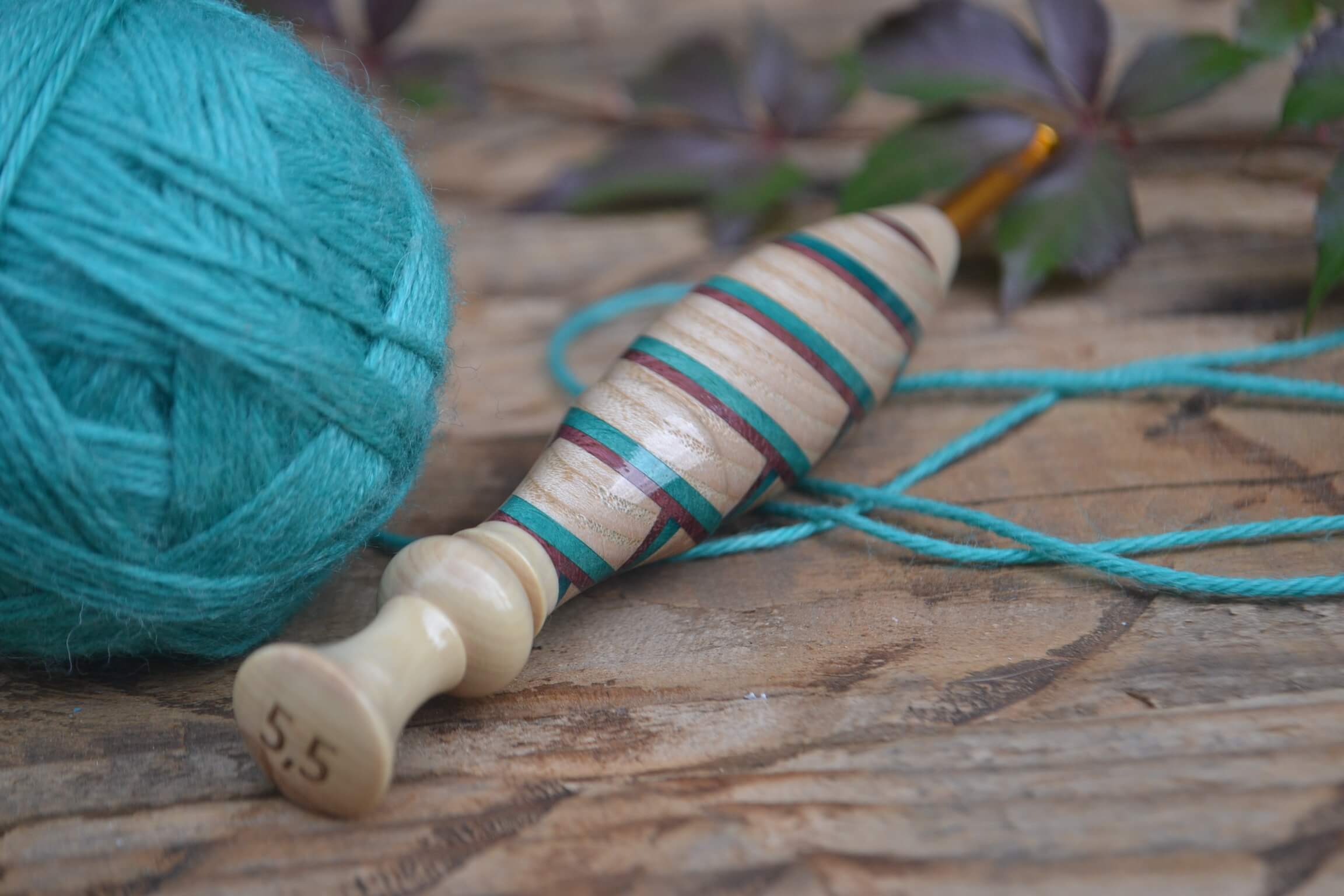 5.5 mm I Clover Soft Touch, Lilac, Ash, Green Hornbeam, Purpleheart wood mosaic Ergonomic Crochet Hook 23 mm 17 cm #1442-5132