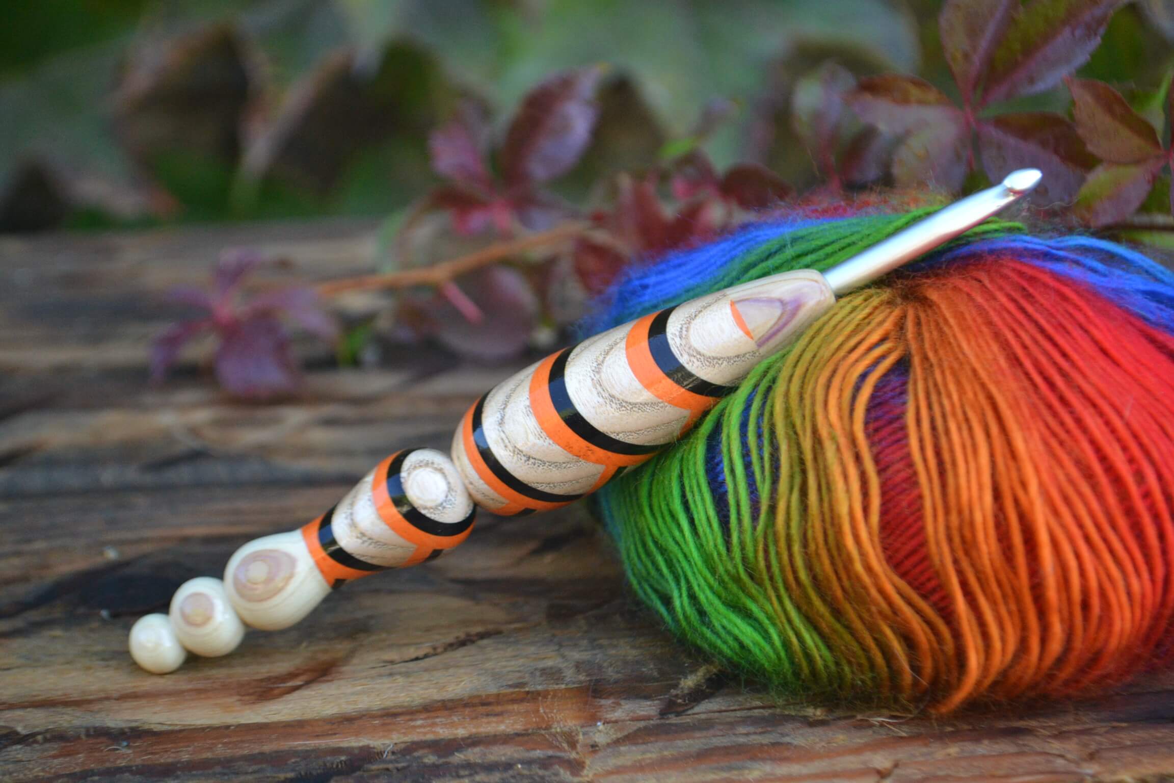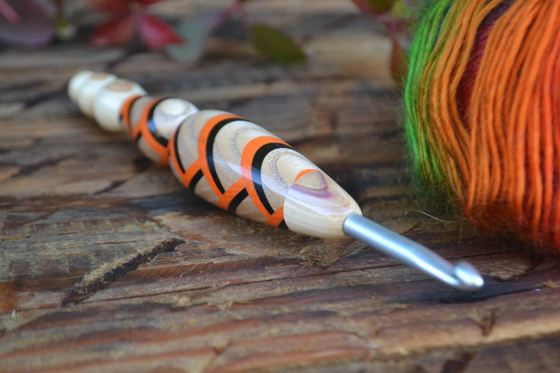 5.5 mm I Clover Amour, Lilac, Ash, Black & Orange Hornbeam wood mosaic Ergonomic Crochet Hook 23 mm 17.5 cm #1445-5135