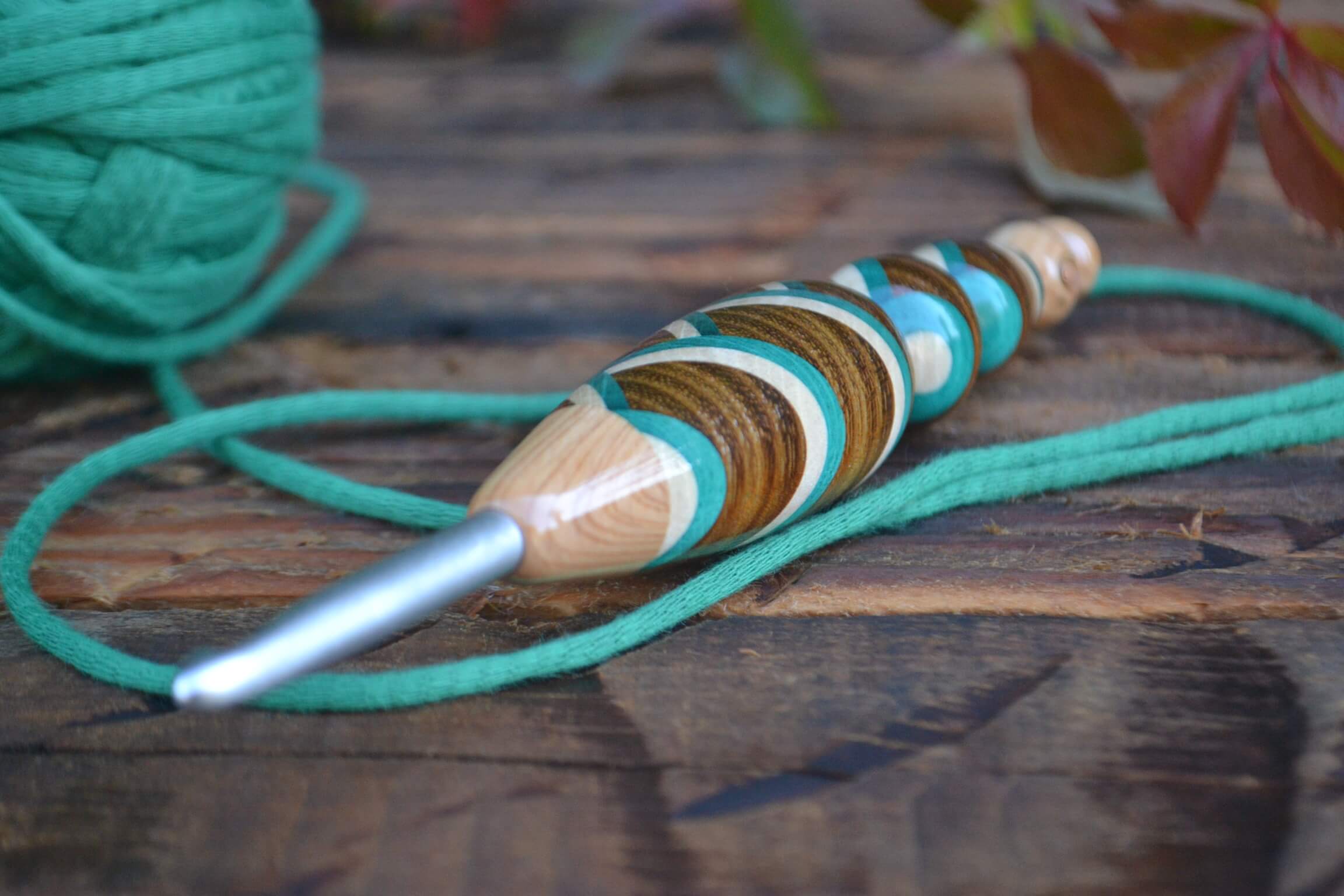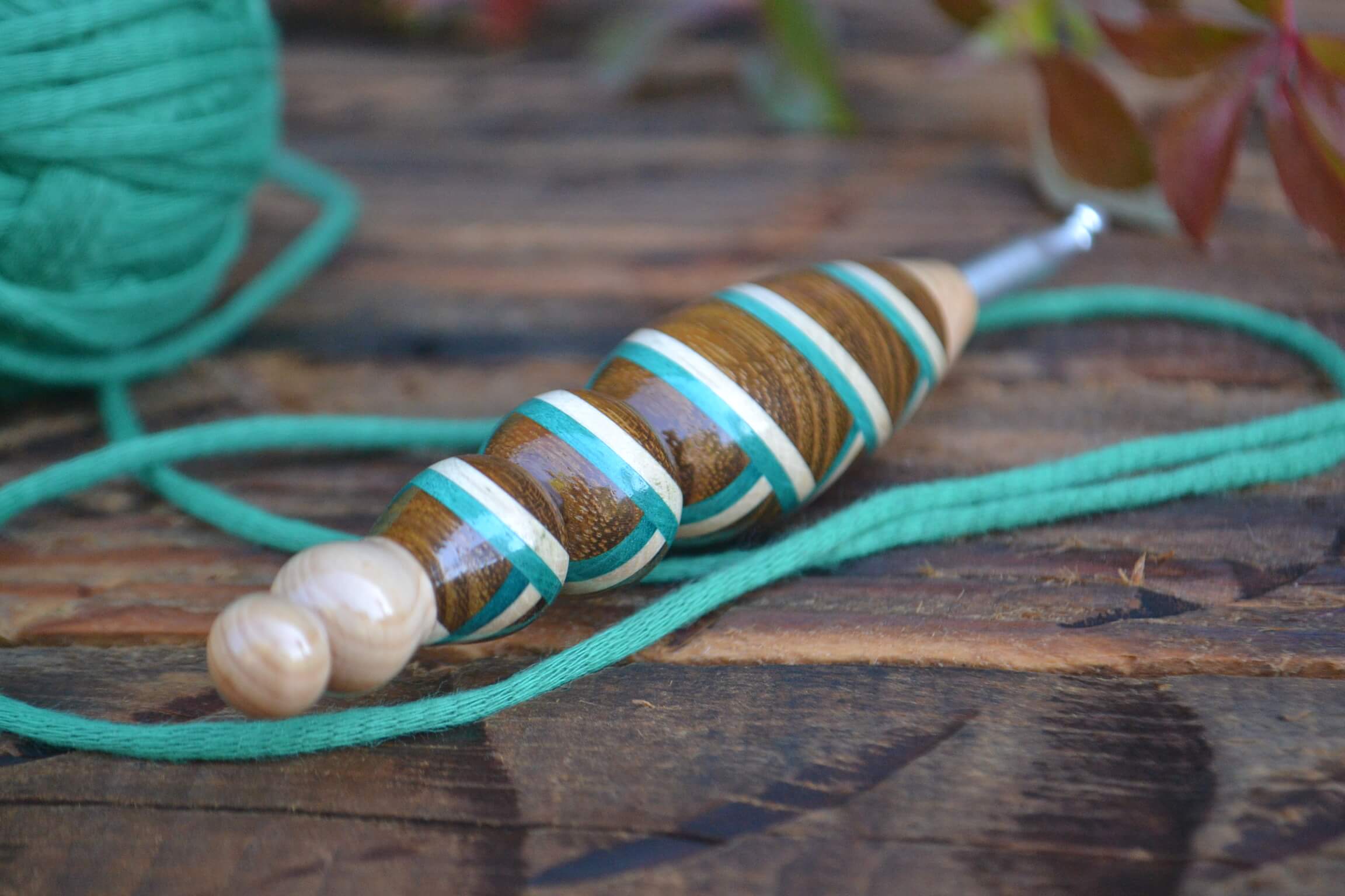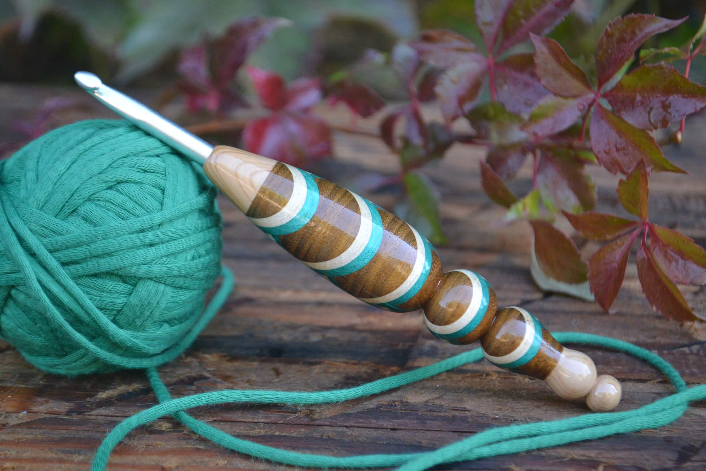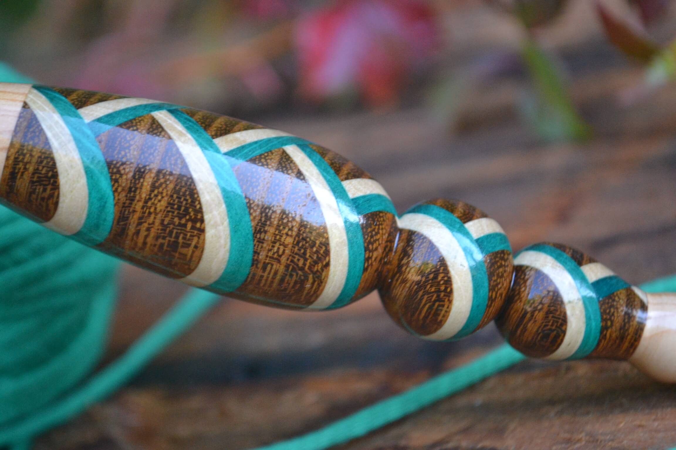 6 mm J Clover Amour, Lilac, Robinia/ Green & White Hornbeam wood mosaic Ergonomic Crochet Hook 23 mm 17 cm #1447-5137