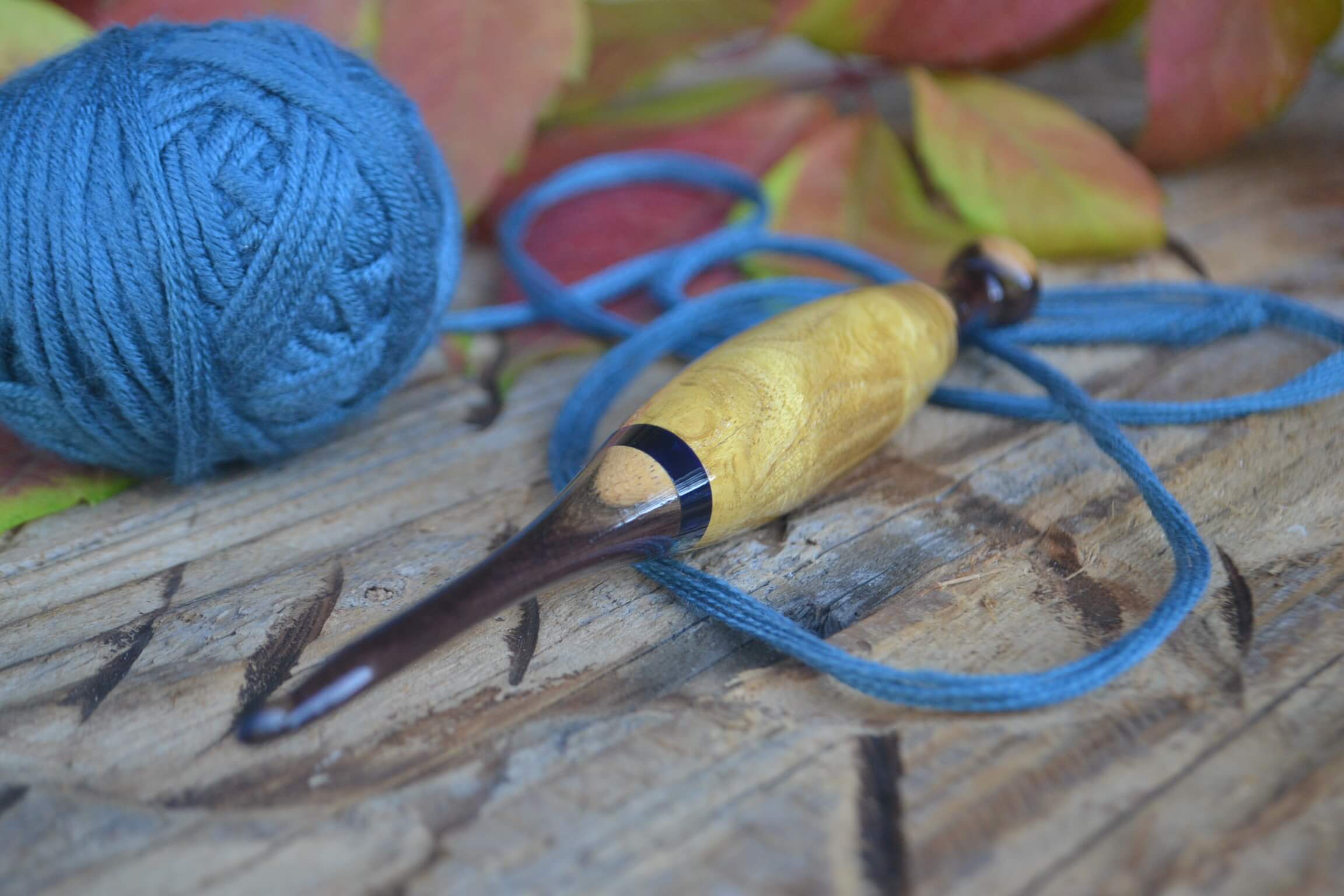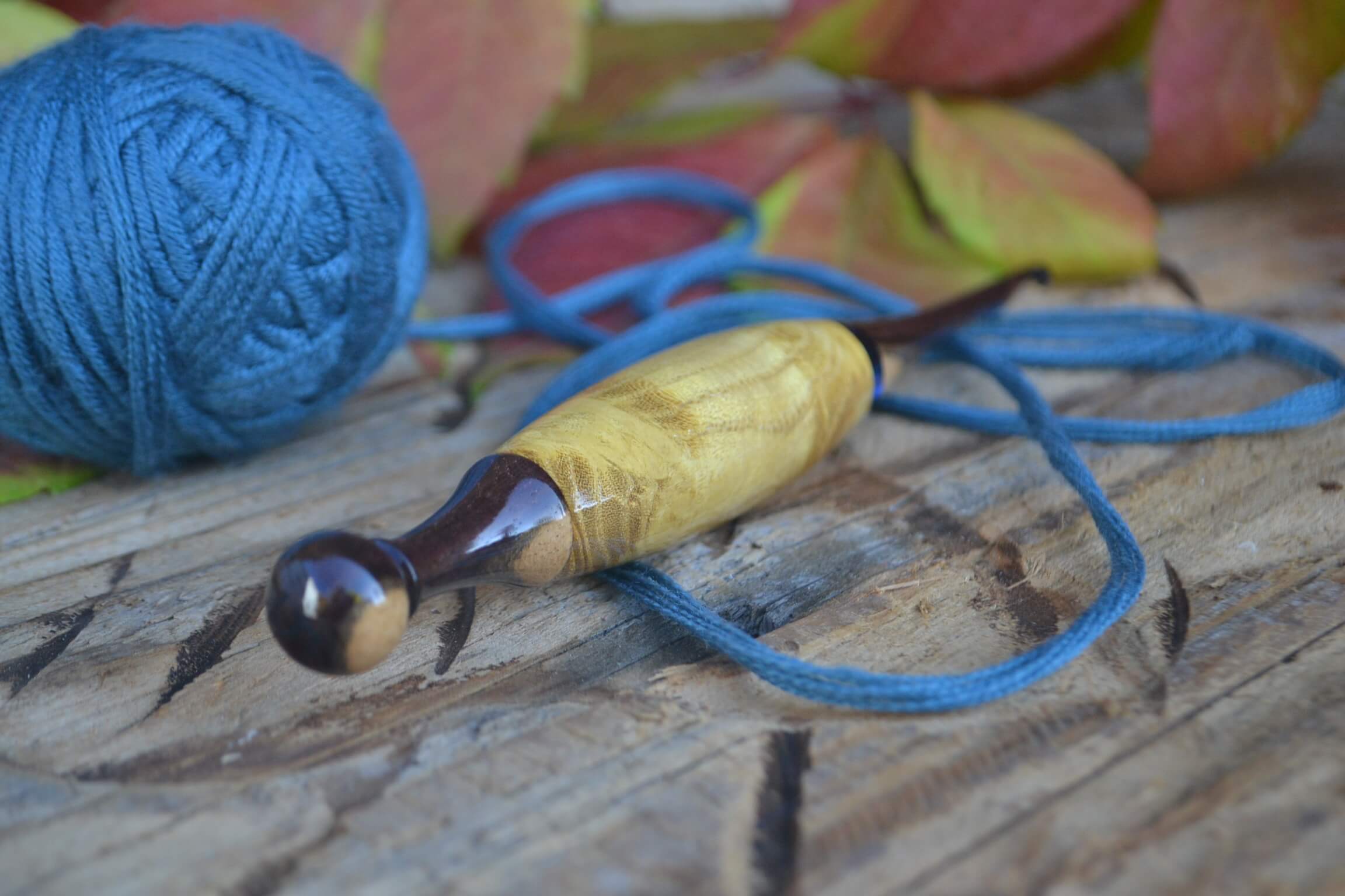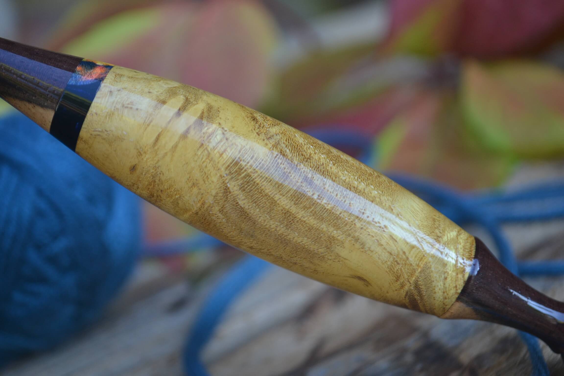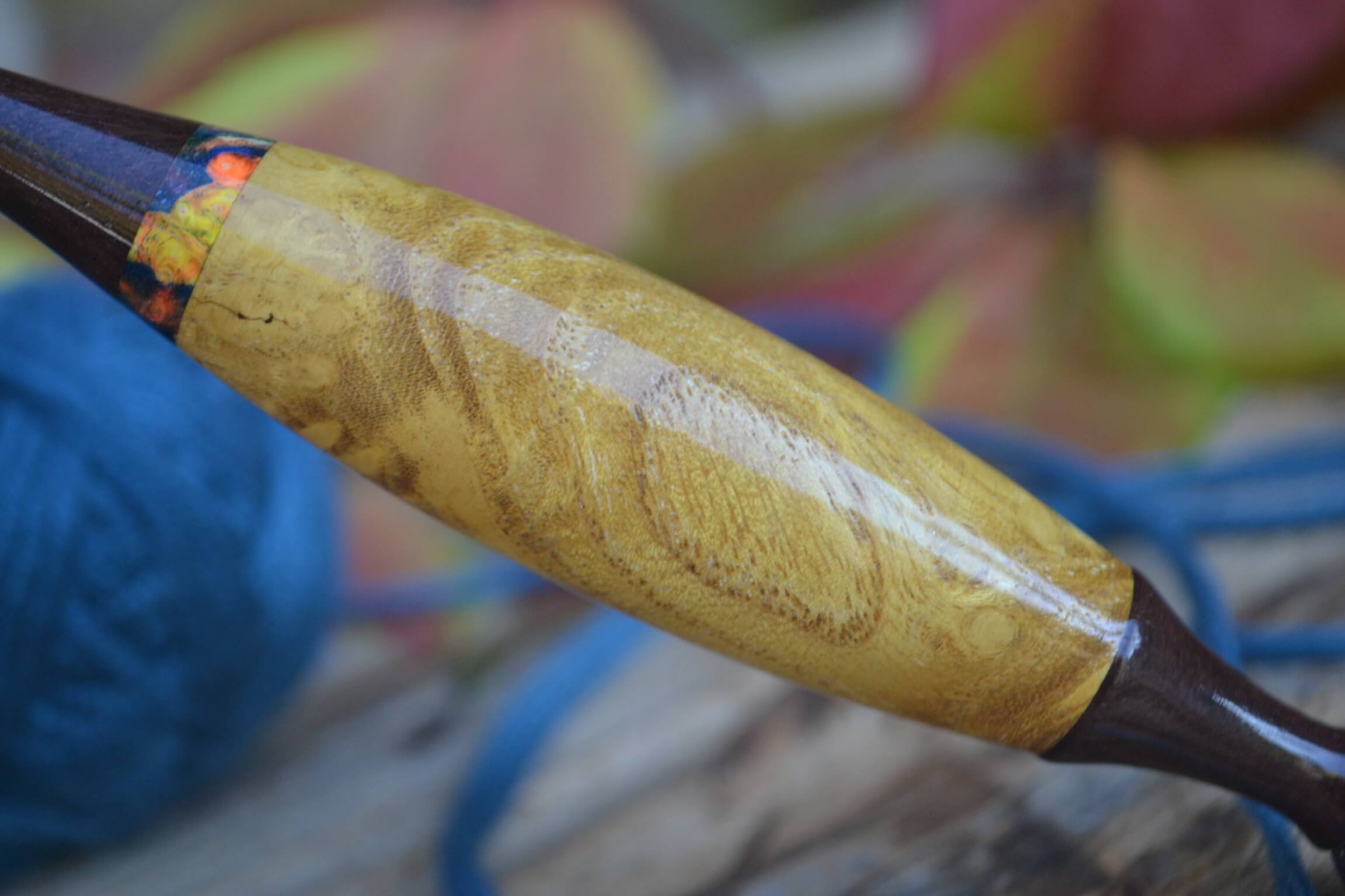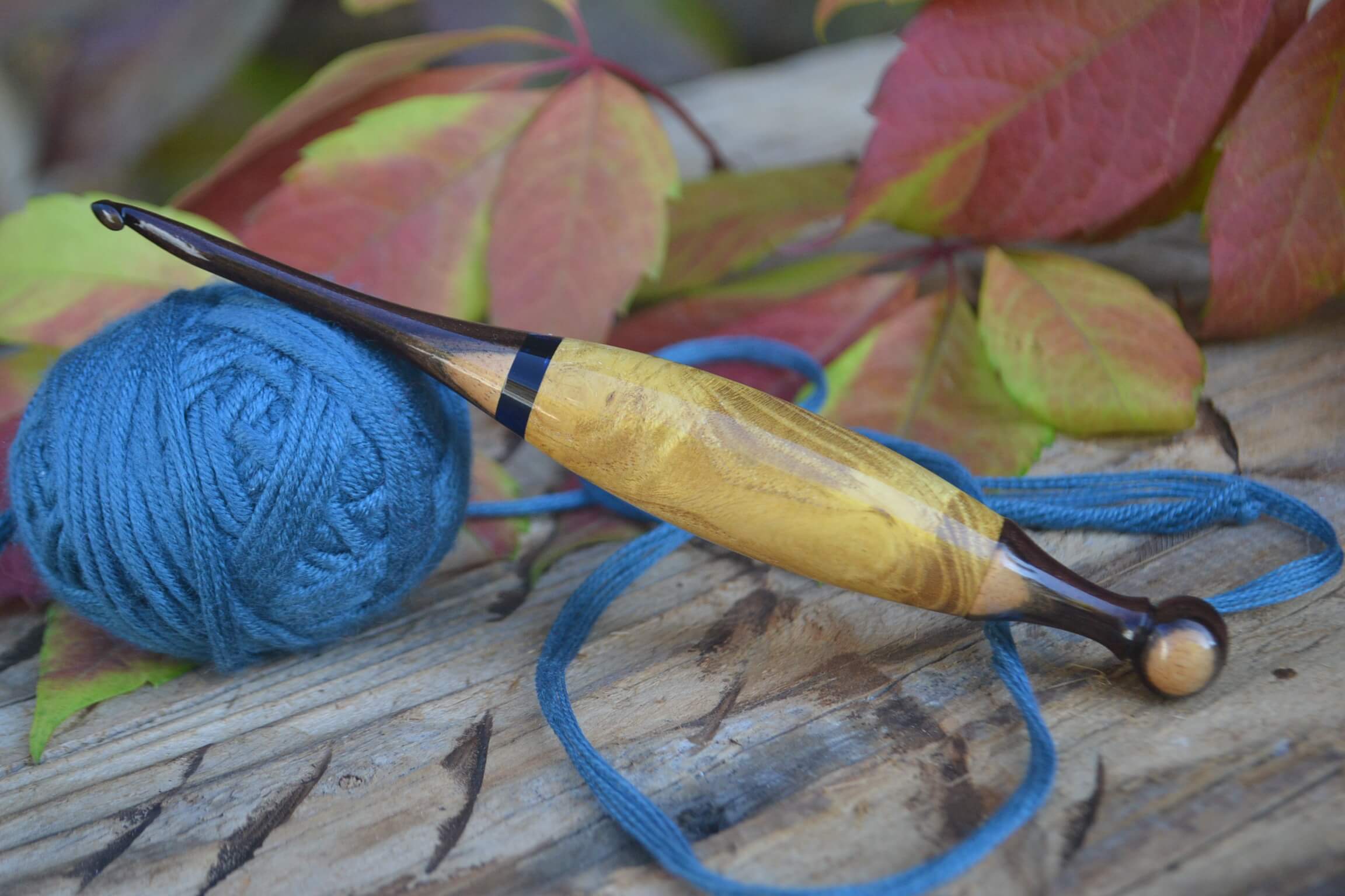 5 mm H Katalox, Stab. Burl/ Hybrid wood, Curly Mulberry wood Ergonomic Crochet Hook 22 mm 16.5 cm #1454-5144