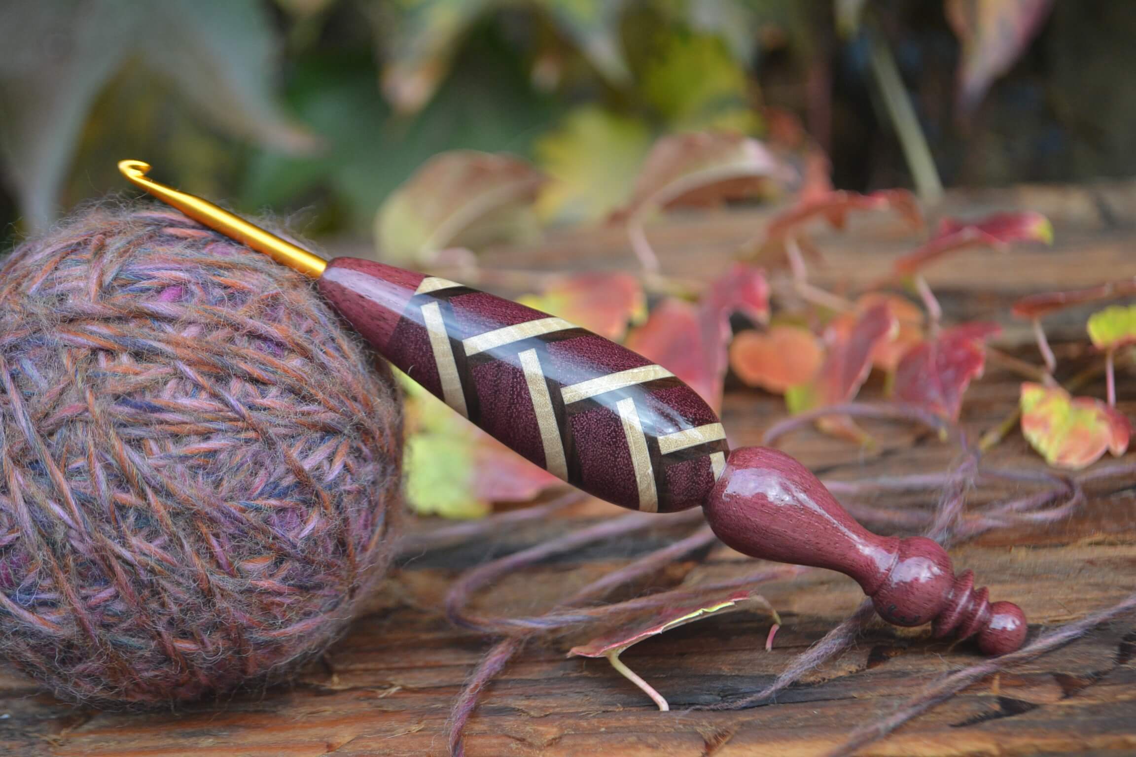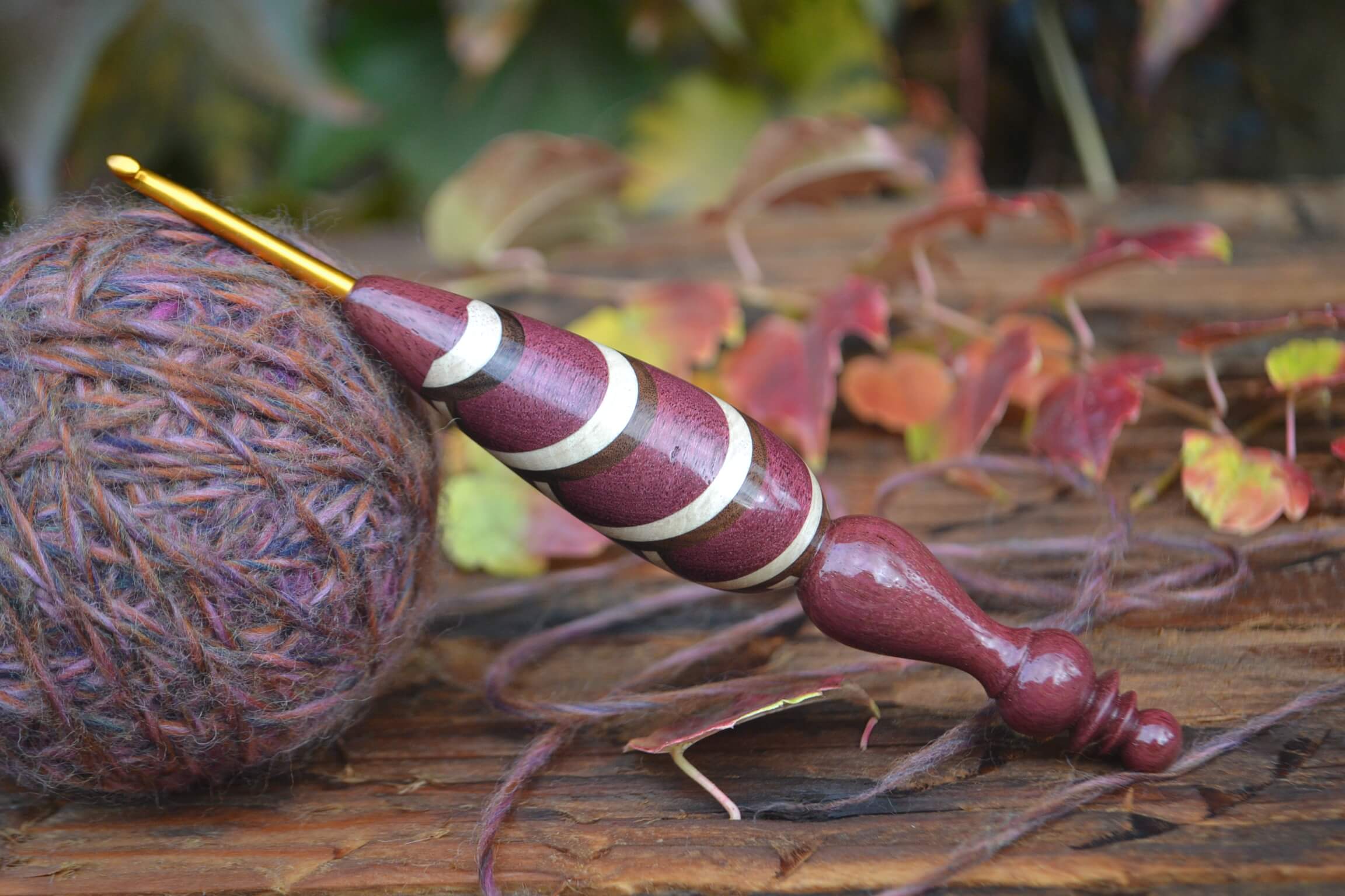 0,75 mm Clover Amour Purpleheart and Robinia/Hornbeam wood mosaic Ergonomic Crochet Hook 19 mm 15 cm #1140-4830