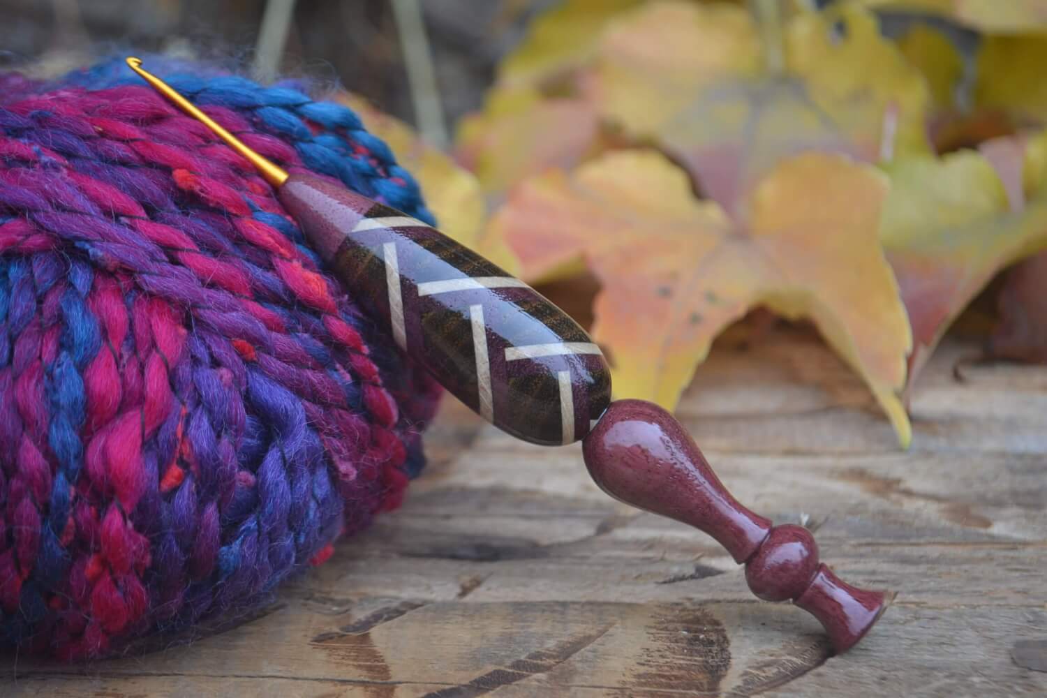 0,75 mm Clover Amour Purpleheart and Robinia/Hornbeam wood mosaic Ergonomic Crochet Hook 19 mm 15 cm #1140-4830