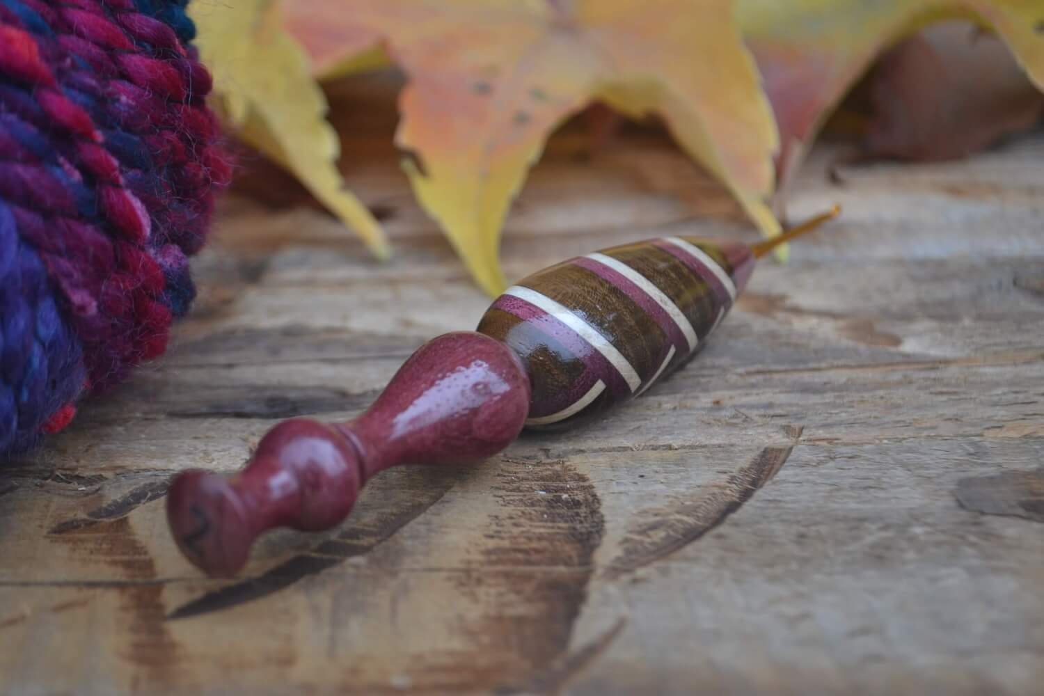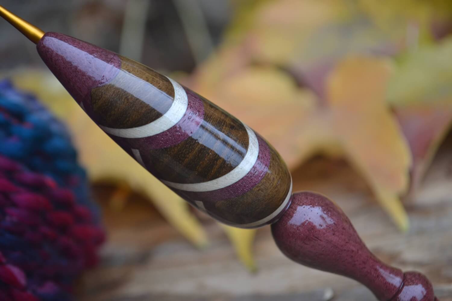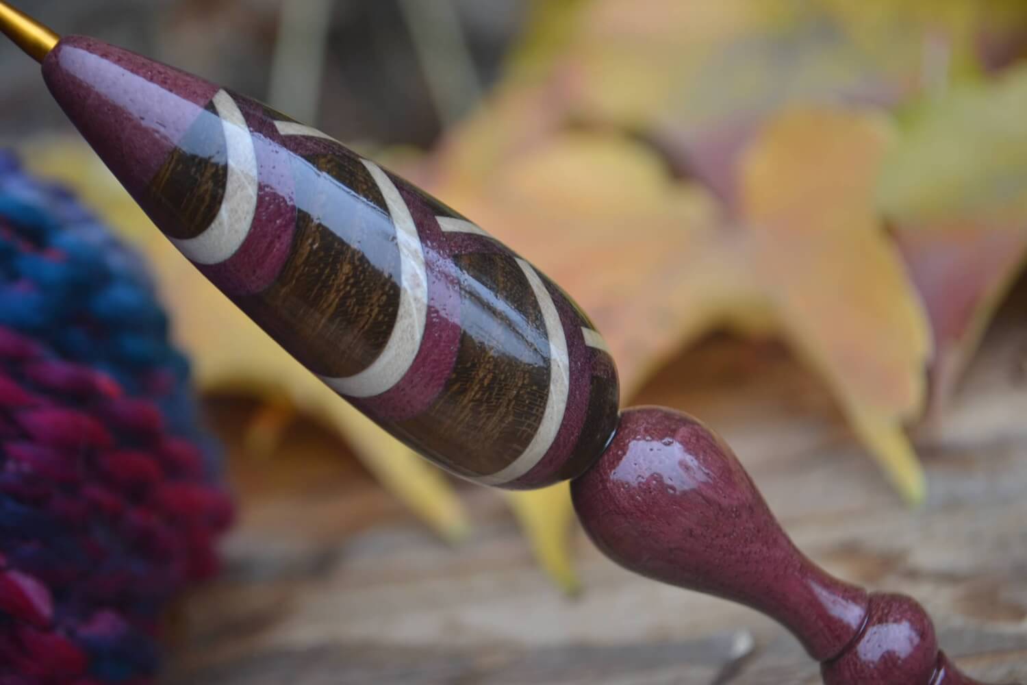 0.6 mm Clover steel, Purpleheart and Robinia/ Apple/ Hornbeam wood mosaic Ergonomic Crochet Hook 24 mm 16 cm #1128-4818