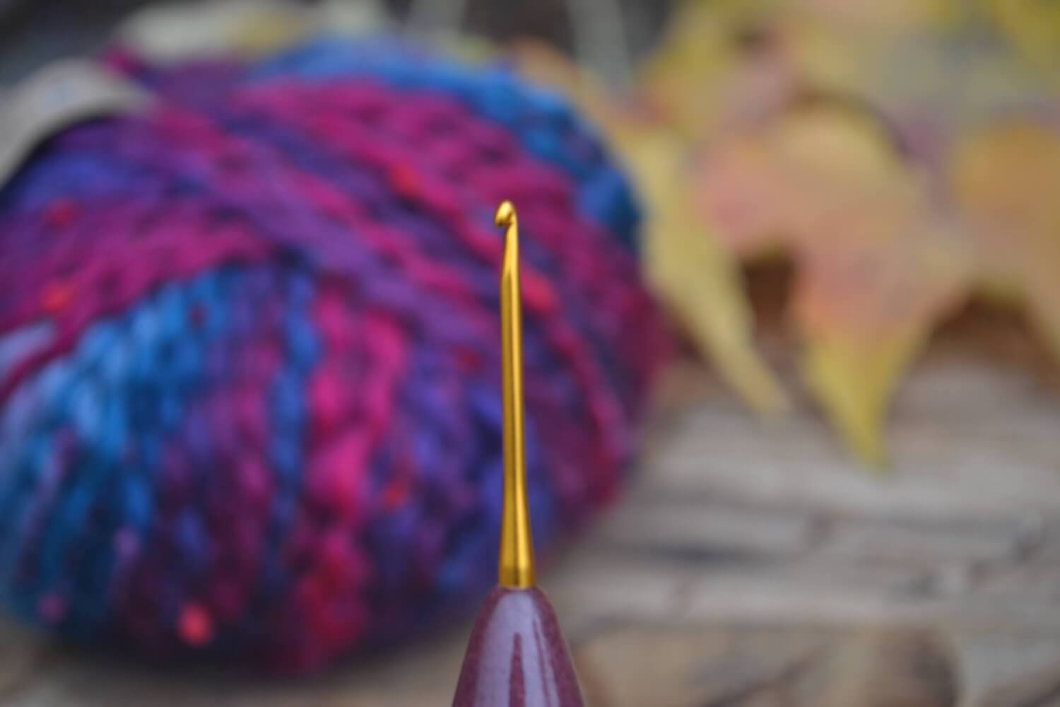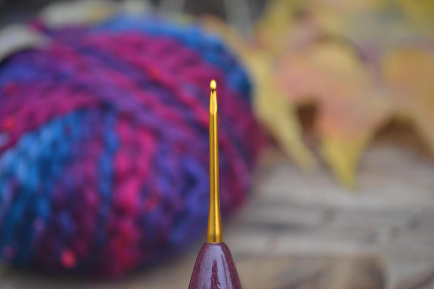 2 mm Clover Soft Touch, Purpleheart/ Robinia/ Hornbeam wood mosaic Ergonomic Crochet Hook 23 mm 17 cm #1470-5160