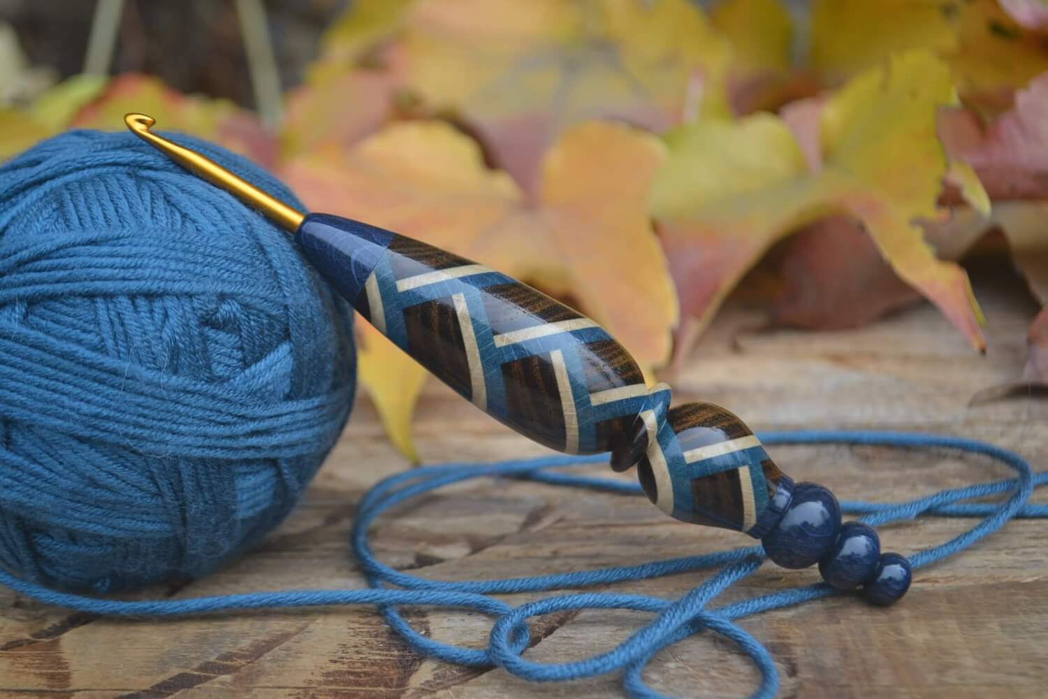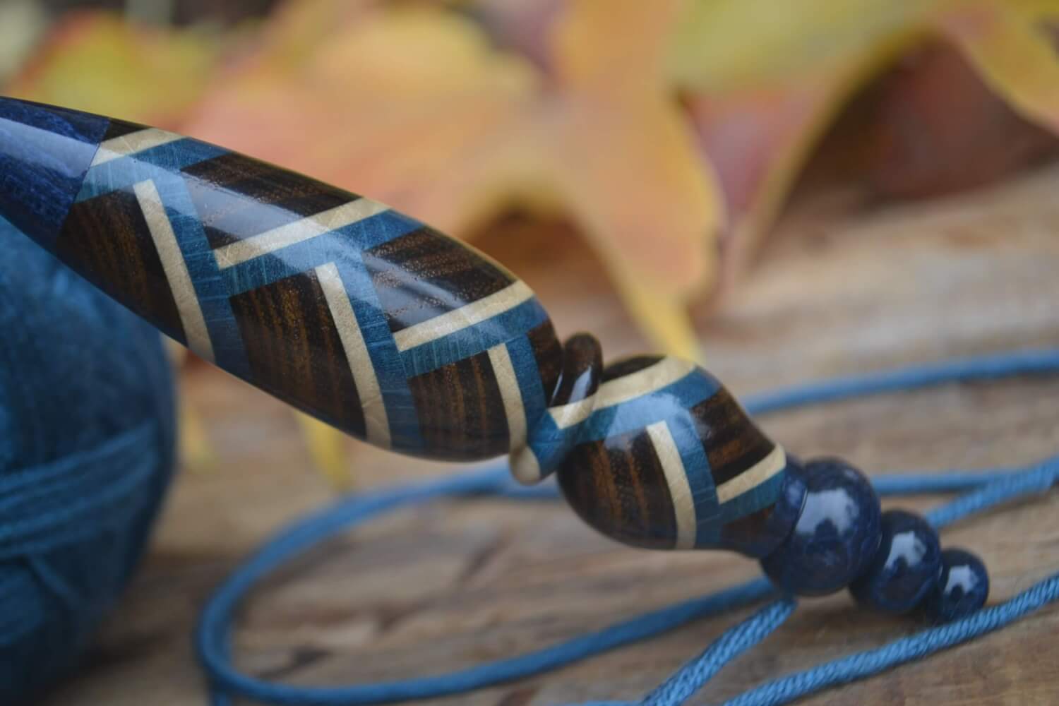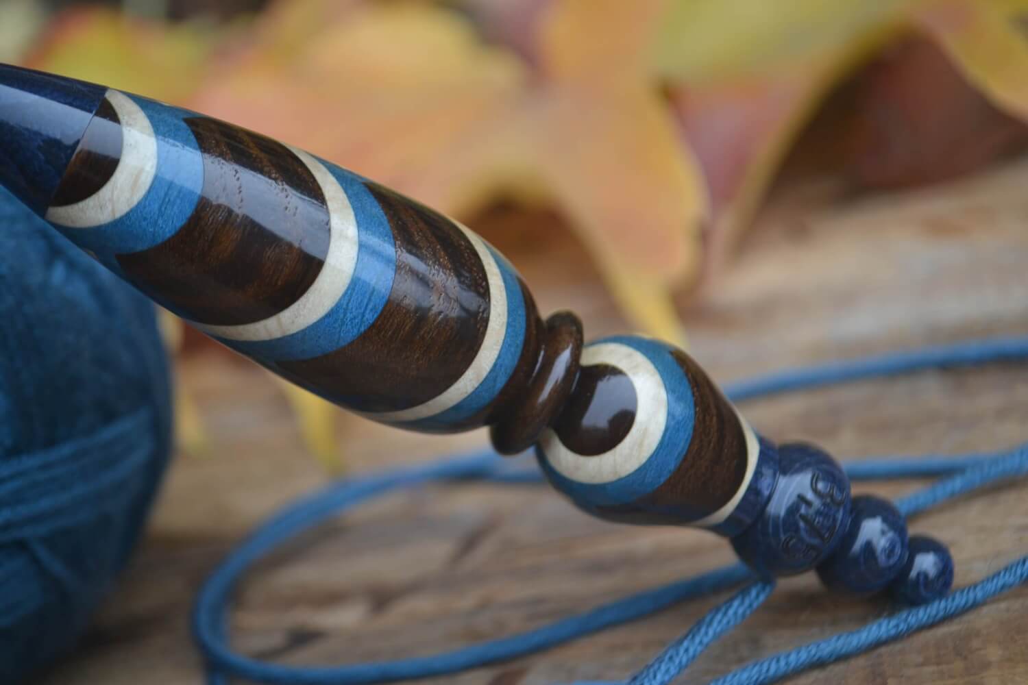 3.75 mm F Clover Soft Touch, Robinia, Blue & White Hornbeam wood mosaic Ergonomic Crochet Hook 23 mm 16 cm #1471-5161