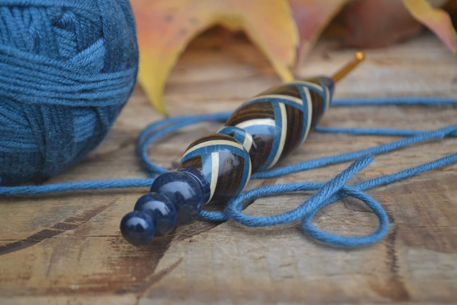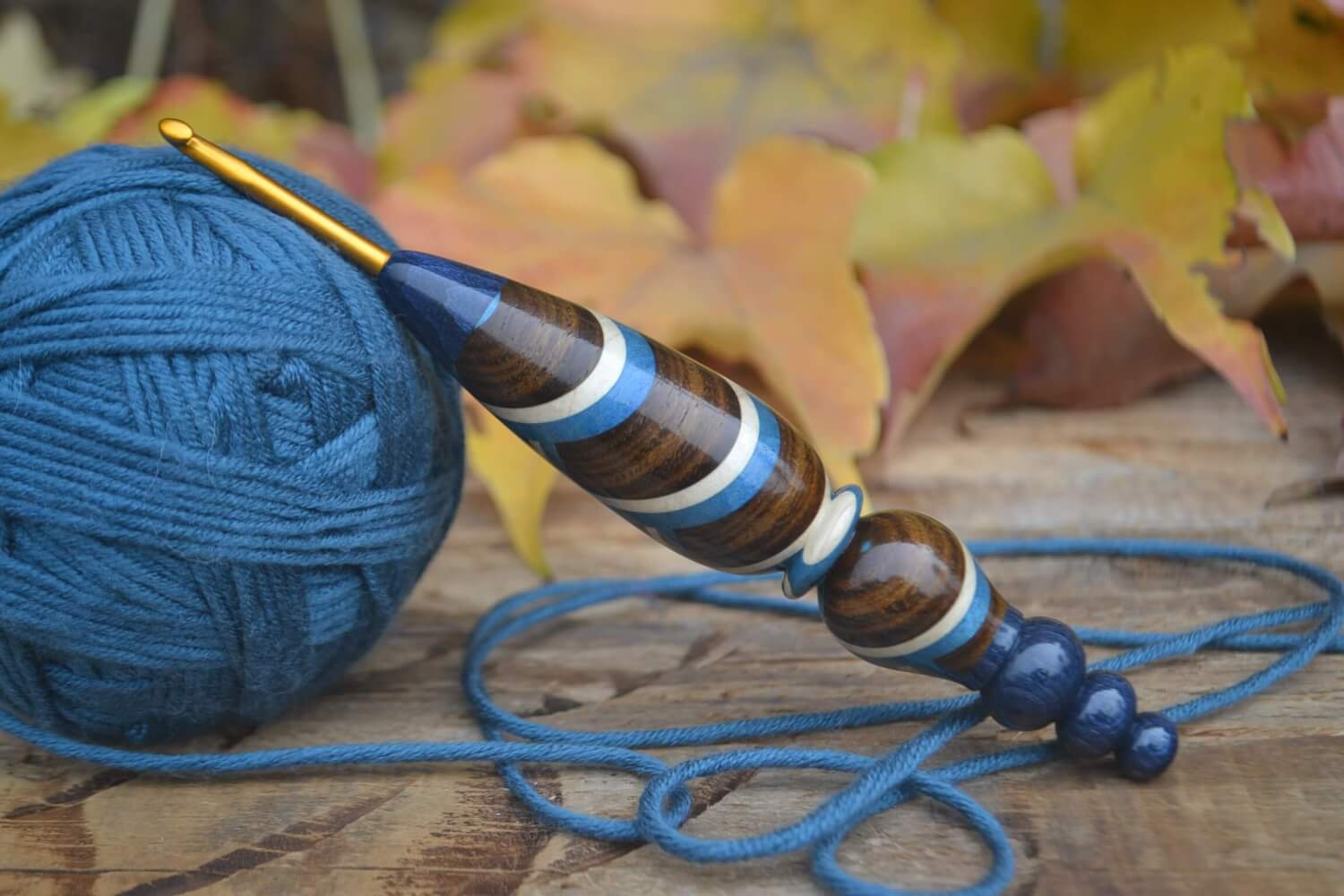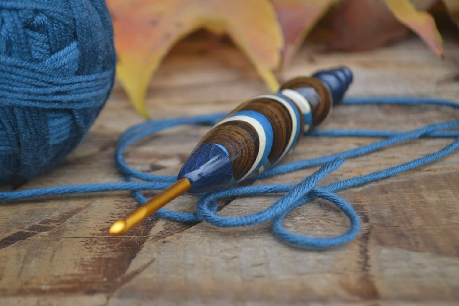 3.75 mm F Clover Soft Touch, Robinia, Blue & White Hornbeam wood mosaic Ergonomic Crochet Hook 23 mm 16 cm #1471-5161