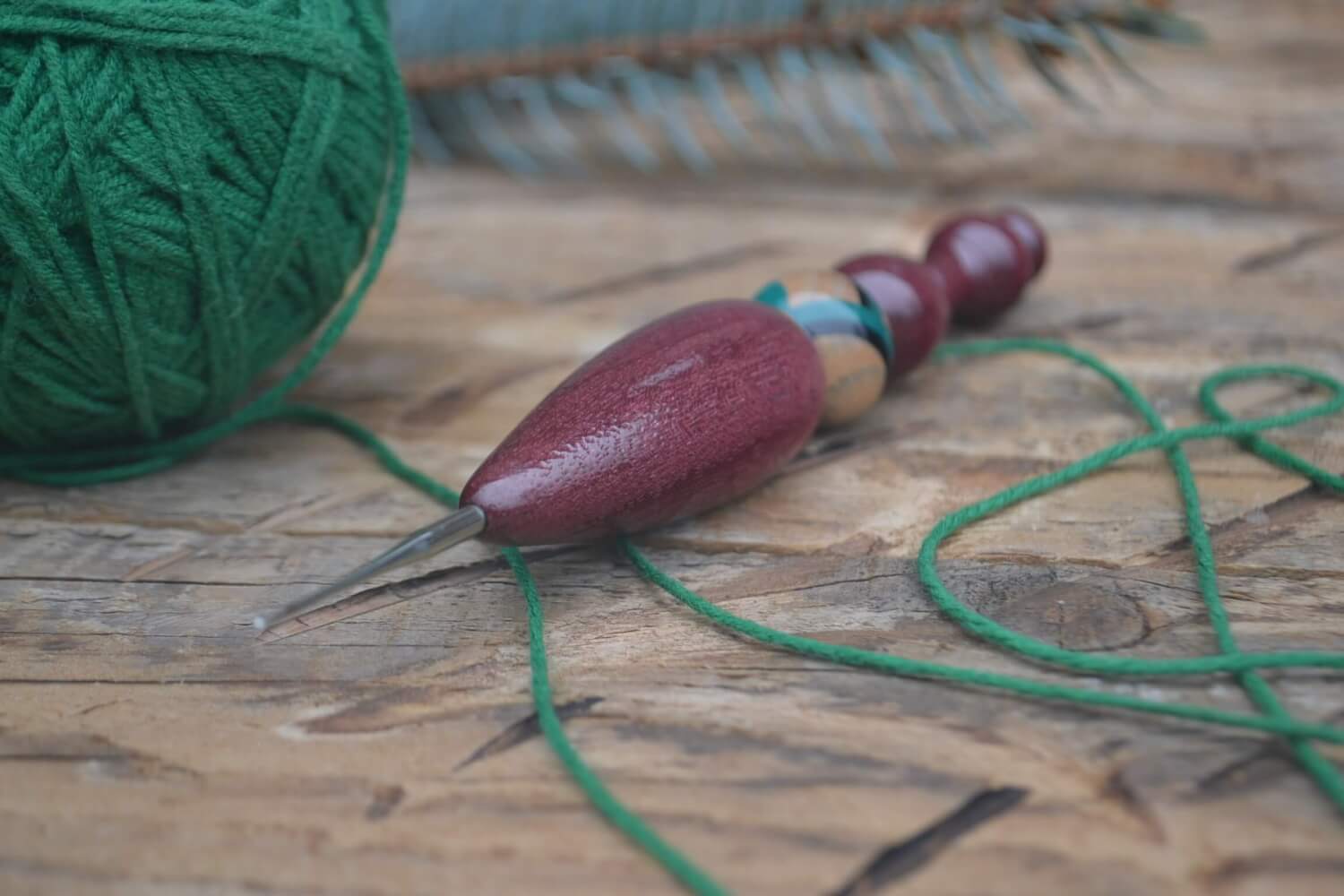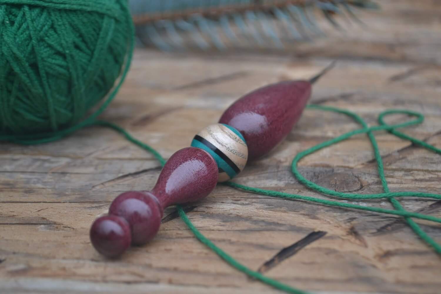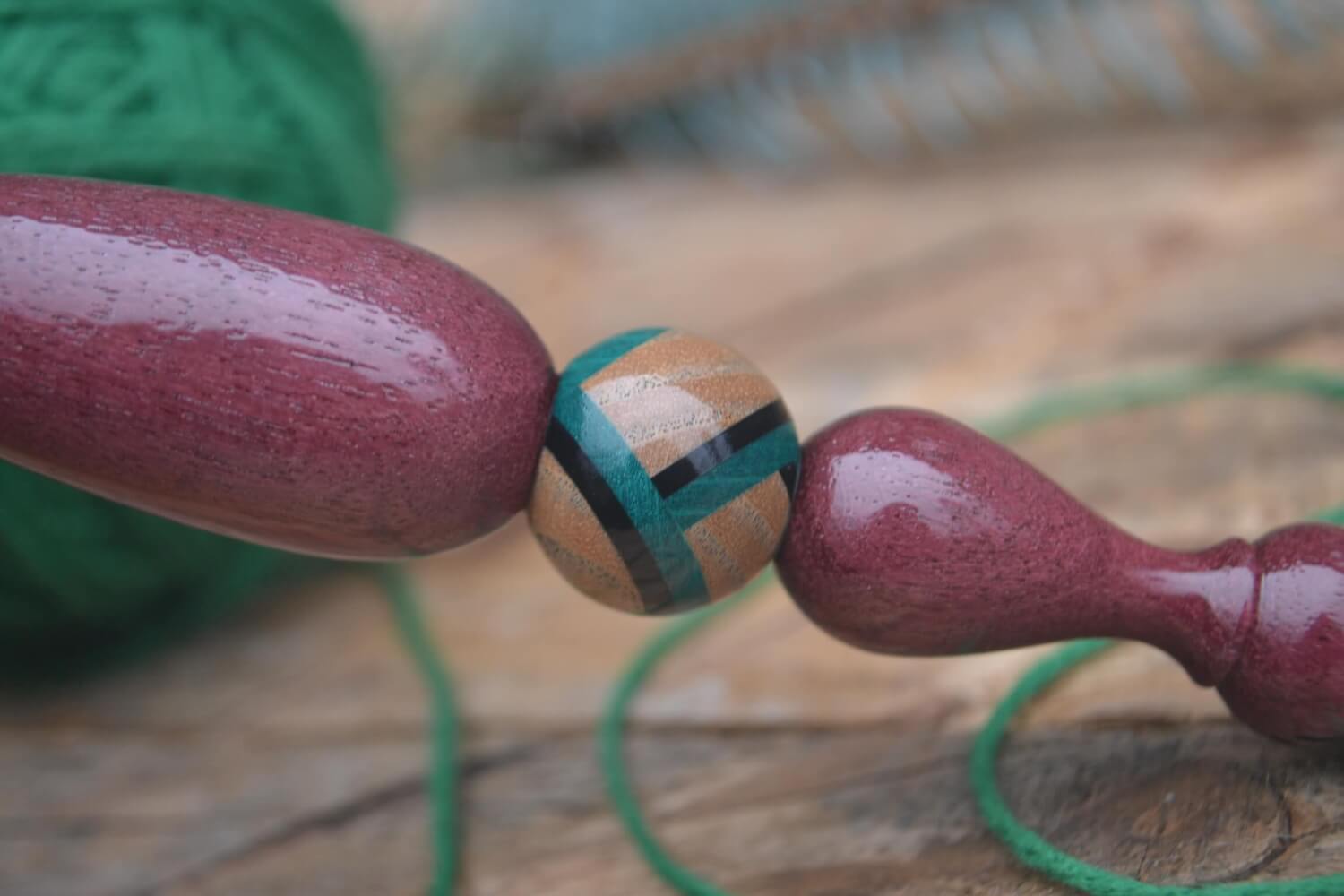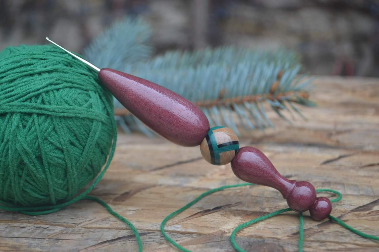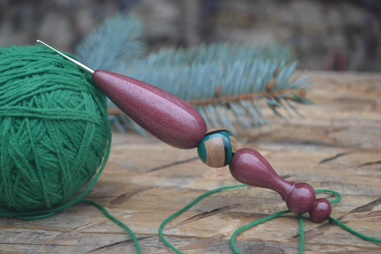 1 mm Clover Steel, Purpleheart, Black and Green Hornbeam, Ash wood mosaic Ergonomic Crochet Hook 23 mm 16.5 cm #1478-5168