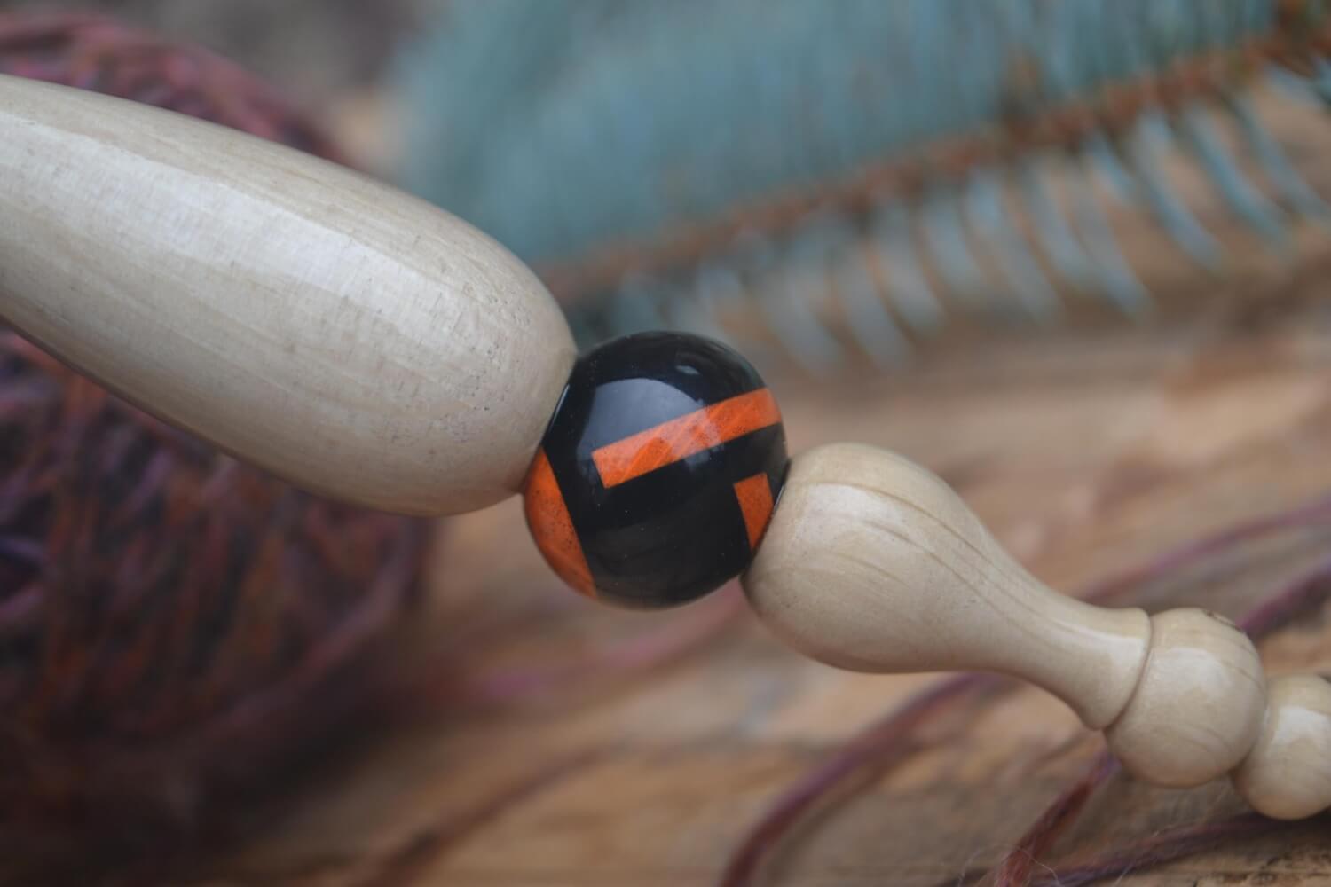 1.25 mm Clover Steel, White, Black and Orange Hornbeam wood mosaic Ergonomic Crochet Hook 23 mm 16.5 cm #1481-5171