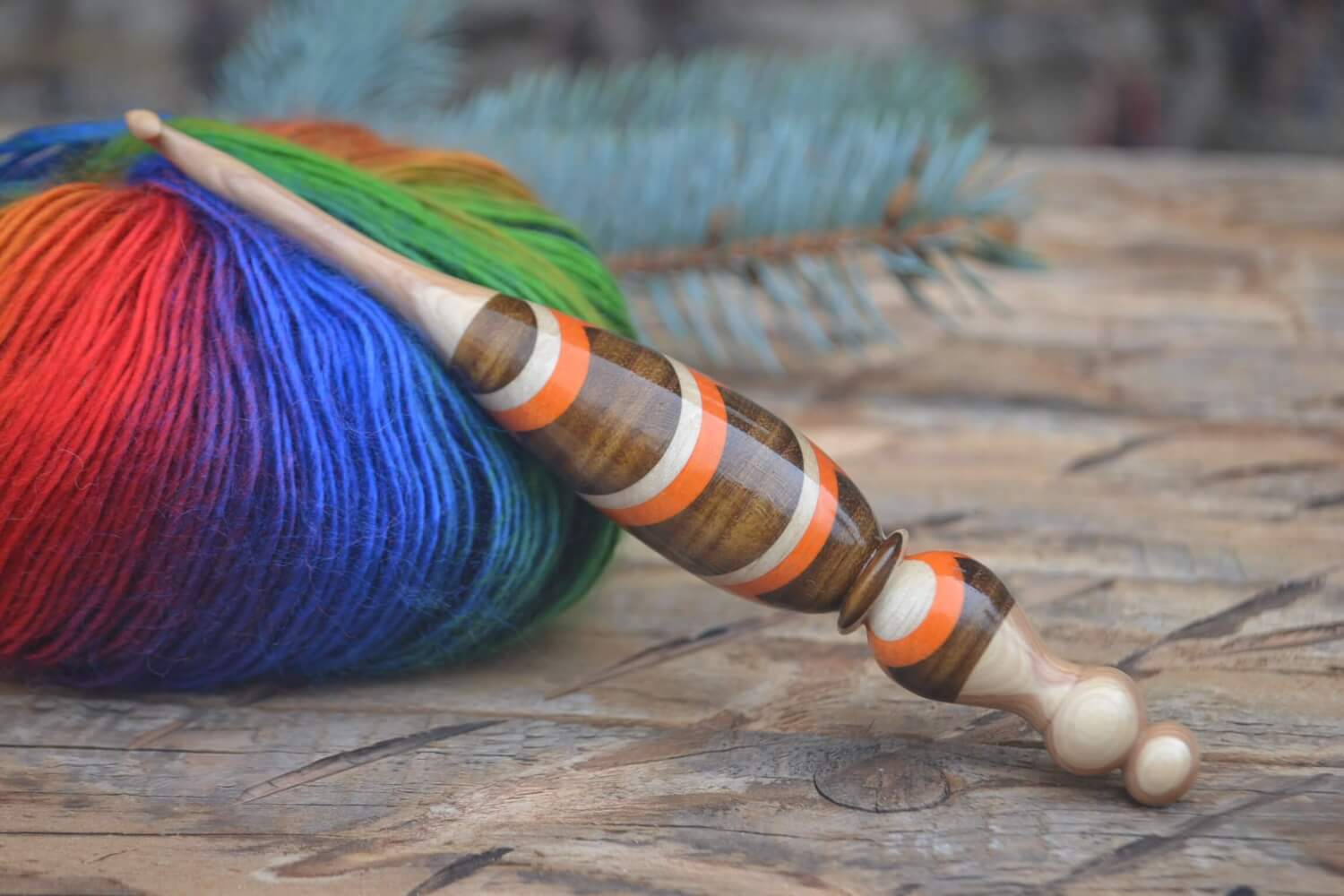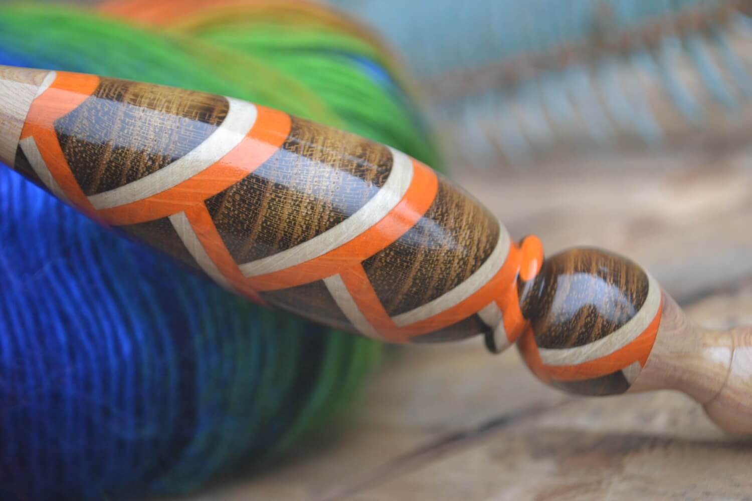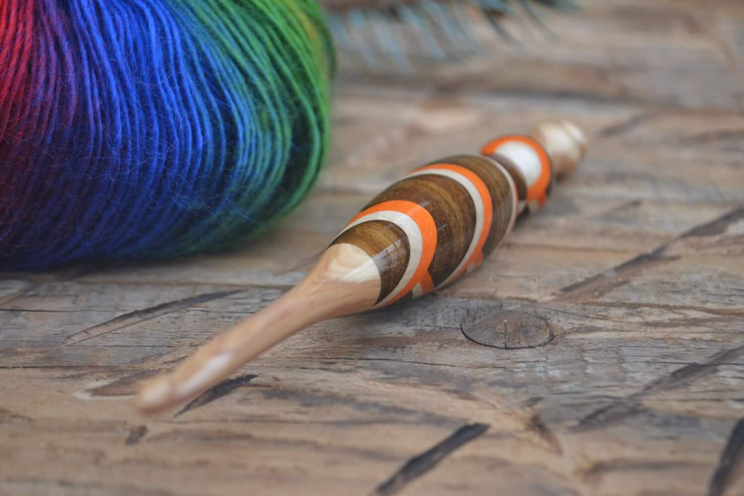 6 mm J Lilac, Robinia/ Orange & White Hornbeam wood mosaic Ergonomic Crochet Hook 23 mm 17 cm #1486-5176