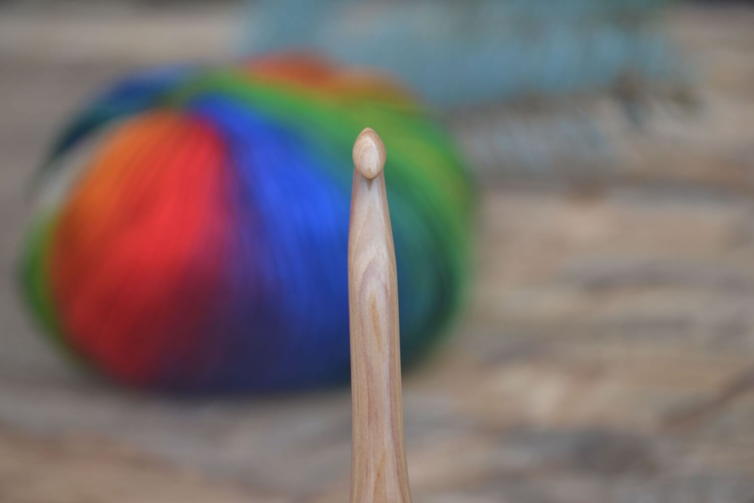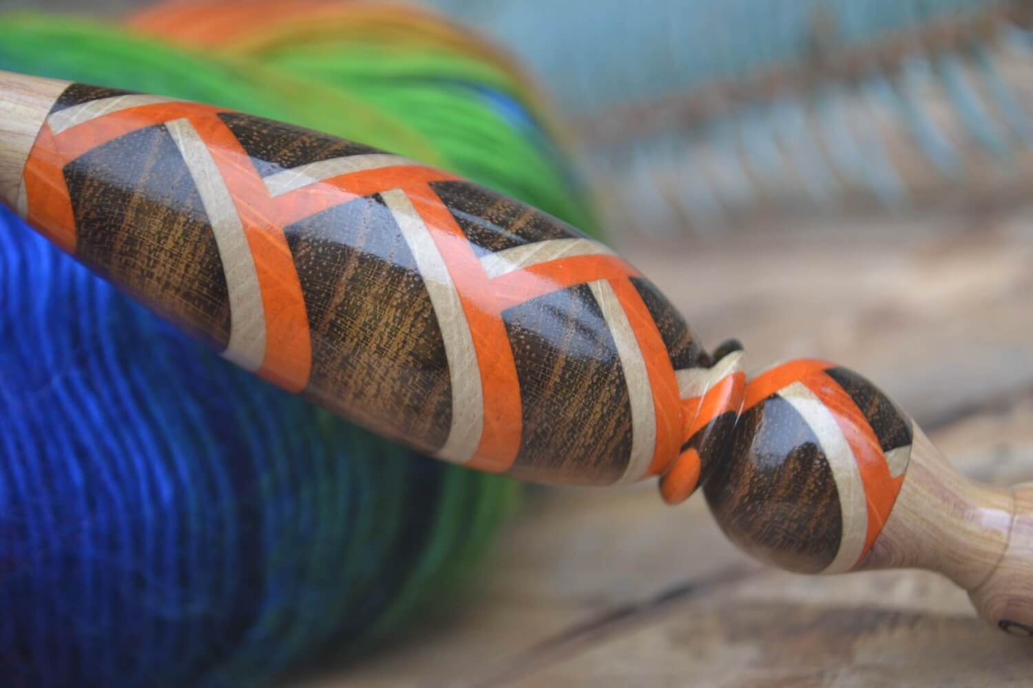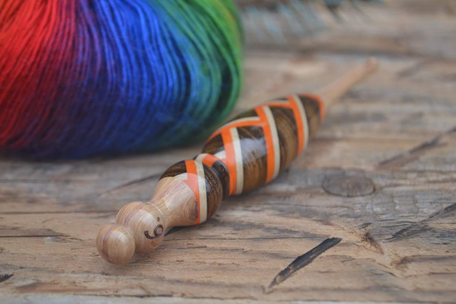 6 mm J Lilac, Robinia/ Orange & White Hornbeam wood mosaic Ergonomic Crochet Hook 23 mm 17 cm #1486-5176